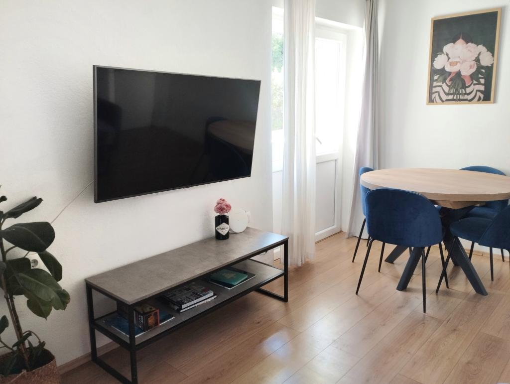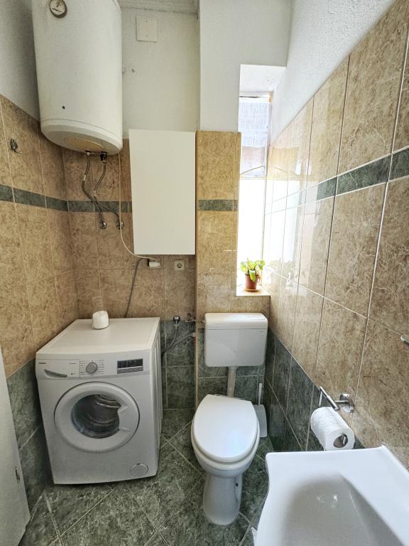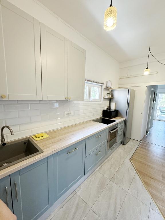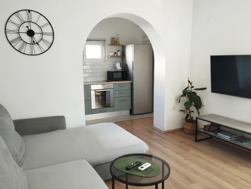 Apartment for 4 people - the cleanliness of the apartment is poor (when we arrived the floor was not properly swept and mopped, we had to sweep it ourselves upon arrival), the drains in the bathroom are clogged (water drains very poorly in the shower and sink or it just stands there), The dust hasn't been wiped off the kitchen table and TV stand, there are cobwebs on the lights and one of the three bulbs is missing, but since there is no window, it's not enough. light - there is no hot water in the kitchen - the smell in the bedroom is bad - when you lie down on the bed it smells old and musty - the bed in the bedroom is very uncomfortable and too soft, as it only has a double mattress topper instead of a yoga mat - there is an old window in the bedroom, through which it blows a little and you can hear all the noise from the street - there is a "rack" for laundry outside, but there are not enough hooks - we had to buy them ourselves so we could hang towels - absolutely not enough cooking utensils - you can't even bake pancakes for a child Positive things: - the parking space is in front of the apartment and is covered - spacious apartment - proximity to the beach, bakery - toilet paper, towels, bed linen are available - the apartment owners are very friendly *the neighboring apartment for 6 people is completely different...better equipped