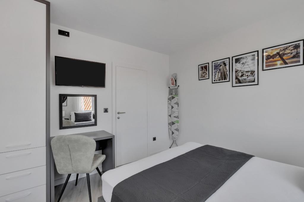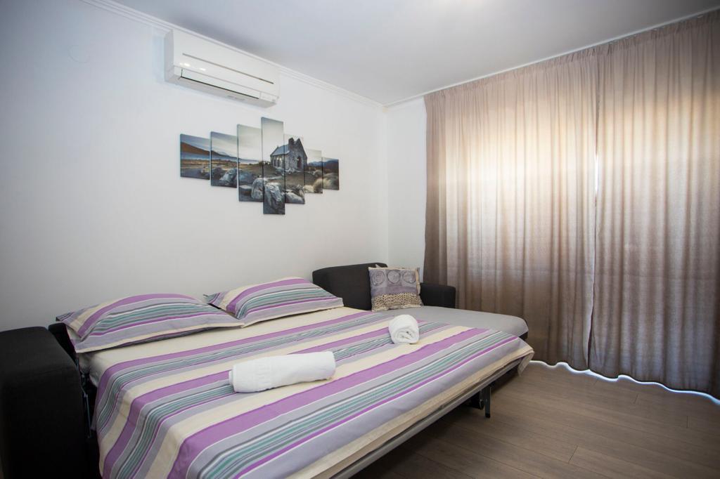 Complete, luxurious apartment of 80m2 on the 2nd floor of a detached building with parking, apartment consists of 3 bedrooms bedrooms 2 bathrooms kitchen, living room with access to balkon.Apartman is equipped with a dishwasher, washing machine, large fližderom with freezer, oven, microwave oven, coffee machine, 2 LCD TV, DVD, satellite with the 3000 program, a computer with free internet, air conditioning ,, the apartment can accomodate a maximum of 8 osoba.Apartman located in the eastern part of the town 400 m from the beach Osejava and the city center, 200 m from the Sports Centre and the supermarket Lidl, 4oo in the quiet part of .5 minute walk from downtown and 10 minutes walk to the beach