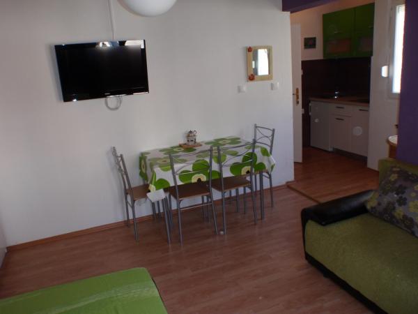 The apartments are located in the center of Makarska, near the main square and are located about 200m from the sea. Studio +2 consists of French beds, double pull-out beds, kitchen and bathroom. Apartment A4 consists of two bedrooms with double beds, dining room, bathroom and kitchen. Both apartments have satellite TV and air conditioning.