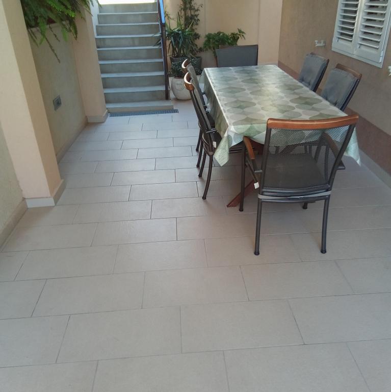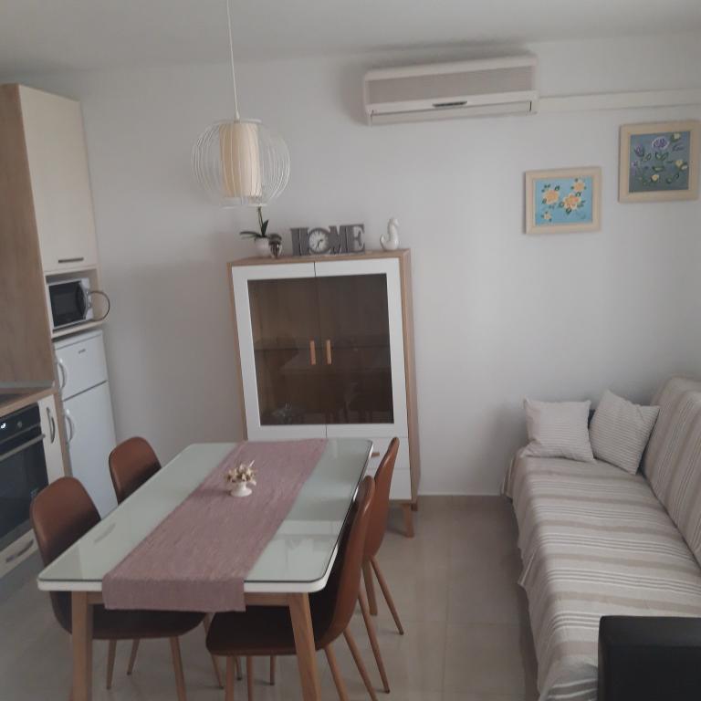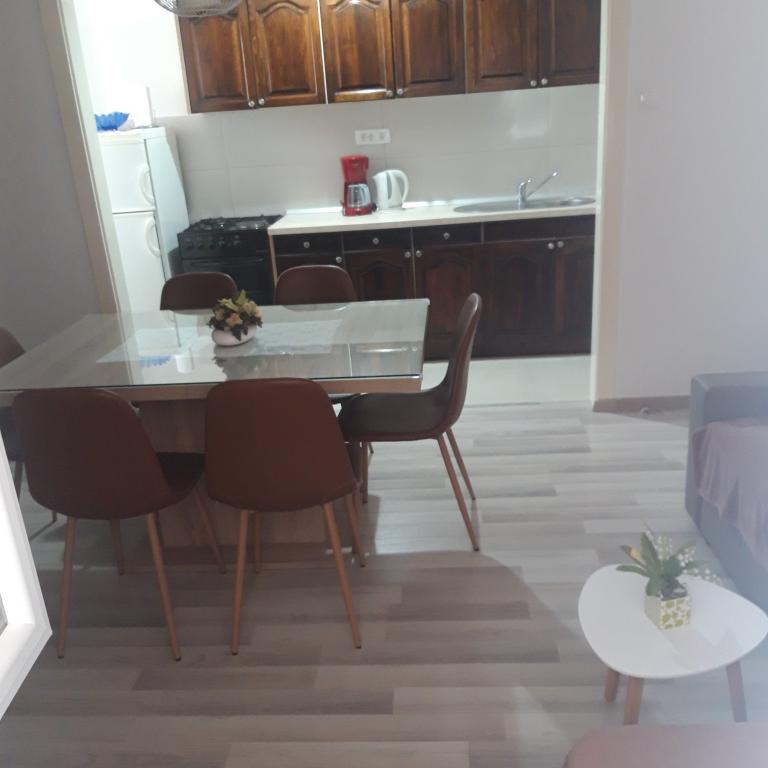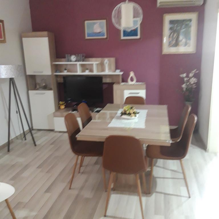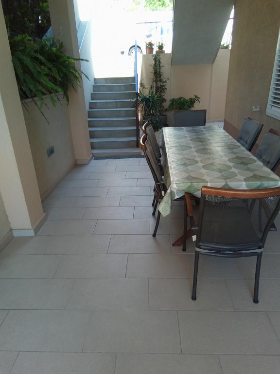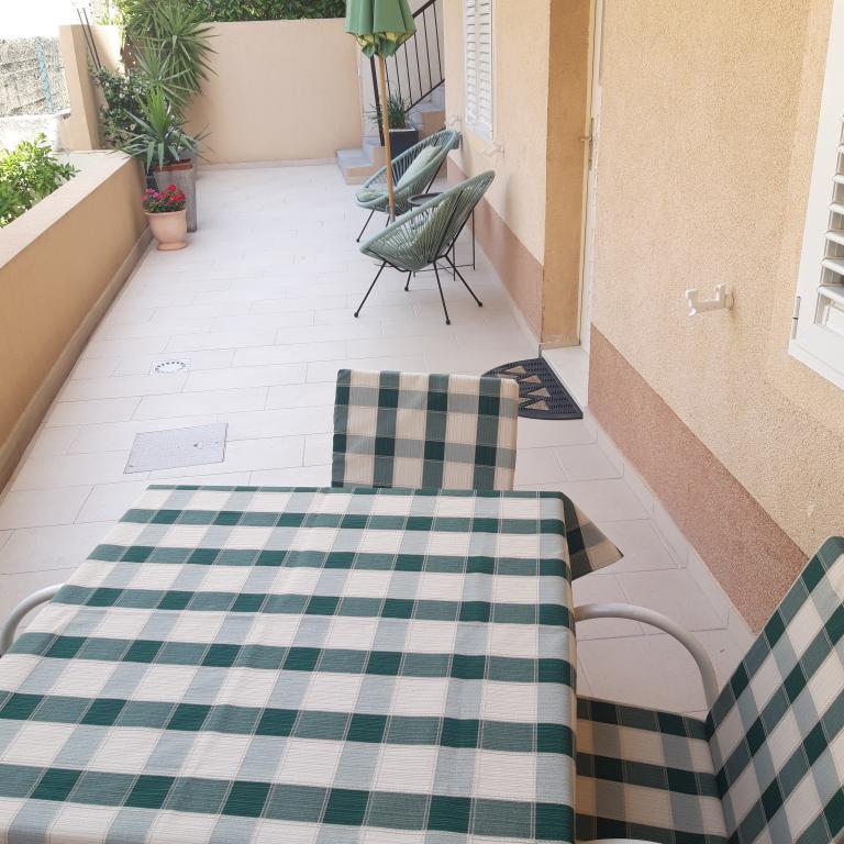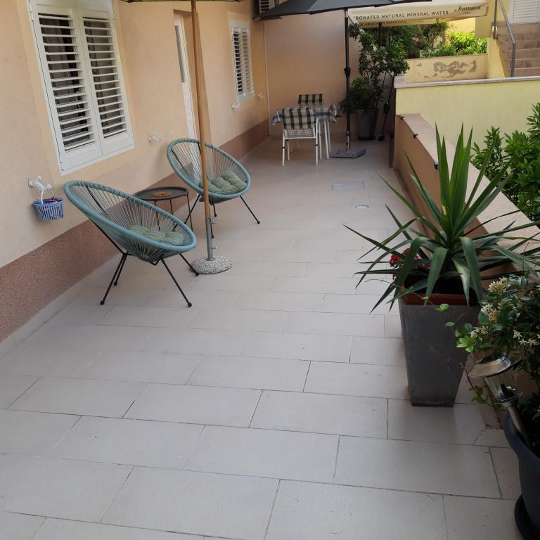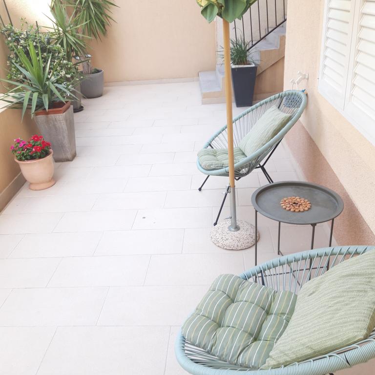 Our apartments are in a family house located only 15-20 minutes walk from the main city beach, 15 minutes walk from the city center and bus station. The nearest grocery store and the nearest restaurant are 30 meters away. Apartment A6 is a large three-room apartment with two balcony rooms (air-conditioned) and 1 north room (fan), fully equipped, large hall, two bathrooms, (washing machine, dishwasher, coffee machine, kettle), kitchen, dining room and living room (air-conditioned), terrace, access by stairs, parking. Welcome. Apartment A2 plus 1, fully equipped apartment, located on the south side of the family house, access by stairs, room (double bed plus armchair-extra bed for one person) sofa bed in the kitchen, bathroom (washing machine), hall, kitchen with dining room (dishwasher), large terrace, separate entrance, without the presence of other guests. Apartment A2+1 does not have parking. Welcome