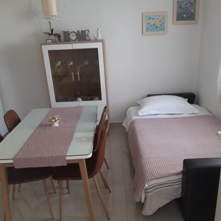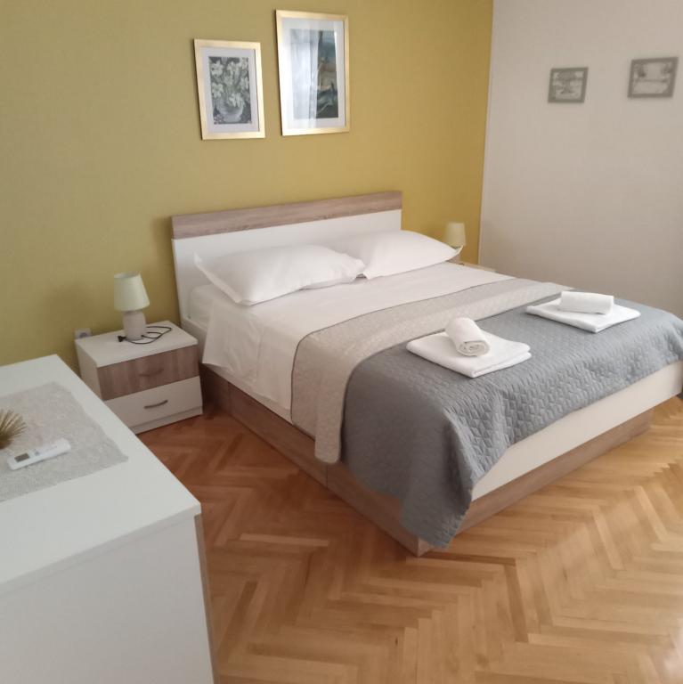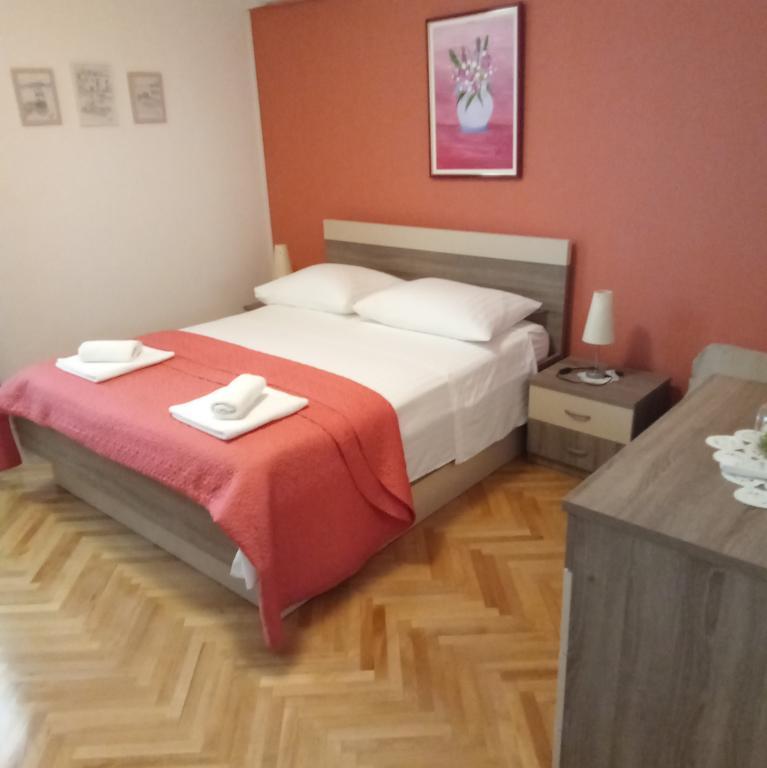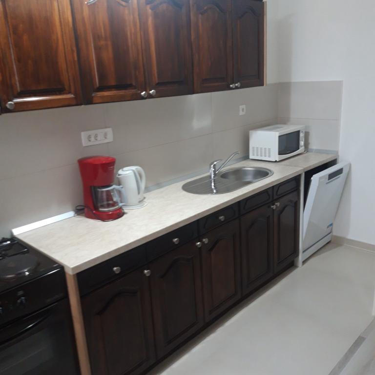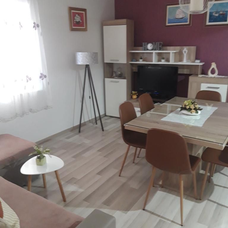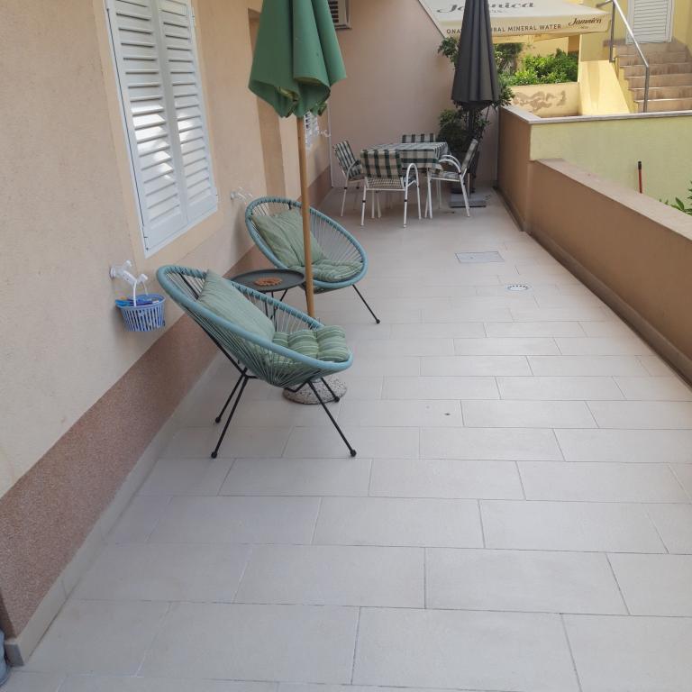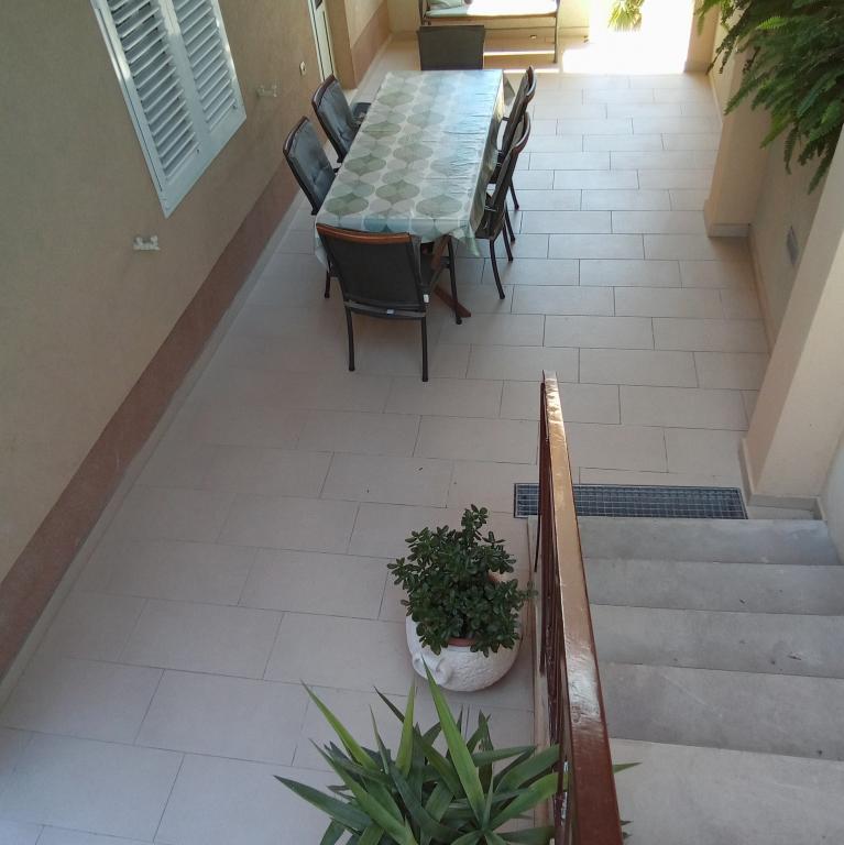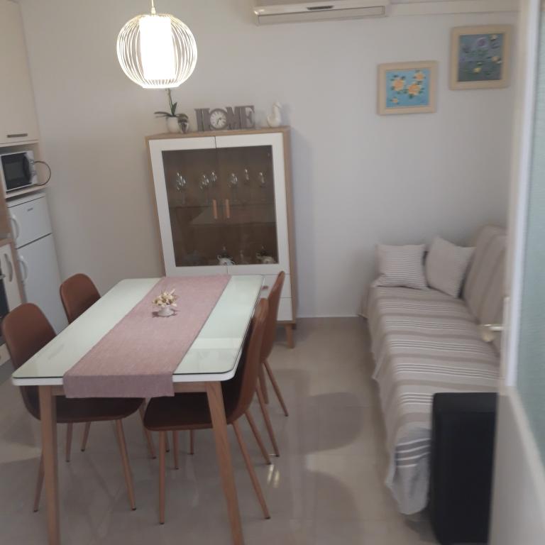 Our apartments are in a family house located only 15-20 minutes walk from the main city beach, 15 minutes walk from the city center and bus station. The nearest grocery store and the nearest restaurant are 30 meters away. Apartment A6 is a large three-room apartment with two balcony rooms (air-conditioned) and 1 north room (fan), fully equipped, large hall, two bathrooms, (washing machine, dishwasher, coffee machine, kettle), kitchen, dining room and living room (air-conditioned), terrace, access by stairs, parking. Welcome. Apartment A2 plus 1, fully equipped apartment, located on the south side of the family house, access by stairs, room (double bed plus armchair-extra bed for one person) sofa bed in the kitchen, bathroom (washing machine), hall, kitchen with dining room (dishwasher), large terrace, separate entrance, without the presence of other guests. Apartment A2+1 does not have parking. Welcome