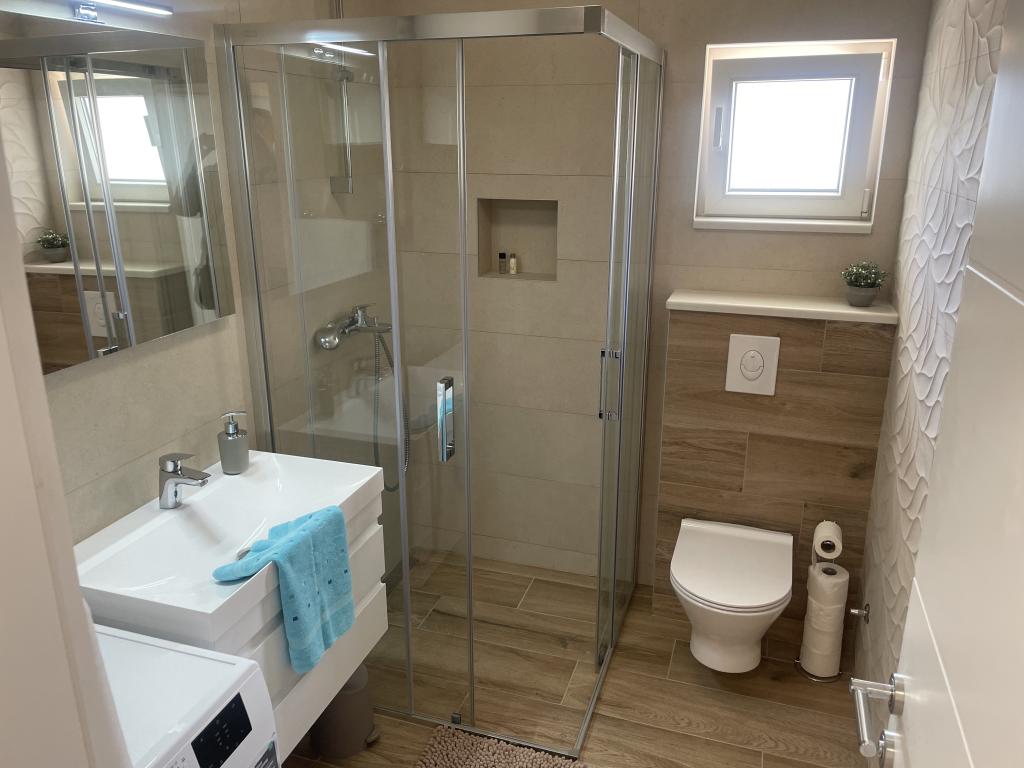 Just a minute walk to the beach! The first apartment is the "4+2 apartment" (ID: 58865), for 4 people with the possibility of an extra bed for two more. Total area 85 m2 with two bedrooms, a large living room with kitchen, two bathrooms and an additional toilet. The apartment has its own balcony with a sea view. The second is on the same floor Studio "Up!" (ID: 58866) for two people with a private terrace for two. The third "3+2 apartment" (ID: 63762) of 65 m2 offers accommodation on the ground floor for up to 5 people, and the fourth Studio "Olive Tree" (ID: 65589) for two people also on the ground floor of the house.