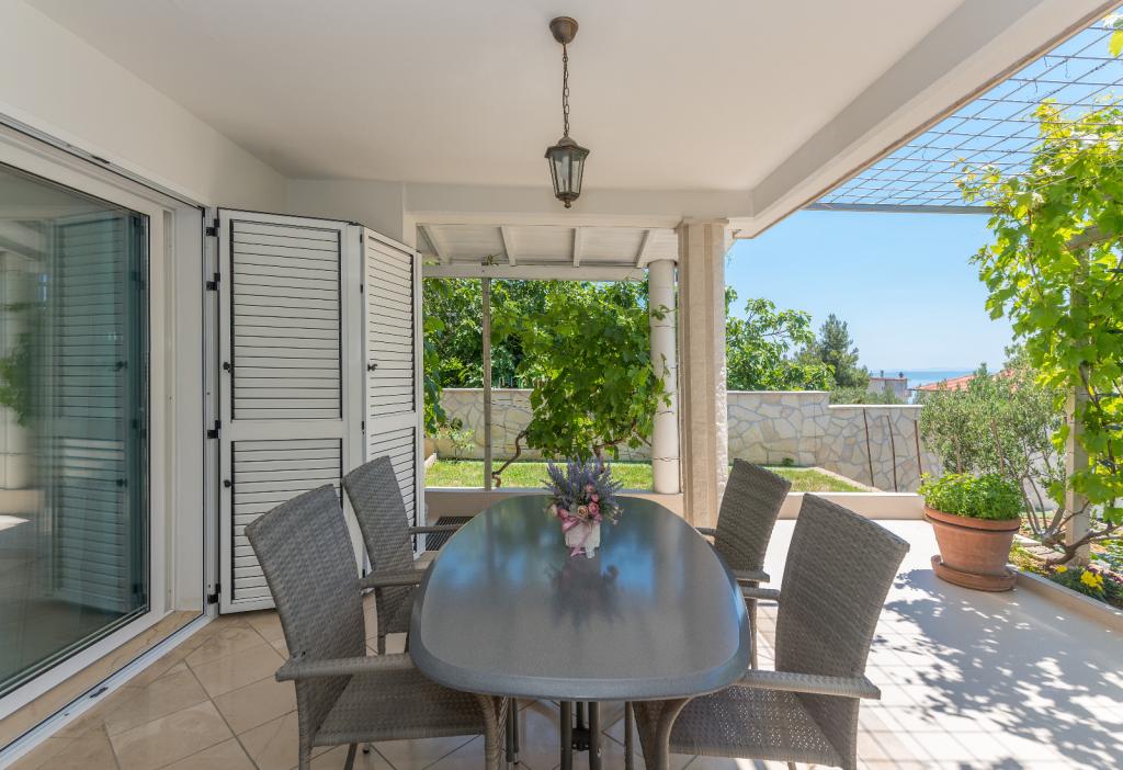 Villa Branka is a charming house with five separate accommodation units, ideal for a relaxing holiday in nature. Surrounded by greenery and situated in a unique location with a view of the Adriatic Sea on one side and the magnificent Biokovo mountain on the other. It is located in an exceptionally quiet part of the Makarska Riviera, on a gentle hill, away from the tourist crowds and noise - perfect for complete relaxation and privacy. At the same time, the villa is only a 2-minute drive from the beach and a 5-minute drive from the center of Makarska, a picturesque tourist town with a rich offer of facilities, restaurants and beautiful beaches. The perfect combination of peace, nature and proximity to all important amenities.