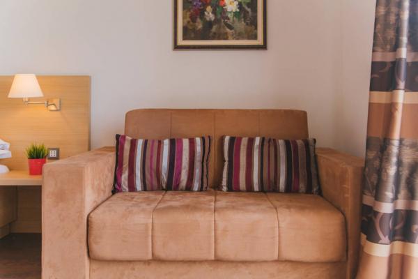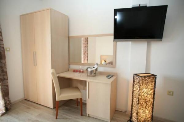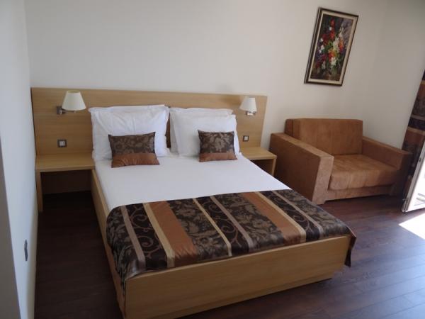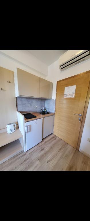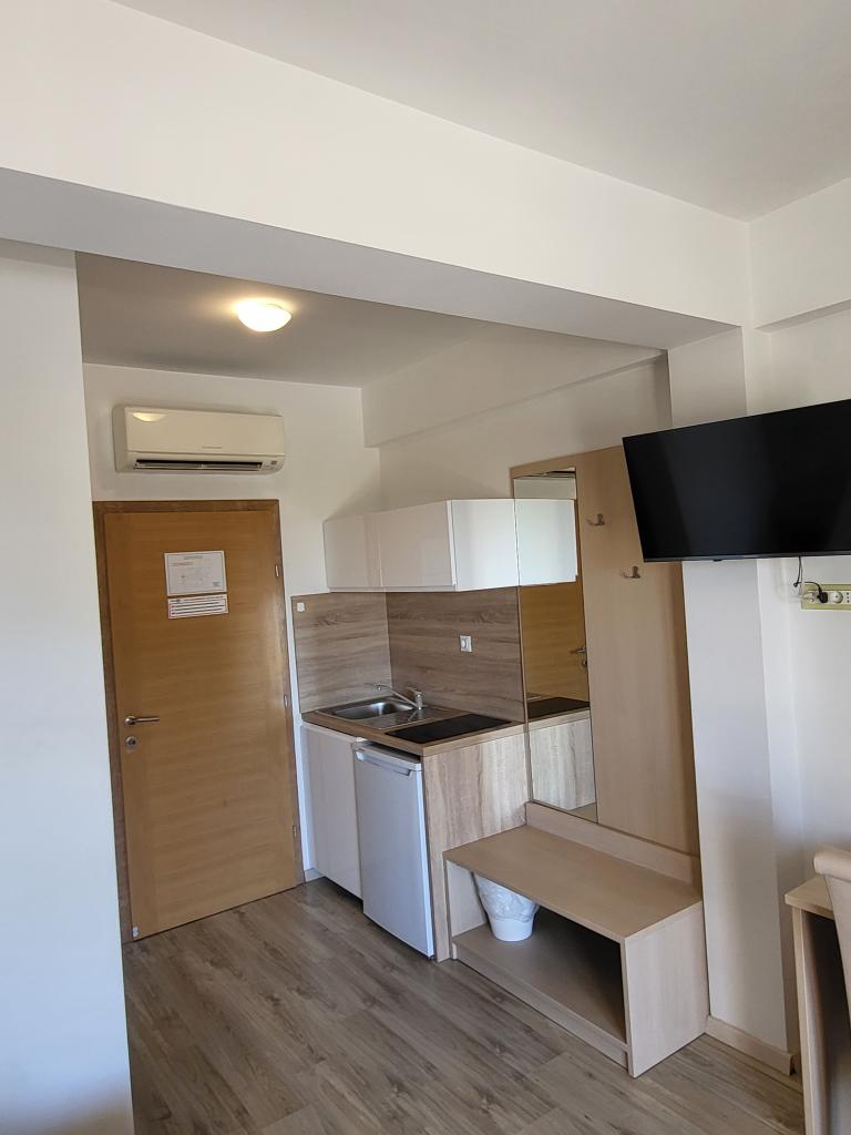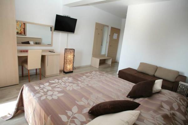 The impression after stay: great. Zero problems. The studio completely enough for my family 2 + 2 (2 years old and 6 years old). Much of the time spent on the beach because the size of the room did not matter to us. To the sea actually 200 meters downhill, small pebbles, sea urchins almost invisible. Out of habit in handy to a microwave oven or kettle. Decent price. Recommended