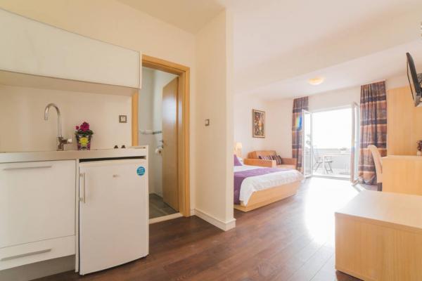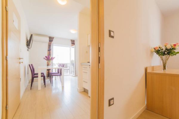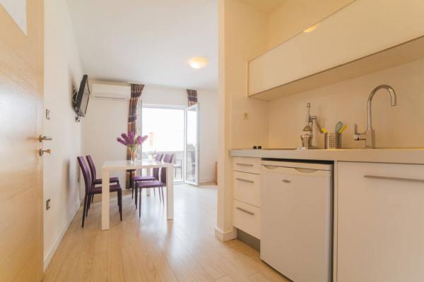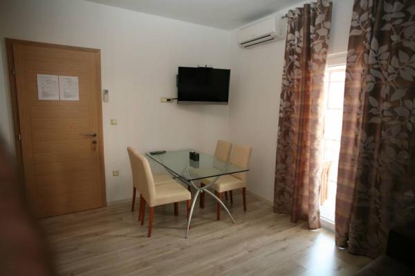 We were here in June 2023. 2 adults and 1 child (1.5 years). We stayed in a studio with an extra bed. The owner Ivana is great and very nice, she immediately brought us a cot upon request. The apartments are clean and new, everything you need is available. You can't even hear the noise from the adjoining rooms. We slept very well. 2 minutes from the apartments are 2 bakeries open non-stop, groceries about 10 minutes on foot. It is about 300 meters down the hill to the beach. We would easily come back again. We were very satisfied.
