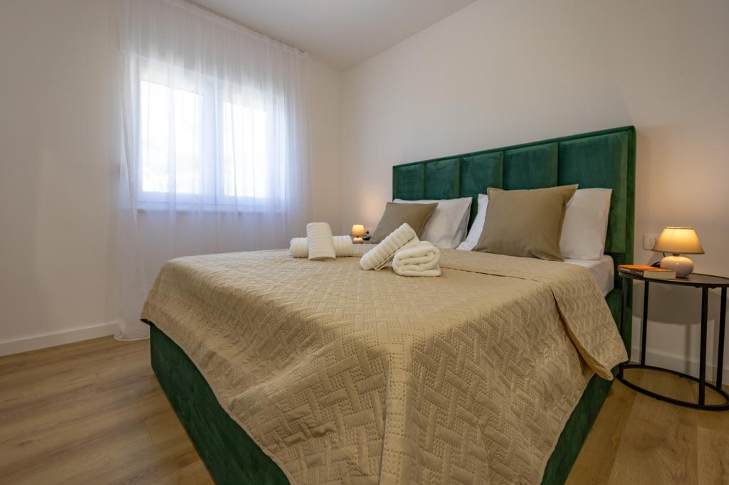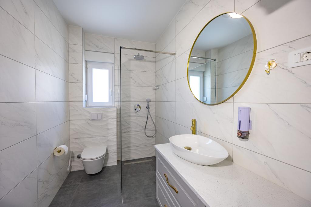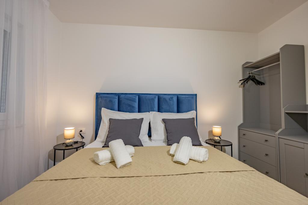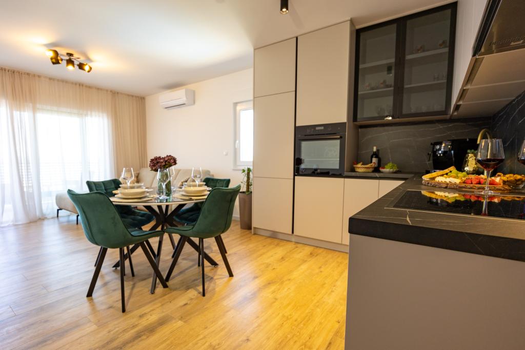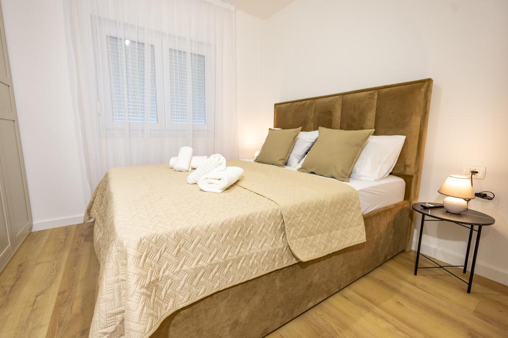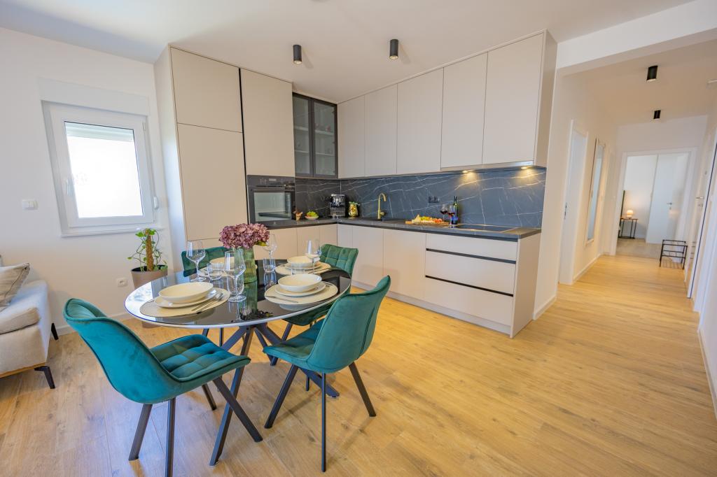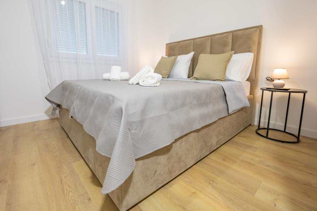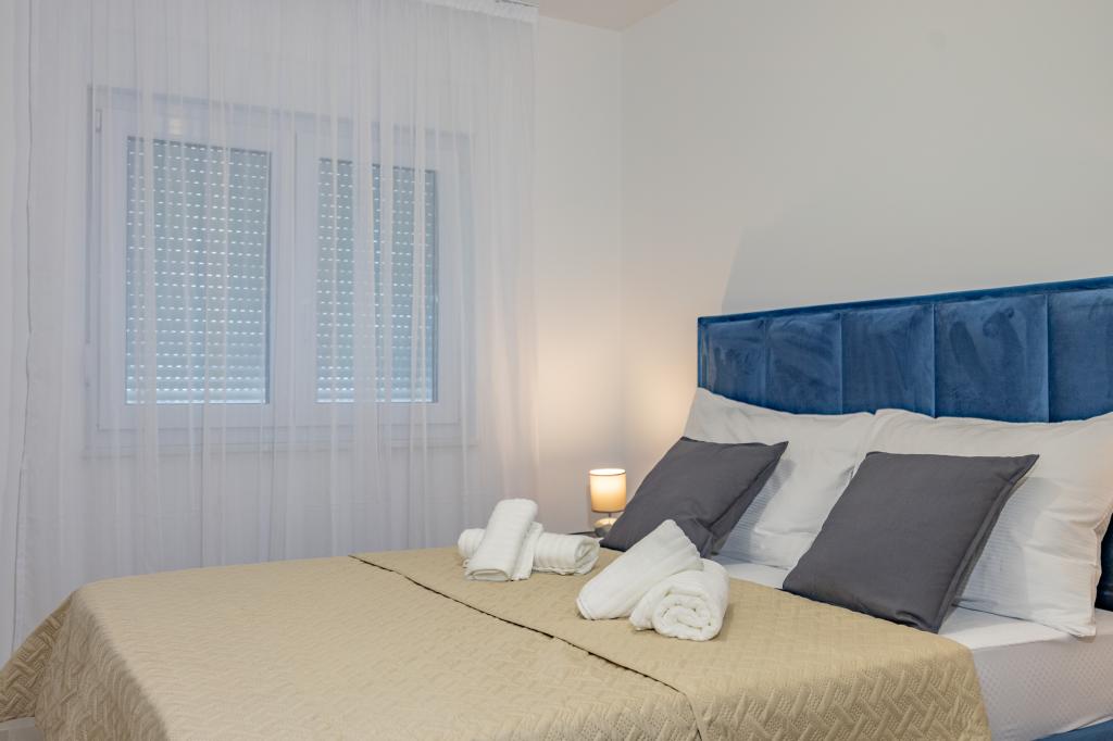 Each apartment exudes modern design and newly renovated interior. In the spacious living room, decorated with tasteful furniture and contemporary details, you will feel right at home. The open concept naturally connects the living room with a fully equipped kitchen, where elegant countertops, quality appliances and all the space you need to prepare your favorite meals await you. The living area opens onto a pleasant balcony - an ideal place for morning coffee or evening relaxation with a glass of wine and an unforgettable sunset over the Adriatic. Each apartment has two comfortable bedrooms with double beds, equipped with soft bedding and plenty of storage space, one modern bathroom and an additional toilet. The apartments are air-conditioned and fully equipped: TV/SAT, internet, washing machine, dishwasher, coffee maker and everything you need for a pleasant and carefree stay.