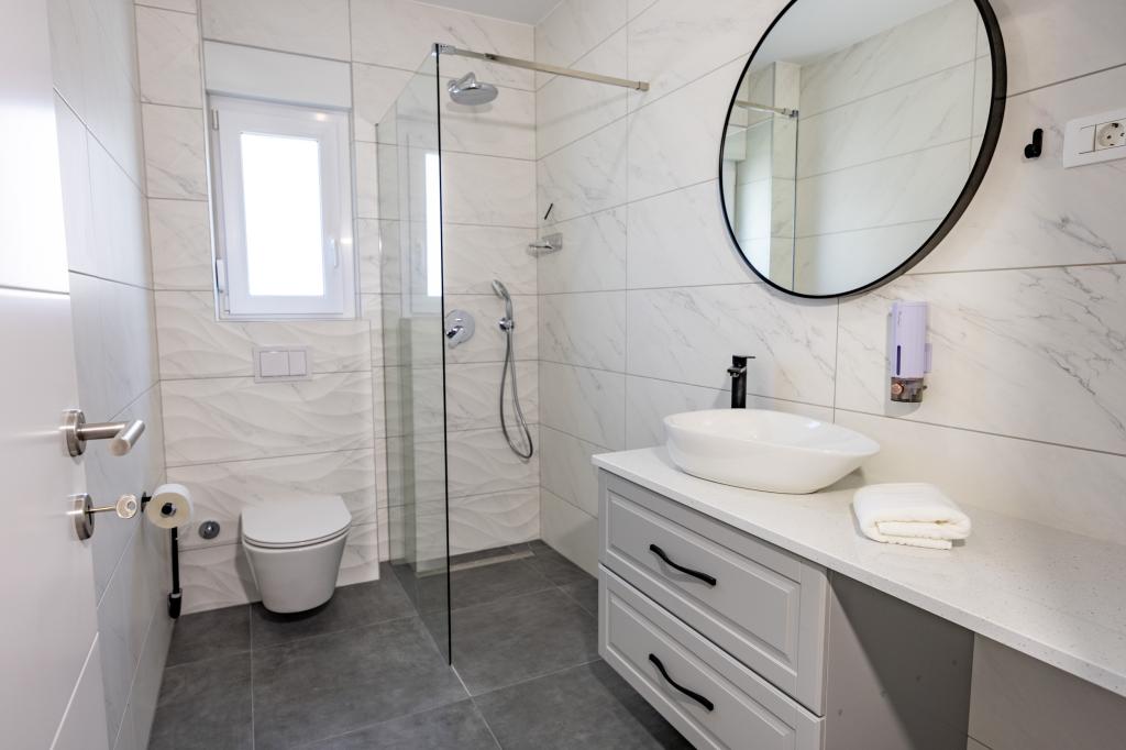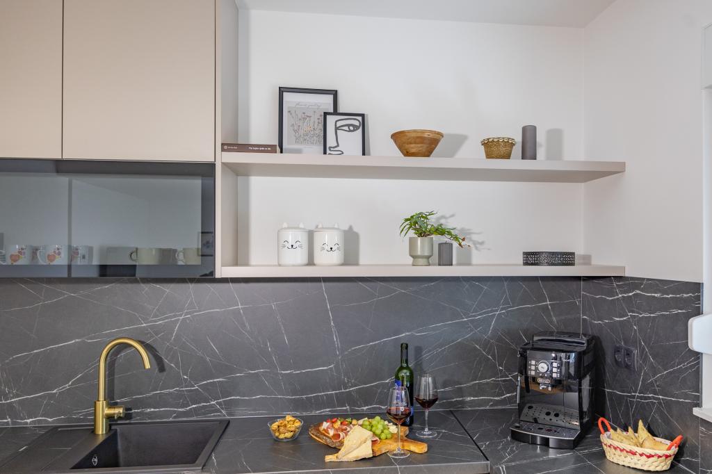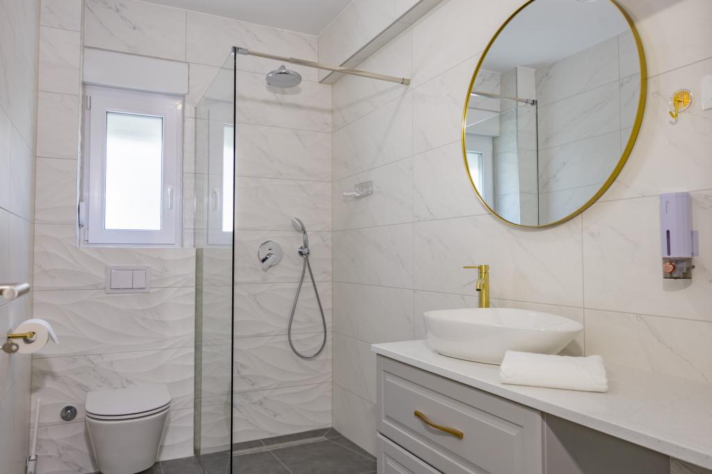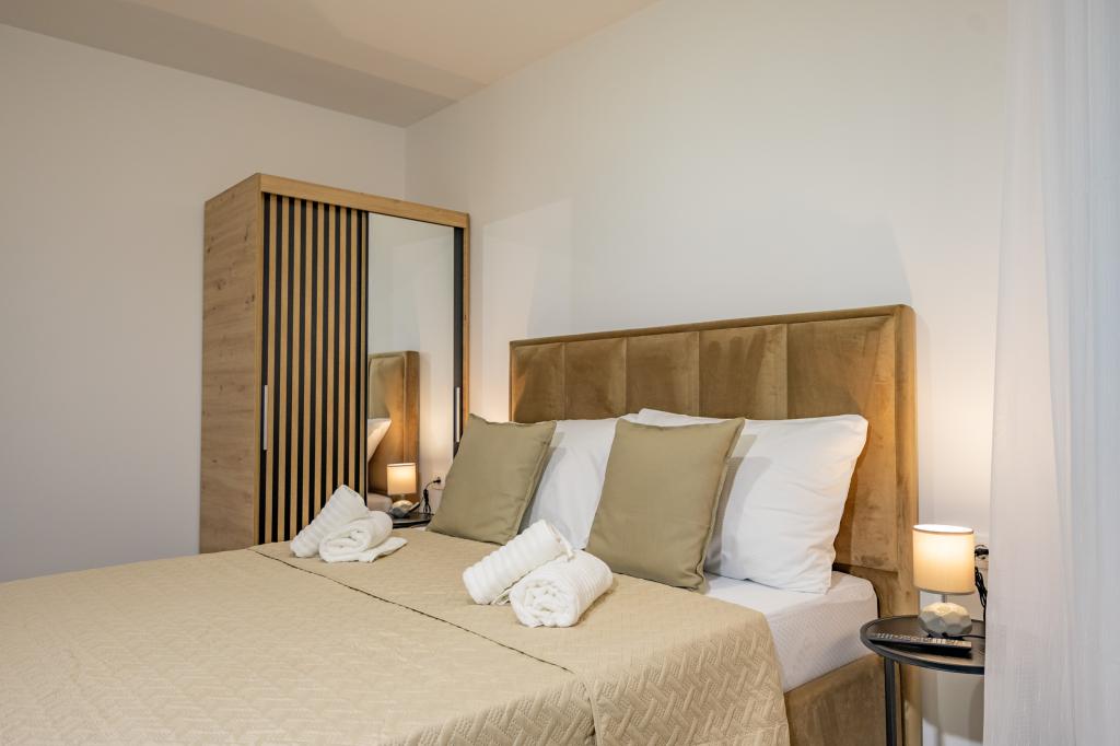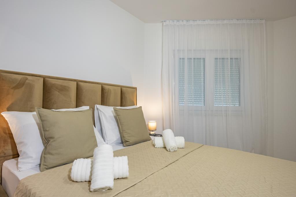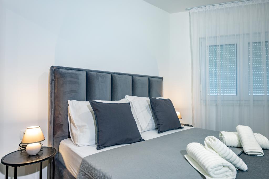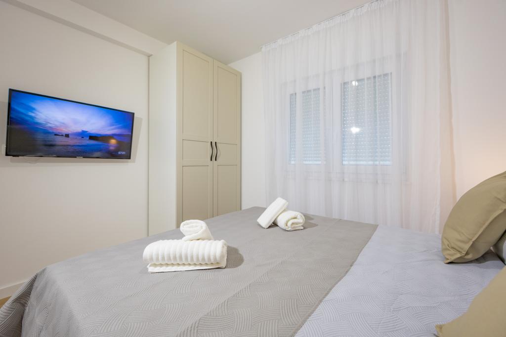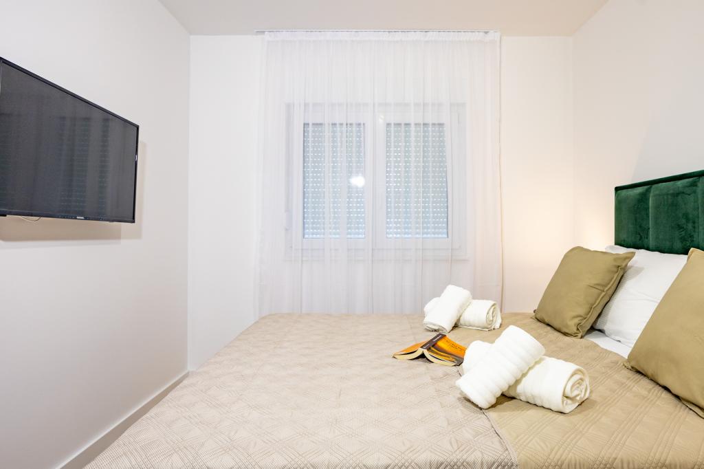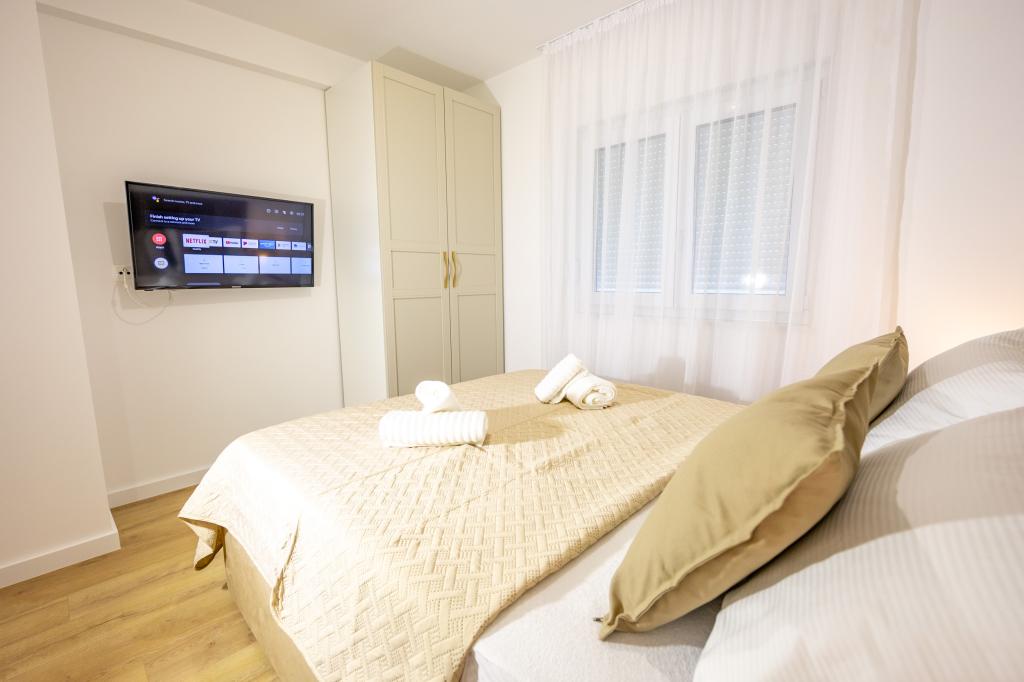 Each apartment exudes modern design and newly renovated interior. In the spacious living room, decorated with tasteful furniture and contemporary details, you will feel right at home. The open concept naturally connects the living room with a fully equipped kitchen, where elegant countertops, quality appliances and all the space you need to prepare your favorite meals await you. The living area opens onto a pleasant balcony - an ideal place for morning coffee or evening relaxation with a glass of wine and an unforgettable sunset over the Adriatic. Each apartment has two comfortable bedrooms with double beds, equipped with soft bedding and plenty of storage space, one modern bathroom and an additional toilet. The apartments are air-conditioned and fully equipped: TV/SAT, internet, washing machine, dishwasher, coffee maker and everything you need for a pleasant and carefree stay.