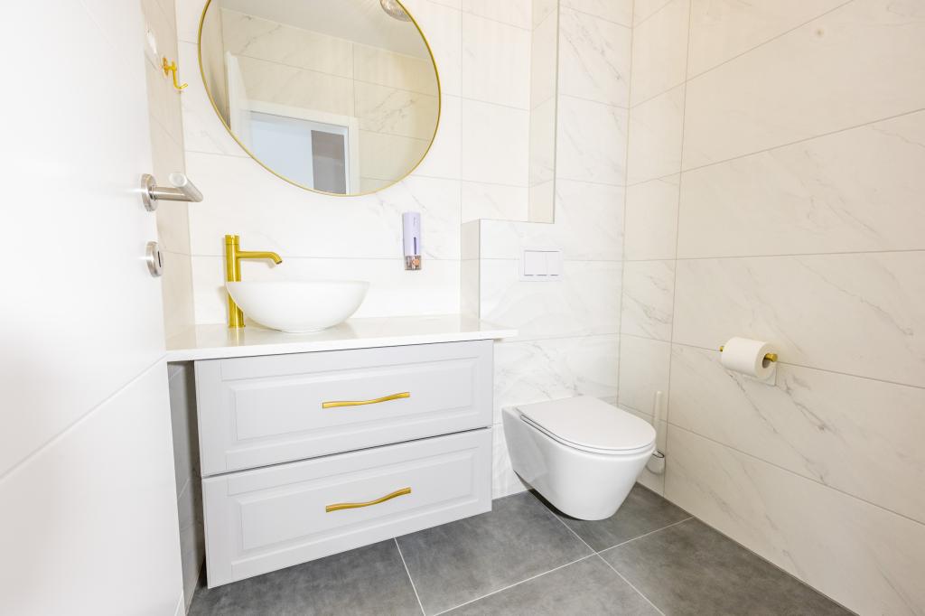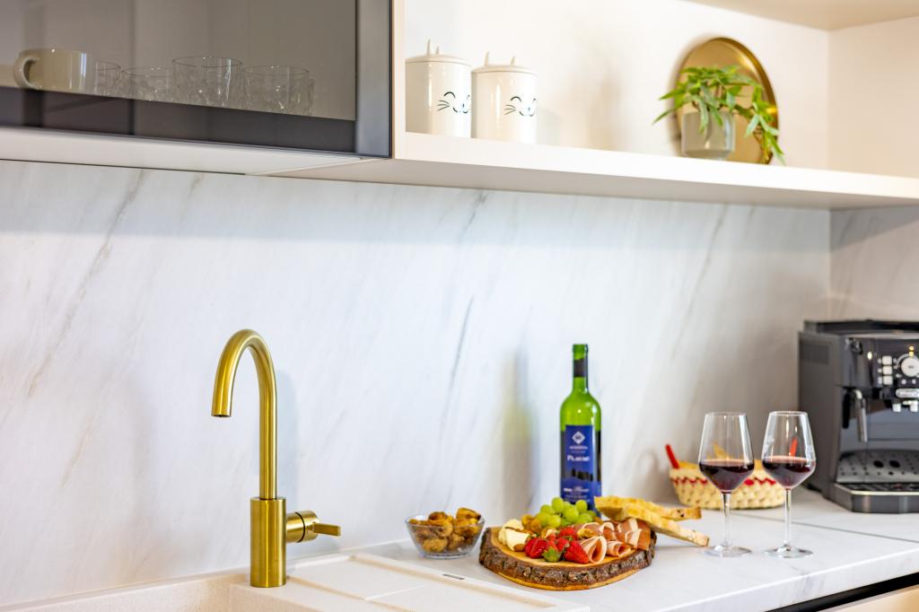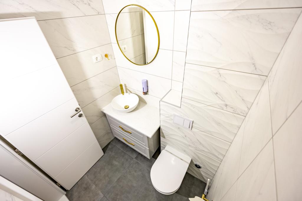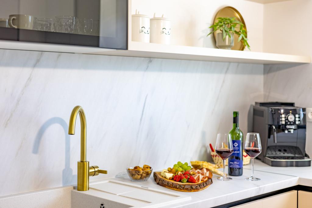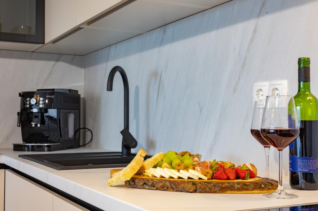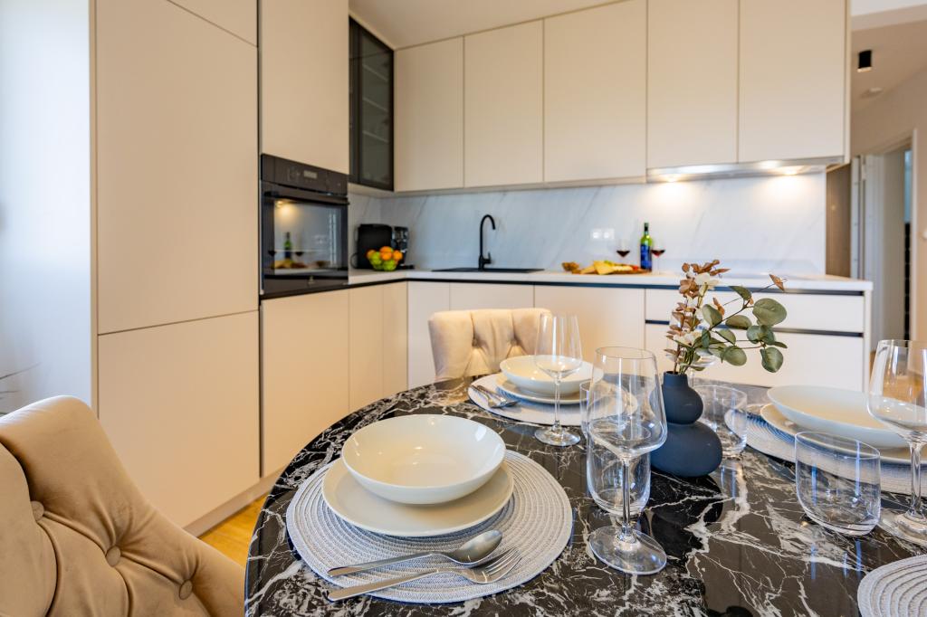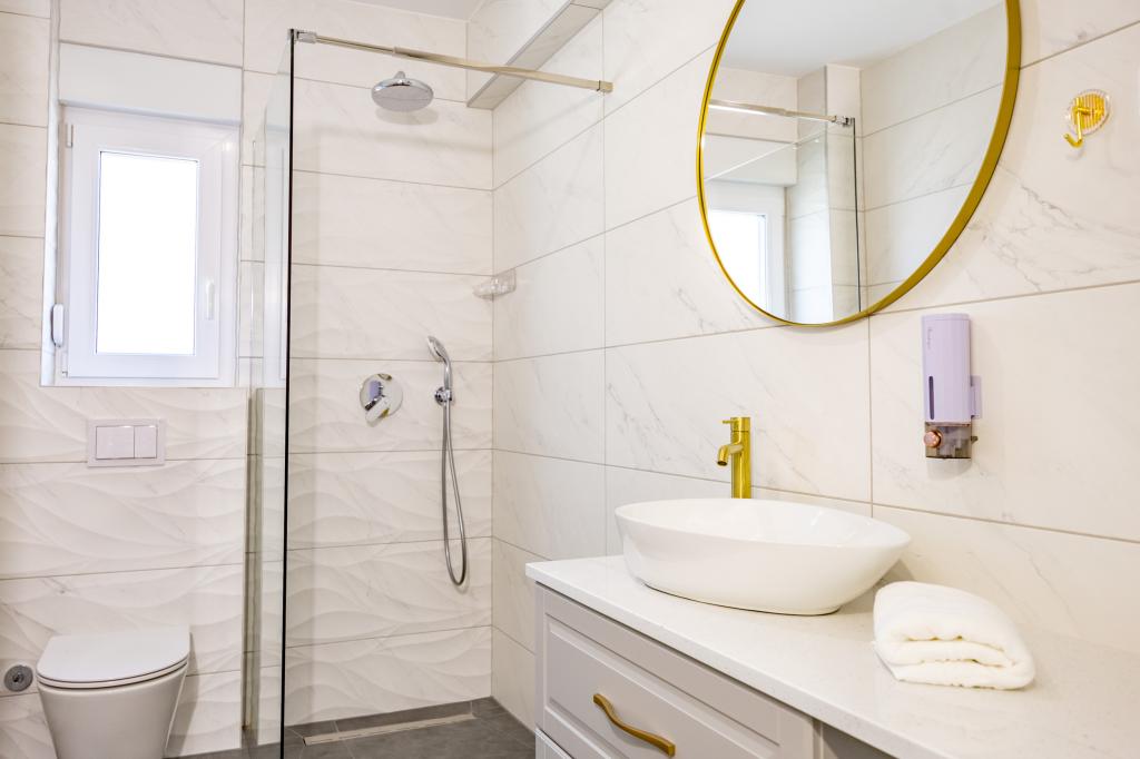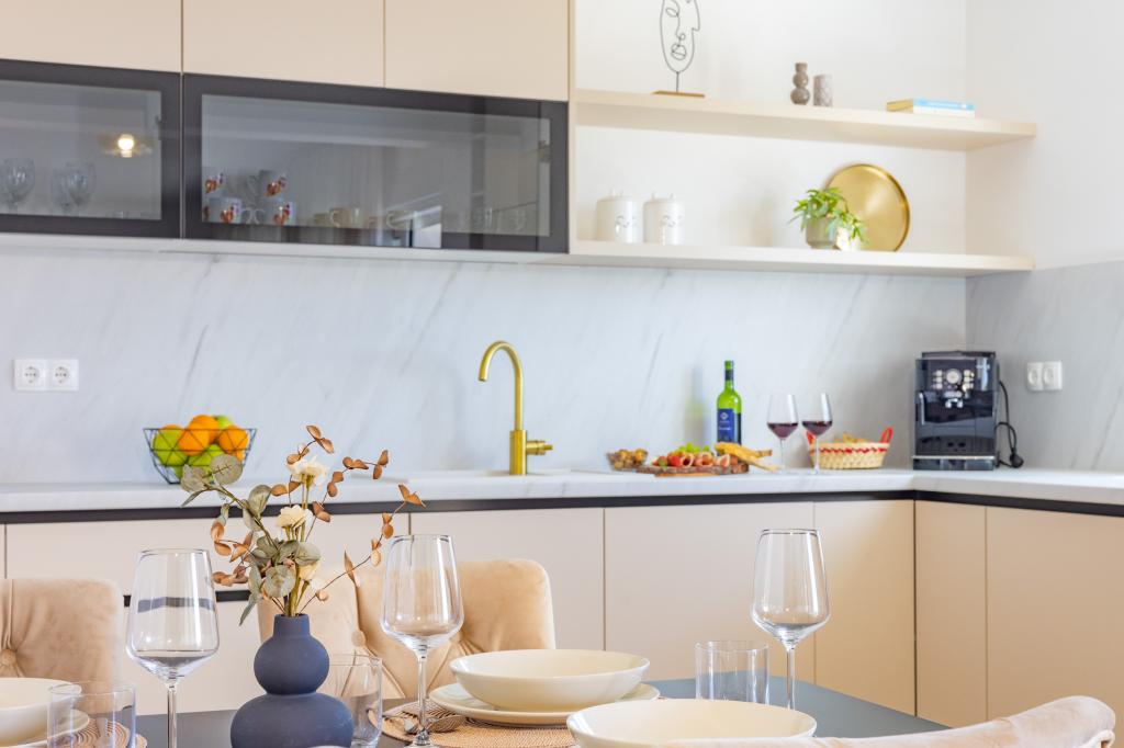 Each apartment exudes modern design and newly renovated interior. In the spacious living room, decorated with tasteful furniture and contemporary details, you will feel right at home. The open concept naturally connects the living room with a fully equipped kitchen, where elegant countertops, quality appliances and all the space you need to prepare your favorite meals await you. The living area opens onto a pleasant balcony - an ideal place for morning coffee or evening relaxation with a glass of wine and an unforgettable sunset over the Adriatic. Each apartment has two comfortable bedrooms with double beds, equipped with soft bedding and plenty of storage space, one modern bathroom and an additional toilet. The apartments are air-conditioned and fully equipped: TV/SAT, internet, washing machine, dishwasher, coffee maker and everything you need for a pleasant and carefree stay.
