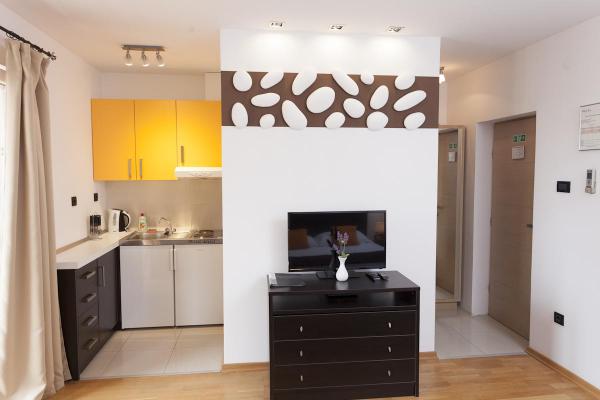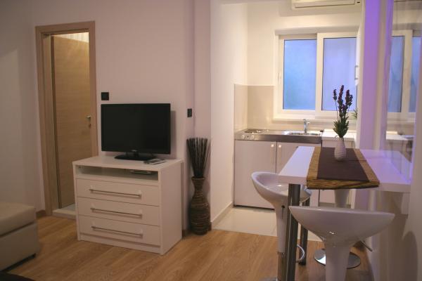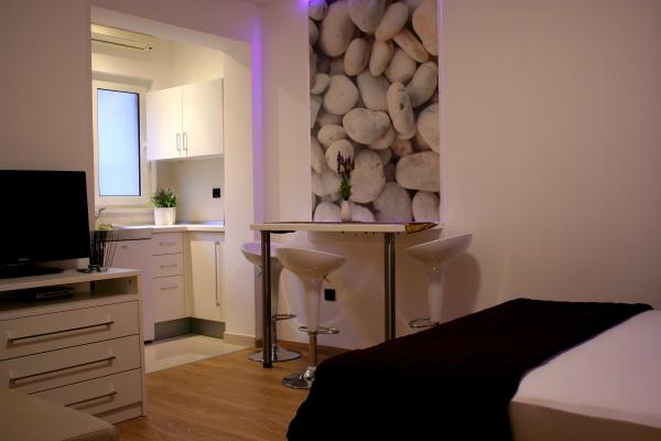 Everything is like in the pictures, the studio is neat, pleasant scent, beautifully decorated, has everything from air conditioning, TV, safety deposit box, fully equipped kitchens, to towels, blow dryer or dryer. Close to the beach, shops and the bus station. The owner was very pleasant and always available. I am very happy, I do not have any objection.
