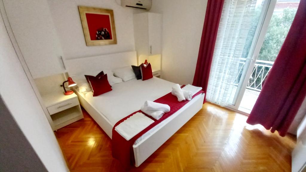 Villa Miranda is located at the very entrance to Makarska by Split, in the first street to the main road. Although in the city, Zagrebačka 94, it is completely surrounded by autochthonous nature - stone, olive trees and tall almond trees (almonds) spread over large areas around the house. All apartments and studios are air-conditioned and offer satellite TV, Wi-Fi, large parking and grill. There is no need to negotiate with the other guests for the grill, as several grills are available. The villa is a tourist, focused on your quiet and comfortable stay. It is 10 minutes walk to beautiful sandy beaches and 15-20 min walk to the center of Makarska. A few steps away is the cafe bar with accompanying amenities, bicycle hire and scooter rental. Only 5 mins walk is a pharmacy, bakery, super market, ATM. Very close is the Vepric-famous sanctuary, known as the Croatian Lourdes, and the tennis courts are 400 m away as well as the discotheque on the beach. You can bring your pet with you as well as bicycles