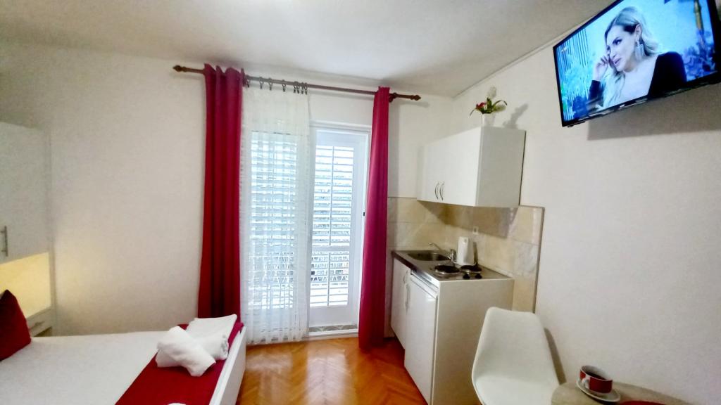 Excellent apartment and location in Makarska, for all those who want peace and quiet who want a vacation at sea. Ms. Miranda is always at your service and is very professional in terms of booking, communication and all the needs that a guest needs during their stay in Makarska and in her beautiful apartment. Clean and tidy studio as seen in the photos without any unpleasant surprises, air-conditioned rooms with sea views and the smell of intoxicating pine. Nearby is everything you may need during your stay, bakery, market, laundry, fruit, exchange office, gas station, bike rental or scooter. A warm recommendation for everyone who wants to visit Makarska and the Riviera.