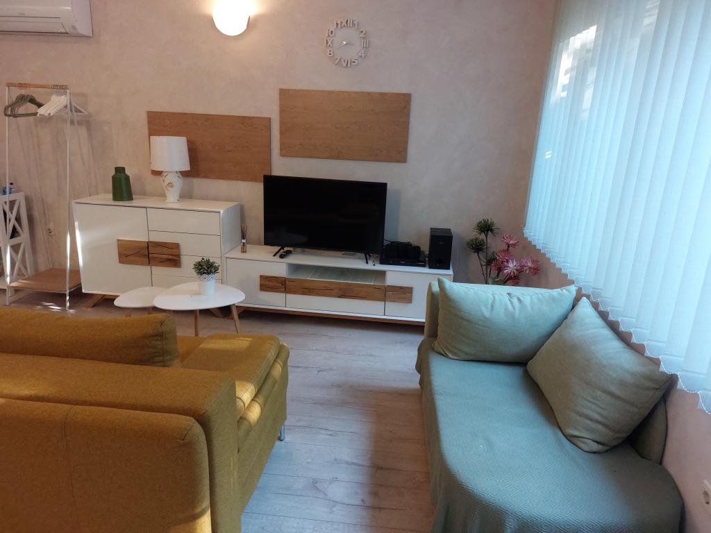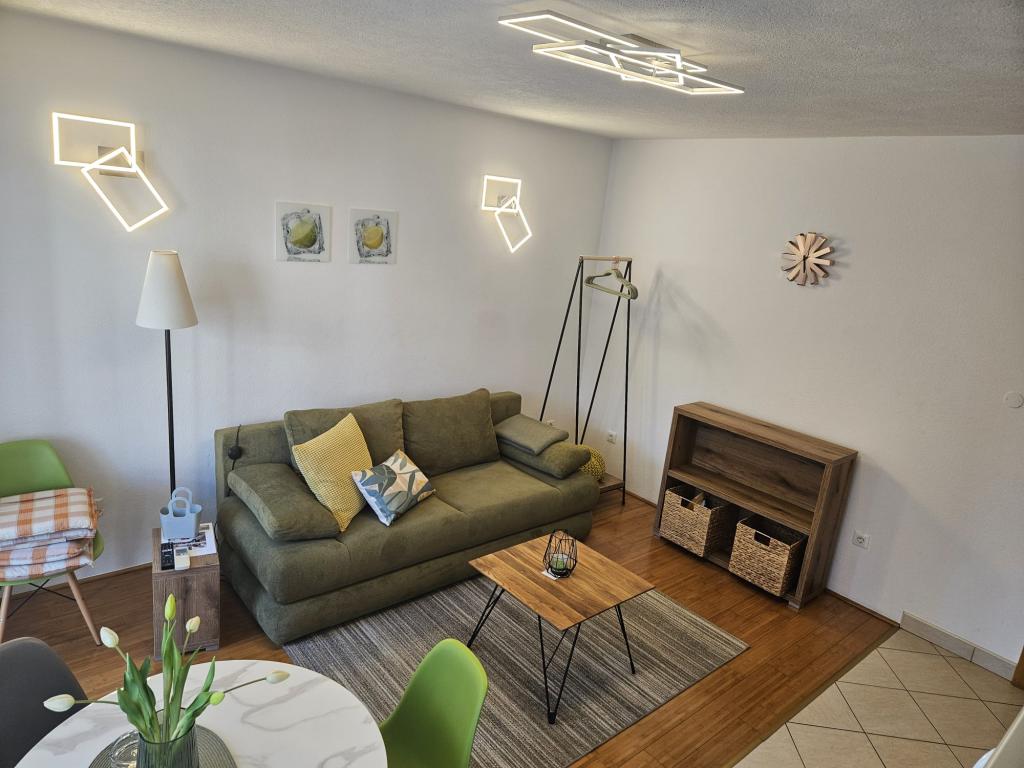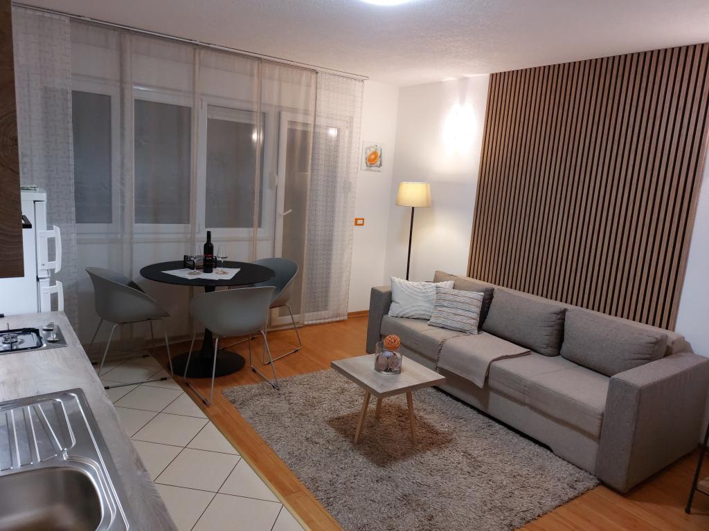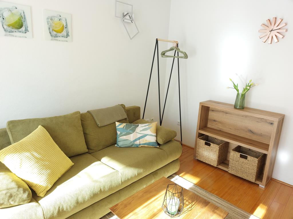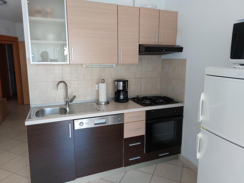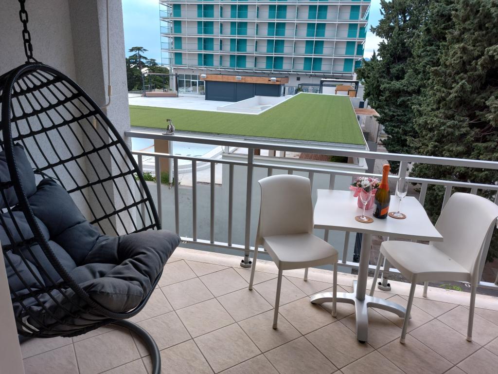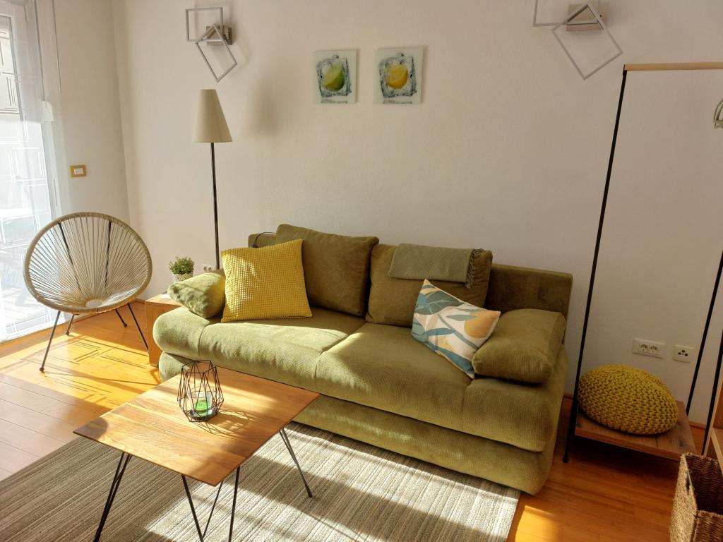 Our apartments are modern and fully equipped to make your stay as comfortable and carefree as possible. Each apartment includes an iron and ironing board, hairdryer, filter coffee maker, kettle, microwave. Guests also have access to complete utensils for preparing and serving food. All accommodation units have a flat-screen TV, free Wi-Fi, indoor and outdoor seating and relaxation areas. The accommodation units are air-conditioned. Parking must be reserved in advance due to the limited number of parking spaces within the facility. Fresh bed linen and towels await you upon arrival, which are changed as agreed. A baby cot, with prior notice, is available in this facility and is free of charge. Within the facility there is a shared courtyard with seating furniture, surrounded by Mediterranean plants - an ideal place to relax. The facility is located in a quiet area, in the second row from the sea, just a 2-minute walk to the beach and a ten-minute easy walk to the center.
