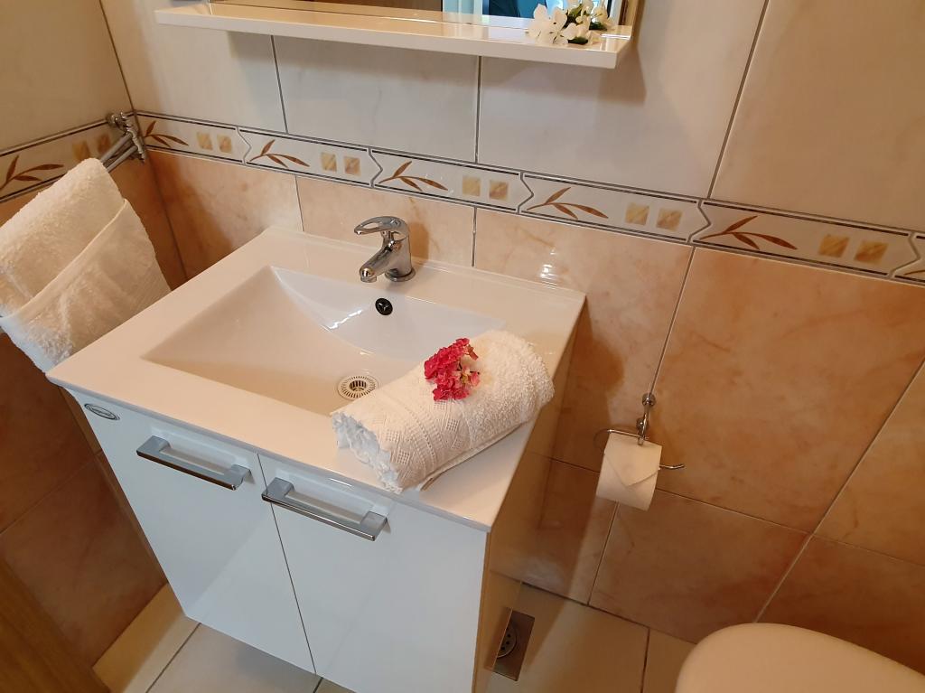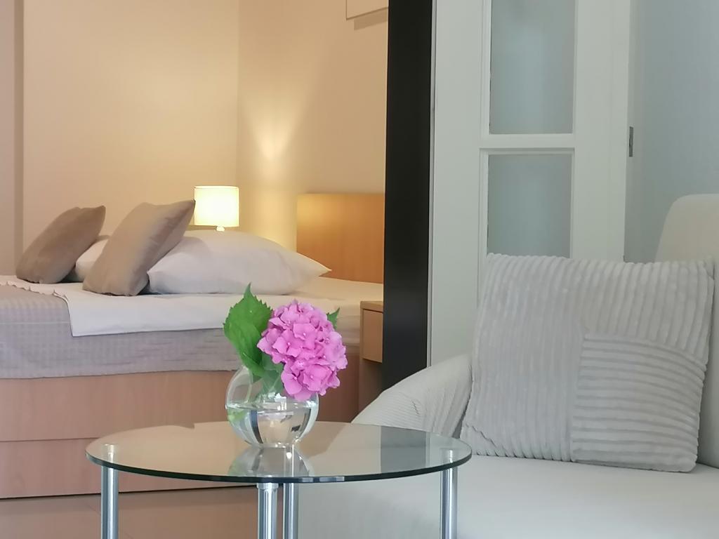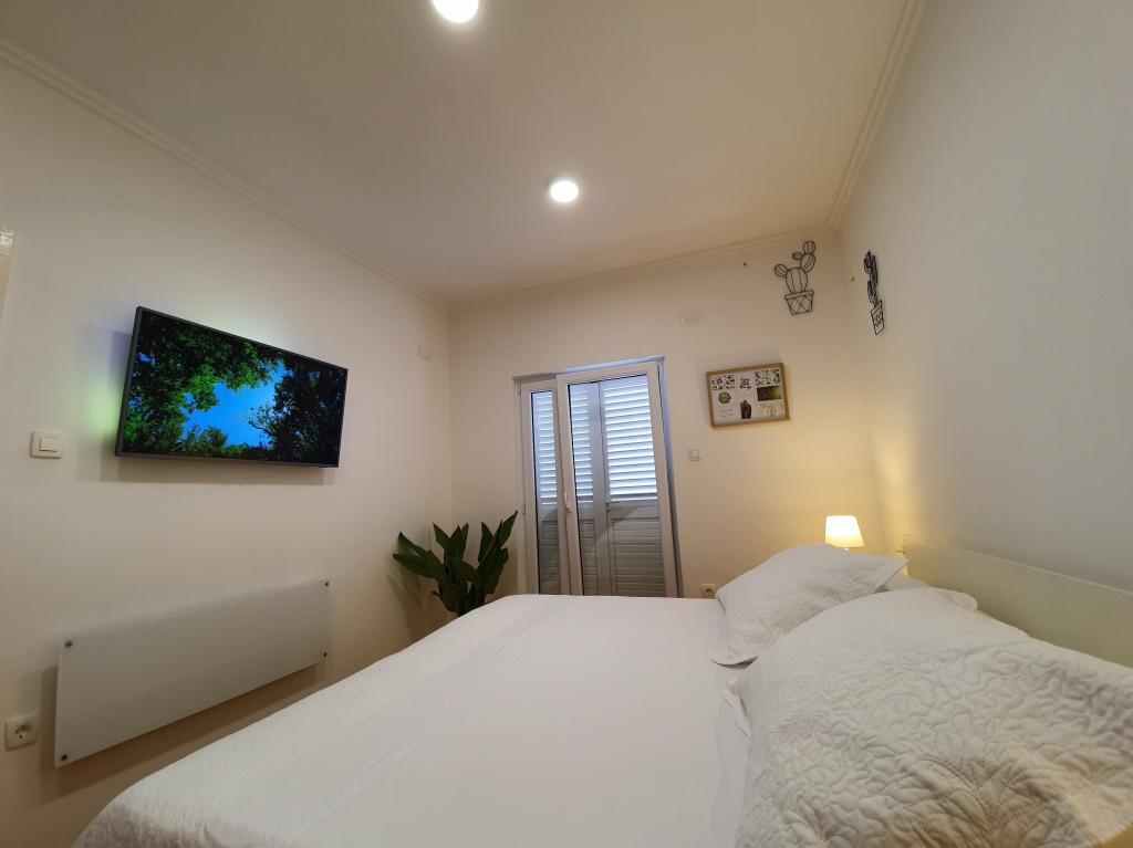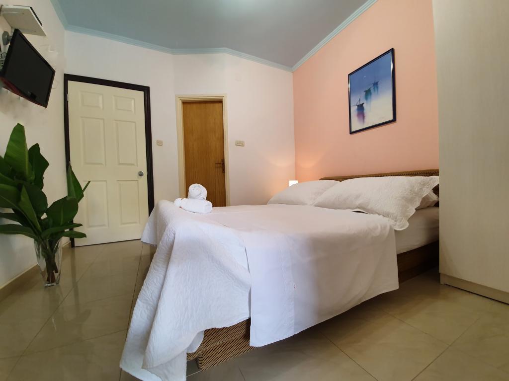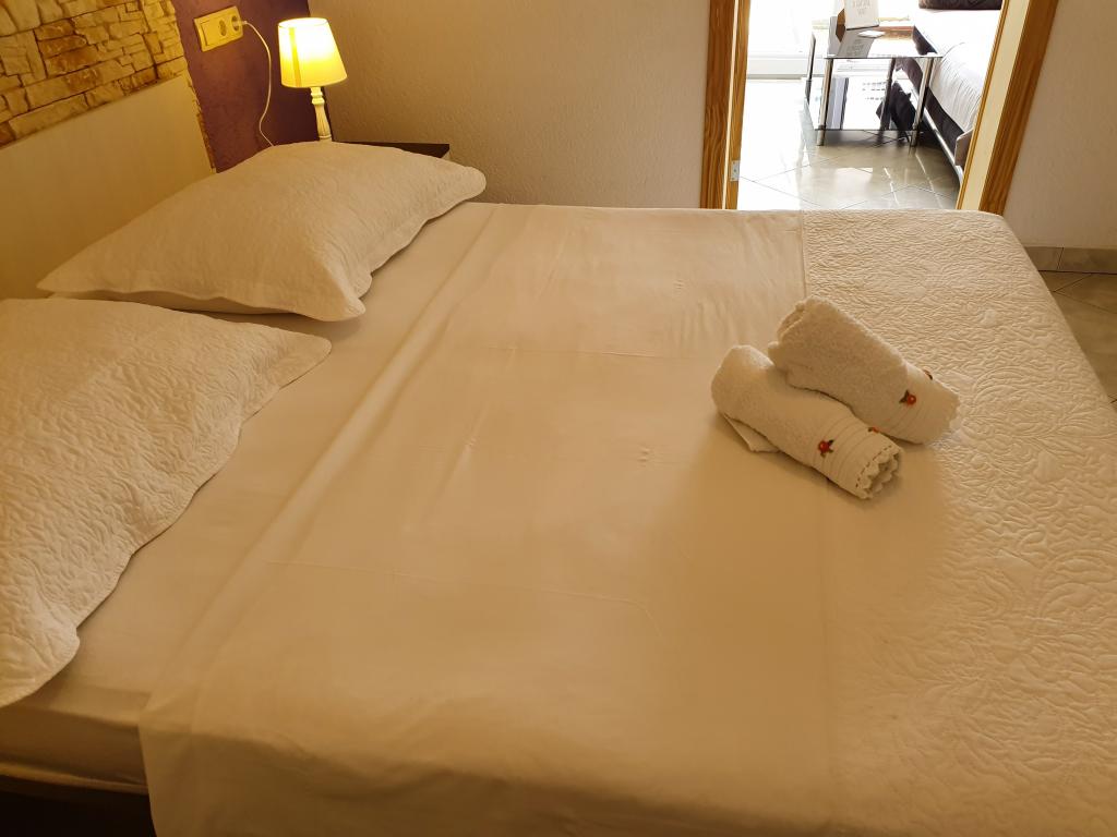 The room is clean and tidy, freshly painted, but smaller than 17m2. Fortunately, the terrace is big, almost as big as the room. Only towels are changed during the stay. The building has its own parking, but we were given a parking space 300m away. It is about 500 m from the sea, but it is very steep. The owners are cultured and friendly.