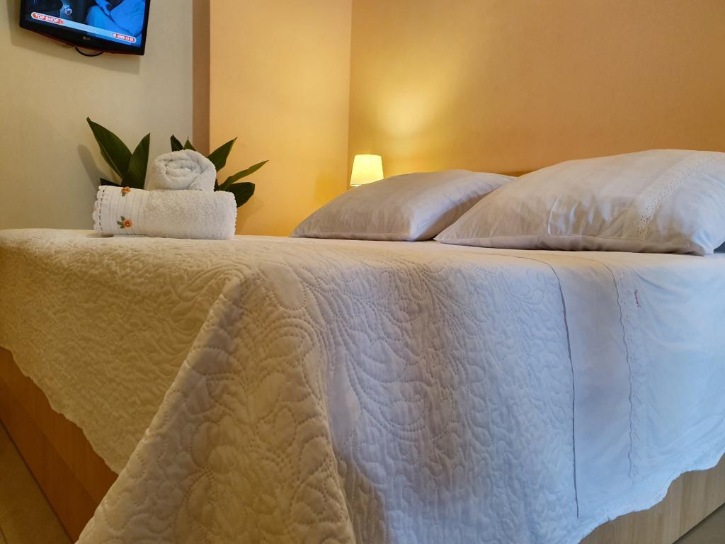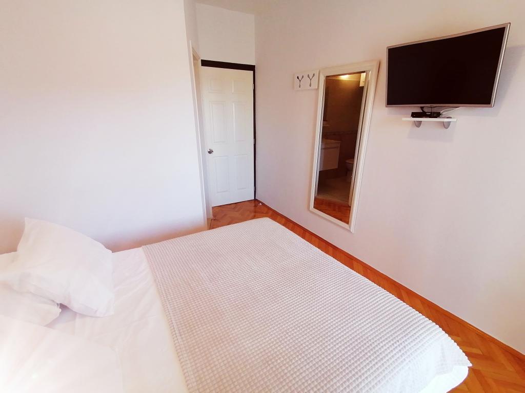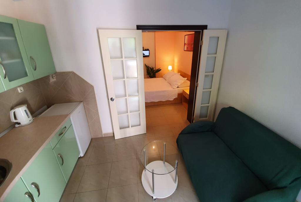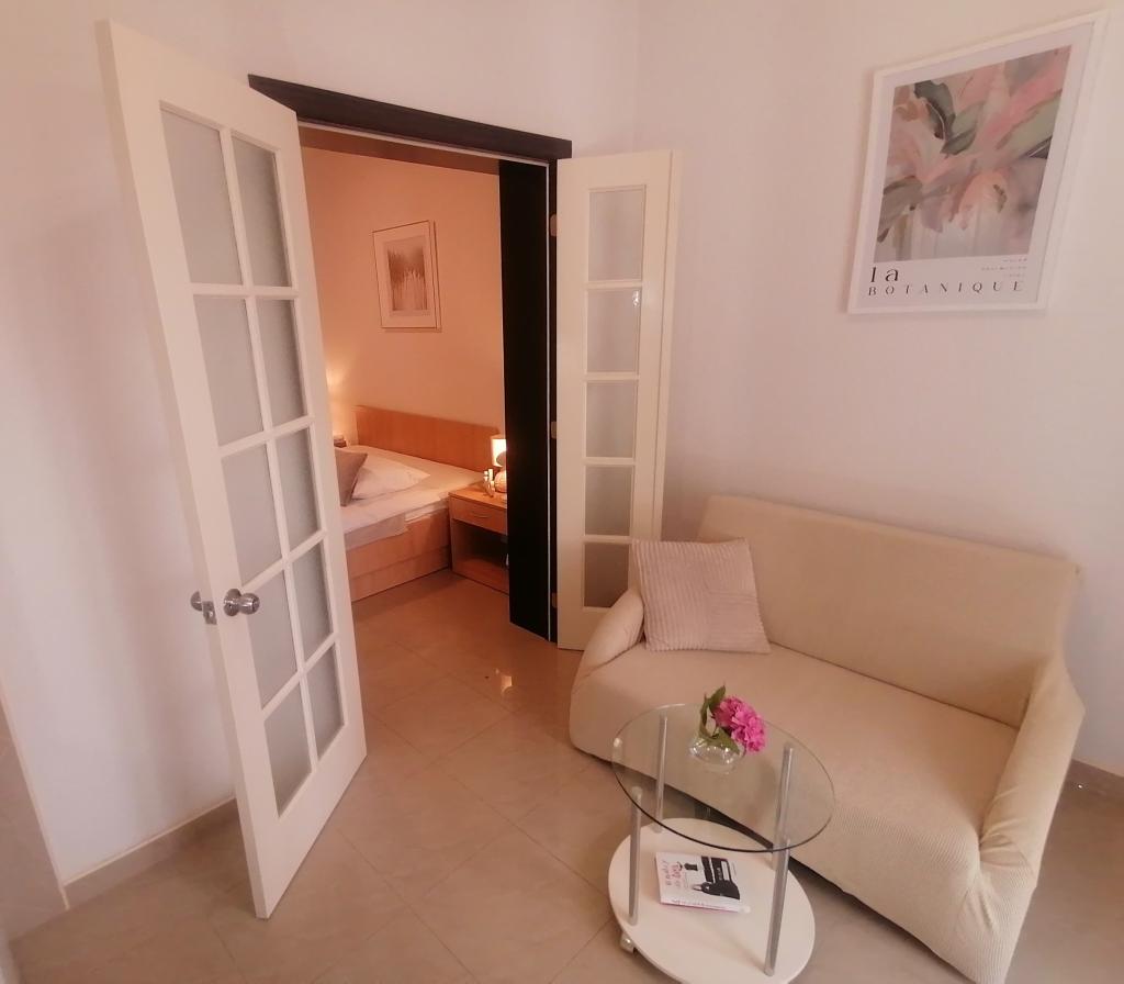 The room is clean and tidy, freshly painted, but smaller than 17m2. Fortunately, the terrace is big, almost as big as the room. Only towels are changed during the stay. The building has its own parking, but we were given a parking space 300m away. It is about 500 m from the sea, but it is very steep. The owners are cultured and friendly.