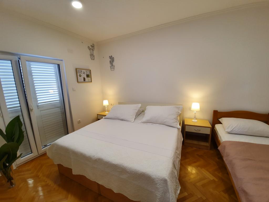 The apartment was excellent, clean, tidy and well equipped. The terrace is quiet and spacious, the kitchen has everything you need and the beds were very comfortable. The Vranješ family is very hospitable and they welcomed us very nicely and saw us off, they were very understanding for everything and were available at any moment, both for agreements about the apartment and for recommendations for fine restaurants. It is located about 10-15 minutes from the nearest beach, about 20-25 minutes from the center and the city market, which we highly recommend, in general we really liked the location (quiet area, but not too far). There is a well-stocked Konzum across the street, there are nice cafes and a bakery around. We didn't need it, but the parking lot is spacious and accessible. All in all, a very nice experience!