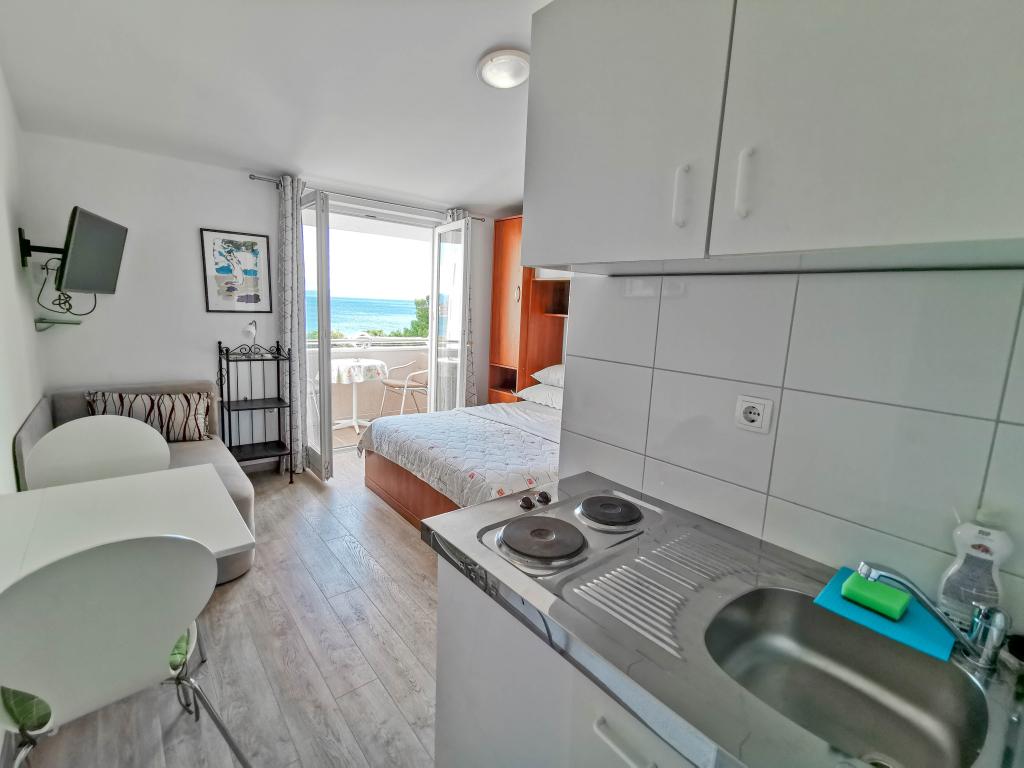 Do you want to be this close to the beach? Makarska - 70 meters from the main beach (about 1 minute walk) Free parking Free wi-fi Free use of air conditioning Our apartments: V1 - apartment for 5 people, ground floor, one large bed and one single bed in the room, and one couch on sofa in the living room V2 - studio for 3 persons, third floor, one large bed and one single bed, balcony with sea view V3 - studio for 3 persons, third floor, one large bed and one single bed, balcony with a view of sea V4 - apartment for 4 people, third floor, one large bed in the room and one sofa bed in the living room, balcony with a view of the sea. All apartments have their own kitchen and bathroom/toilet. For prices and other questions, please contact us. We look forward to your arrival