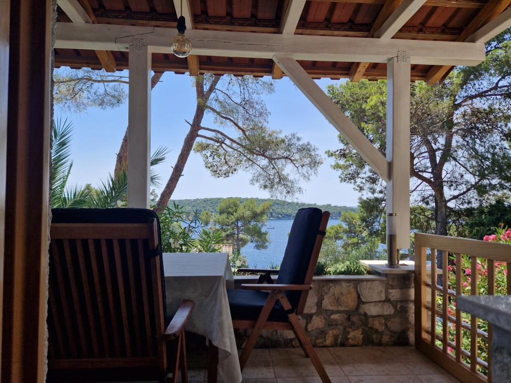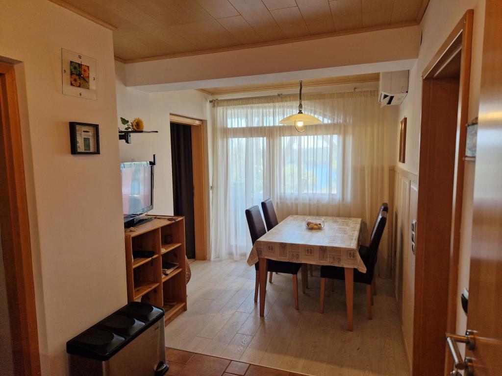 Fully equipped apartment has two separate bedrooms, living room with kitchen, bathroom and terrace. Beautiful sea view from the terrace, bedroom and living room. It is located in a quiet area of Mali Lošinj, Poljana I, located 90m from the sea. The beach is pebble and concrete, and is located 350m away. Near the apartment there is a promenade by the sea and a bicycle path. Parking is located in front of the apartment. Pets are welcome (surcharge for pets is €7 per day) Final cleaning of the apartment is €60
