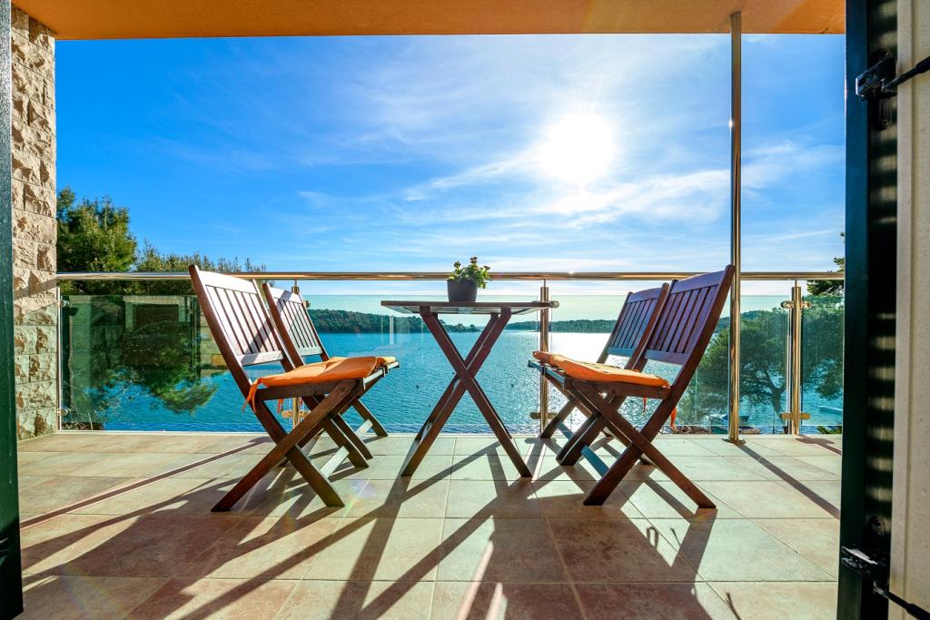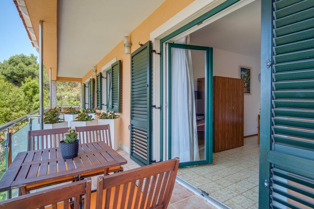 Private house by the sea between pine trees in a very quiet neighborhood with family houses. The house has four apartments with sea view. A barbecue is available next to the house. Apartments for 2 2 persons Kamelia, Lavanda and Magnolia consist of a room with a double bed, a kitchenette with all appliances, and a large living room with a dining room from which there is a view of the sea and an exit to the balcony. There are also two separate beds in the living room. The apartment also has a bathroom with a shower. In the apartment for 4 1 persons Gardenia there are two rooms with a double bed and in one there is a third bed and both have a view of the terrace and the sea, a kitchen with a dining room and all appliances and a bathroom with a shower cabin. The apartments also have televisions with satellite reception. In the immediate vicinity of the settlement, only 5 minutes on foot (200m), there is also the Poljana car camp with a restaurant, shop and play area for children (swings, slides, jumping rope).