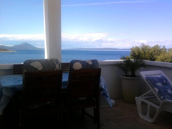 The apartments are located in a quiet very small peninsula Paarl before the entrance to the town of Mali Losinj, with a view of the three neighboring islands of Cres, Rab and Pag. Seafront. 15 minutes walk to the center, 3 minutes walk to the restaurant and shops, 2 minutes walk to the very small beach of pebbles and rocks, and a 4-minute walk to the next beach with shower. Sea view from every balcony, the kitchen, the living room, out of bed. From the terrace and from the living room it is possible to see dolphins in the sea in front of the house. Private parking for 5 cars. Grill outdoors overlooking the sea. You will hear the sound of the waves, summer sometimes crickets. I do not hear the cars from the streets. Sometimes I hear sheep and chickens. At night the beautiful view of the stars and the Milky Way. Part of the terrace is covered (shade). Summer evenings are pleasant on the terraces with the breeze coming from the sea. The smell of pine trees, Pittosporum, oleander, lavender, sage, eucalyptus, rosemary and olive trees in the garden. Water for drinking. Heaven on a small island