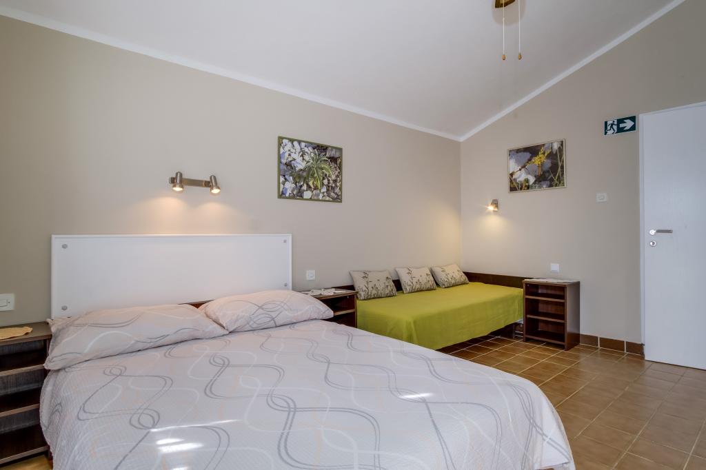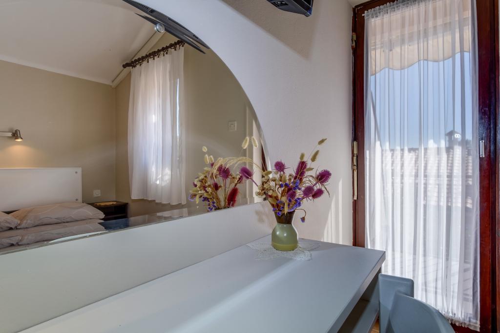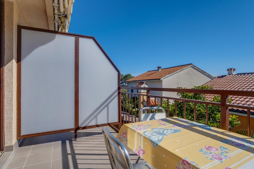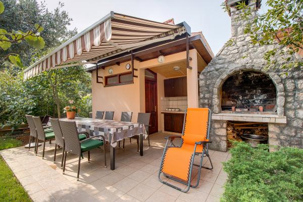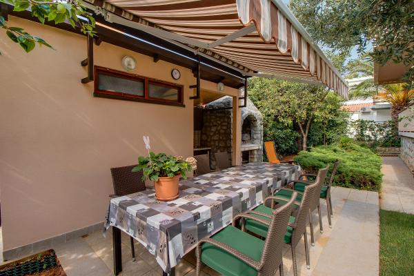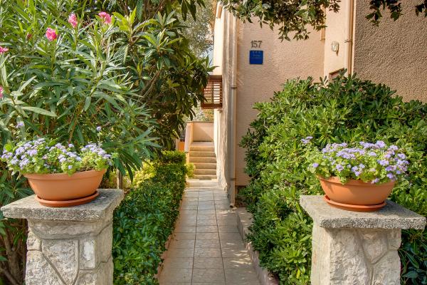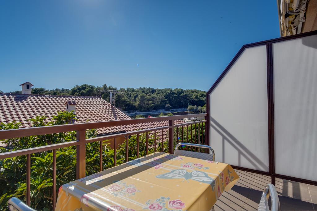 Apartments ANNA 1 and ANNA 2 are part of the house of the Kerovec family. The house is located in a quiet street in the village of Artatore, surrounded by greenery. It is 120 m away from the beach. The entrances to the apartments are separate. The apartments are modernly furnished. The kitchen is equipped with utensils for preparing and eating food. In the kitchen there is a dining table and a sufficient number of chairs. The bathroom/toilet is equipped with a shower cabin. Towels are changed every 3 days. Toilet paper is provided only upon first arrival in the apartment. In the bedroom there is one double and one single bed of normal dimensions. The air conditioner in the room and the ceiling fan are used according to one's own wishes. There is a television receiver in the room. Bed linen is changed every 7 days. b Barbecue and garden furniture can be used by agreement with the host. Each apartment has a parking lot inside the house fence, where cars are protected from the sun all day.