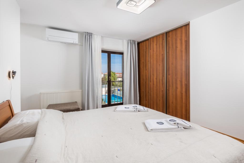 The fully equipped and air-conditioned apartment is located on the first floor of a family house. The house is located at the end of a small cul-de-sac - no traffic. A parking space is provided. If you own a boat, you can moor it in a small harbor only 100 meters from the house. Reservation of connections must be announced when booking the apartment. In the port itself there are three very good restaurants, known throughout the island. You only need an 8-minute easy walk to the well-maintained beach. There is a shower on the beach and also another restaurant. Porat has arranged a nice children's playground for your little ones, which is located halfway to the beach from our house.