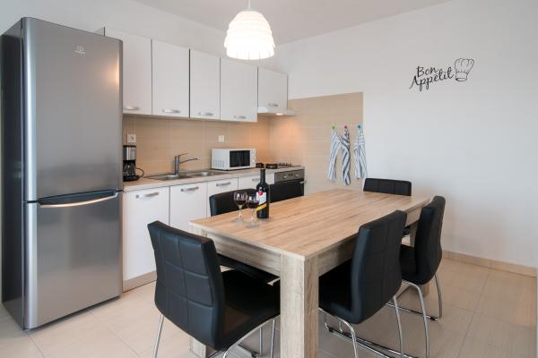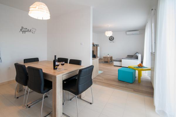 Beautiful newly renovated apartment for 6 2 persons on the Island of Krk, in the town of Rasopasno. The apartment is 85 m 2 and has a terrace of 35 m2 which offers a beautiful view of the surroundings. The apartment consists of three bedrooms, a spacious living room, a very well equipped kitchen and two bathrooms. If you are looking for a peaceful vacation and you are a genius of relaxation, this is the right place for you. Only 200 m from the apartment is a restaurant, and at the same distance there is a shop.