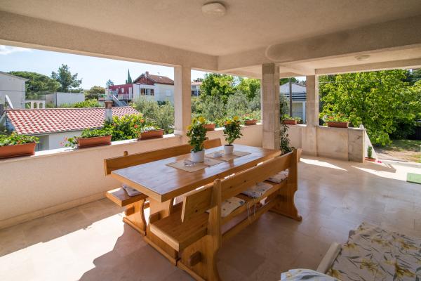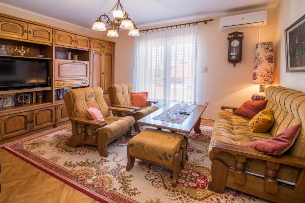 The Mediterranean vegetation, the infamous smell of the sea, the peace and quiet, the vicinity of the beach, restaurants and shops best describe the place where our apartment is located. 200 m away from the beautiful beach of Hotel Malin and 1000m from the center of Malinska are the ideal choice for your family vacation. The apartment has its own terrace, shared garden and private parking. It has its own entrance, yard, parking and all possibilities for a peaceful and intimate vacation. Apartment 4 1 with two bedrooms provides accommodation for 5 persons. It is located on the second floor. It has a balcony overlooking the sea. The apartment is air-conditioned, has satellite TV and Wi-Fi access.