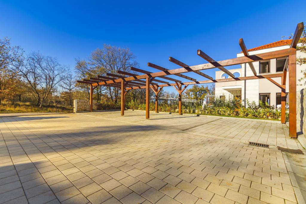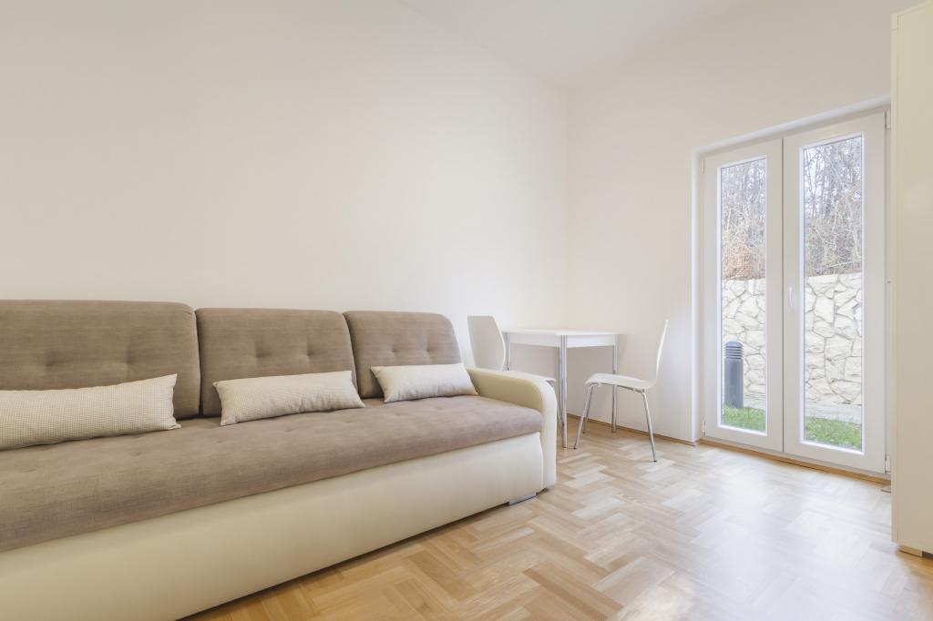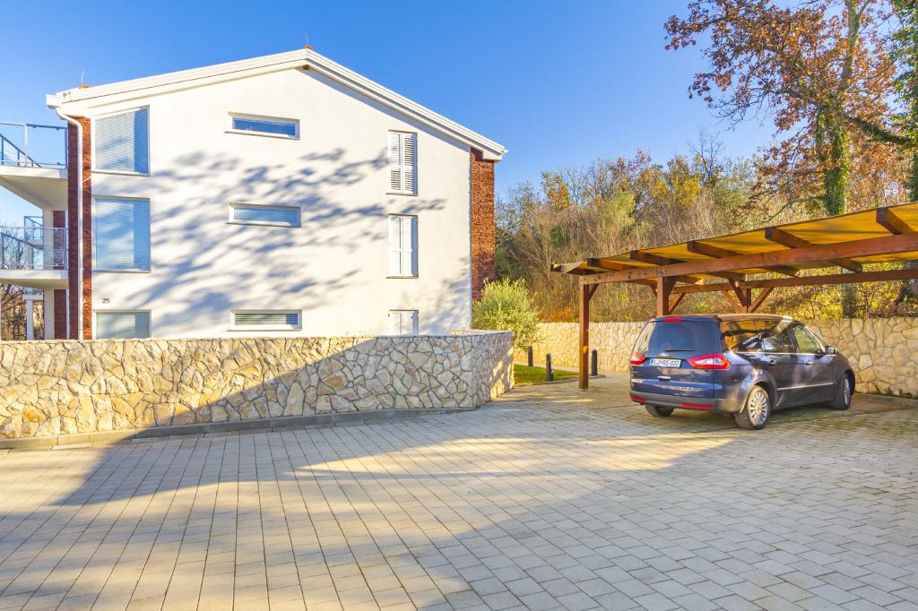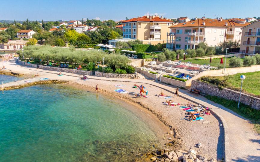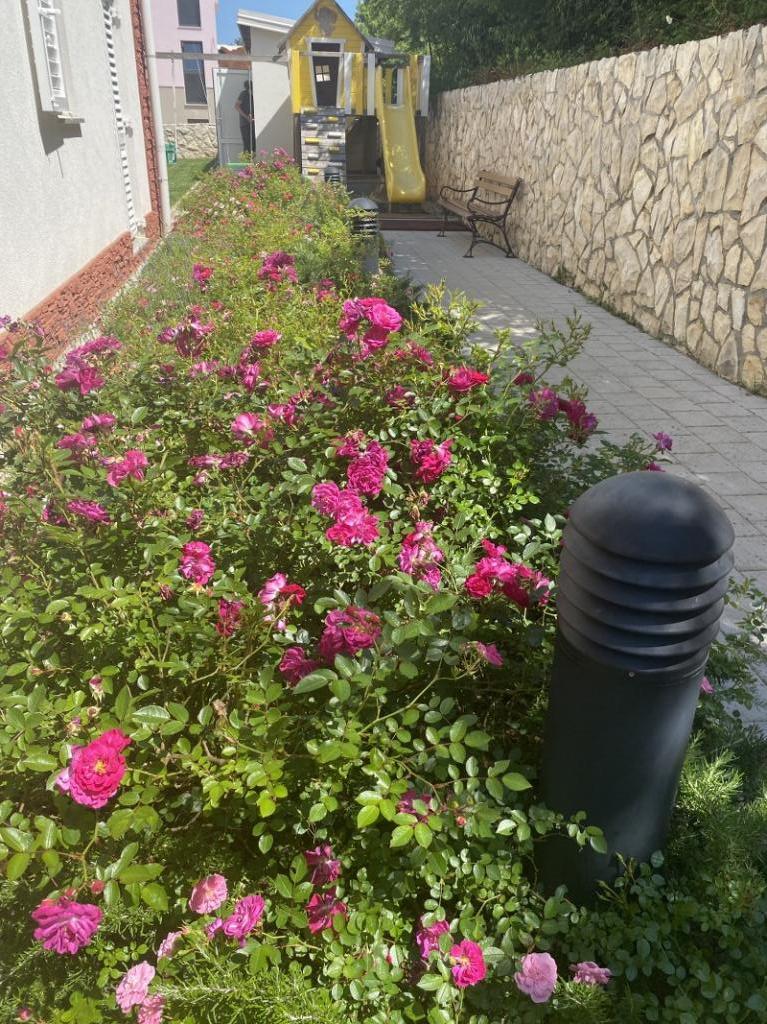 The apartment house Villa Futura is located a few minutes' walk from the pebble beach of Rova, in a quiet location, in a dead-end street. The apartment is 100 m2 in size and has three bedrooms (double), two bathrooms (one with a shower and one with a bathtub). The kitchen is connected to the dining room and living room and to the balcony or terrace. Next to the house is a larger covered parking lot and a smaller swimming pool with deckchairs for sunbathing. There is an outdoor charcoal grill next to the pool. There is a playground for children in the garden. We offer accommodation and transportation for Camina KRK hikers.
