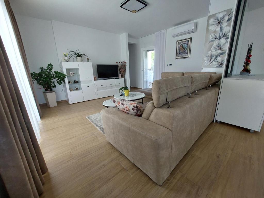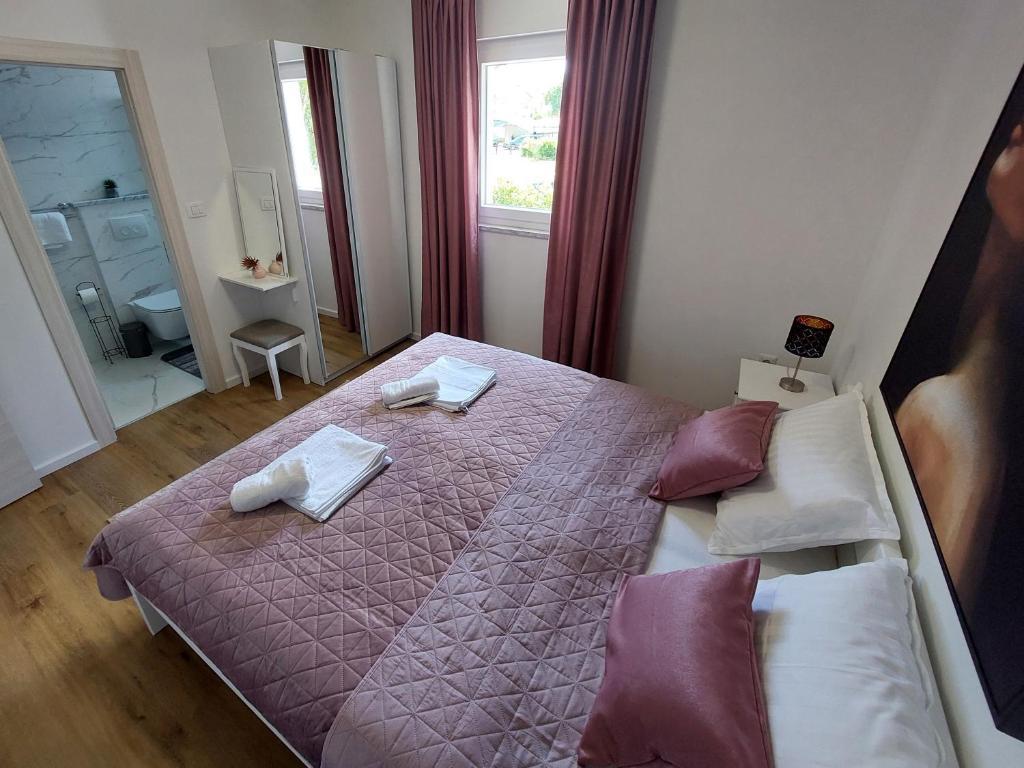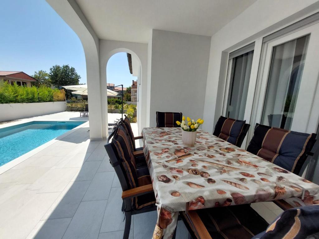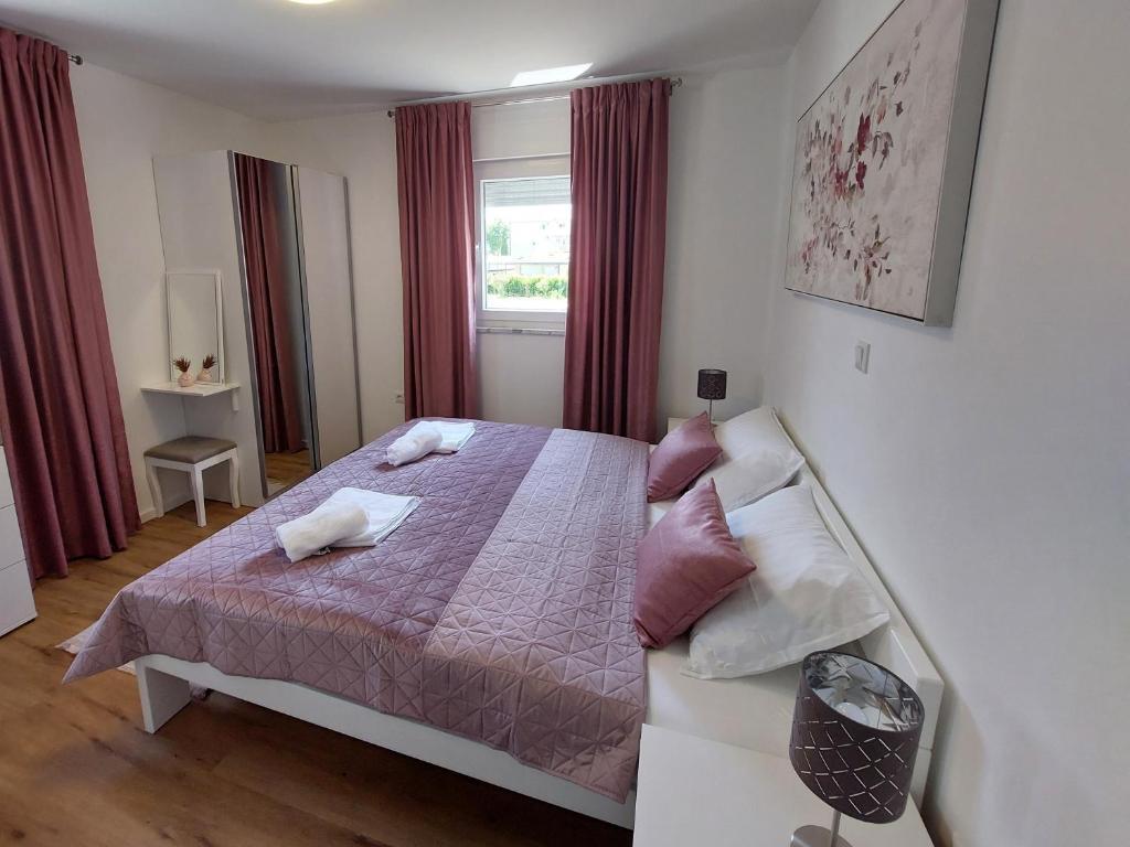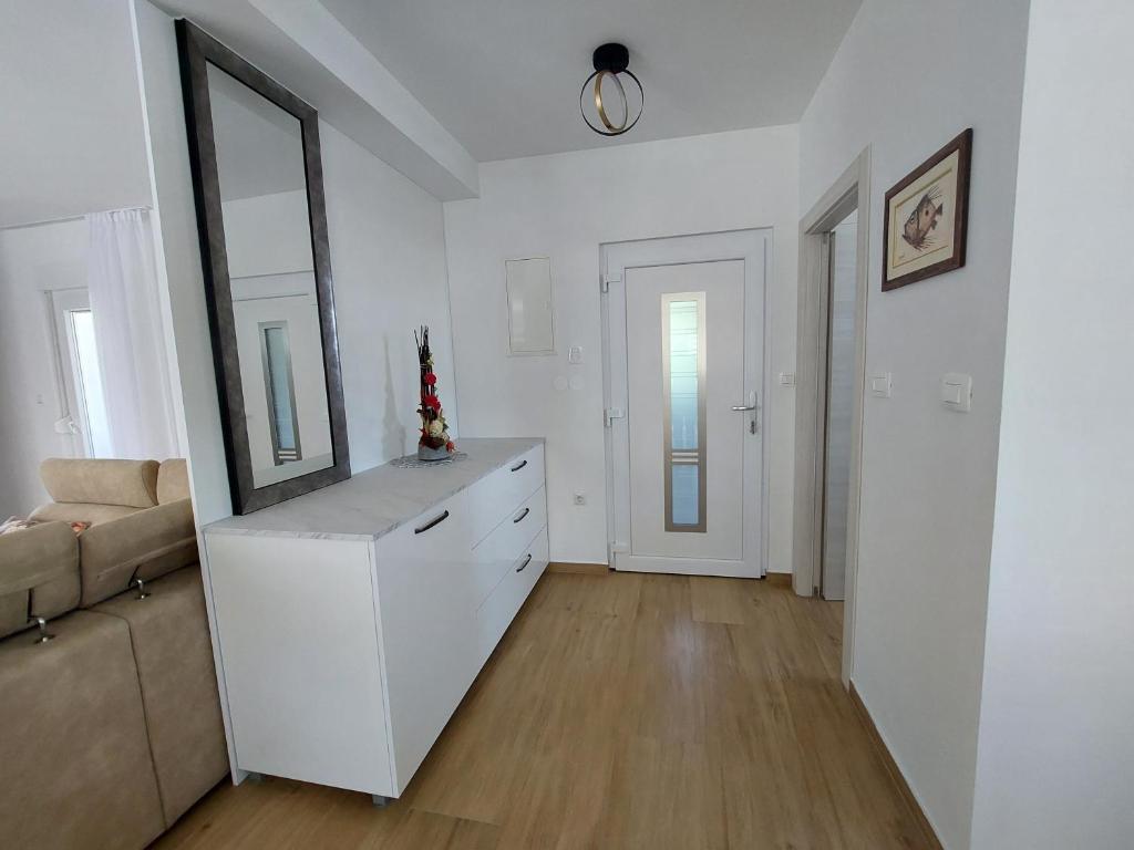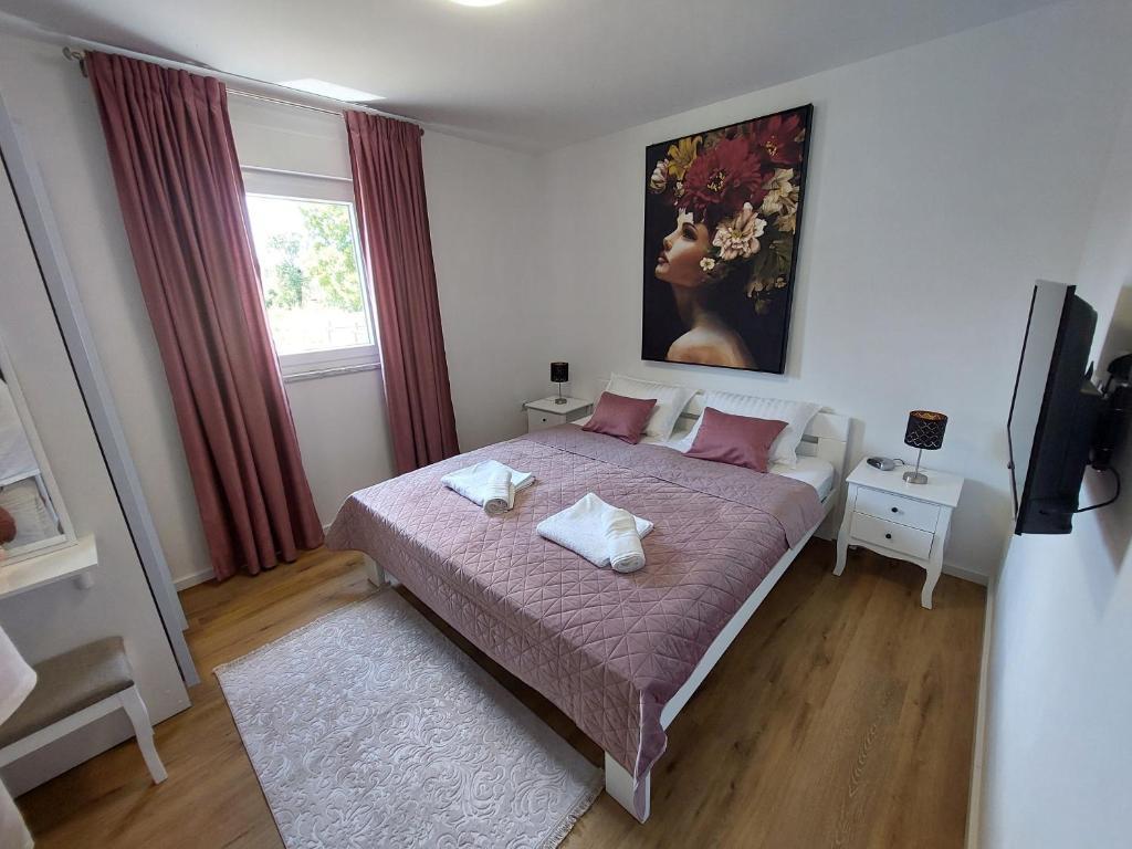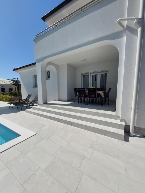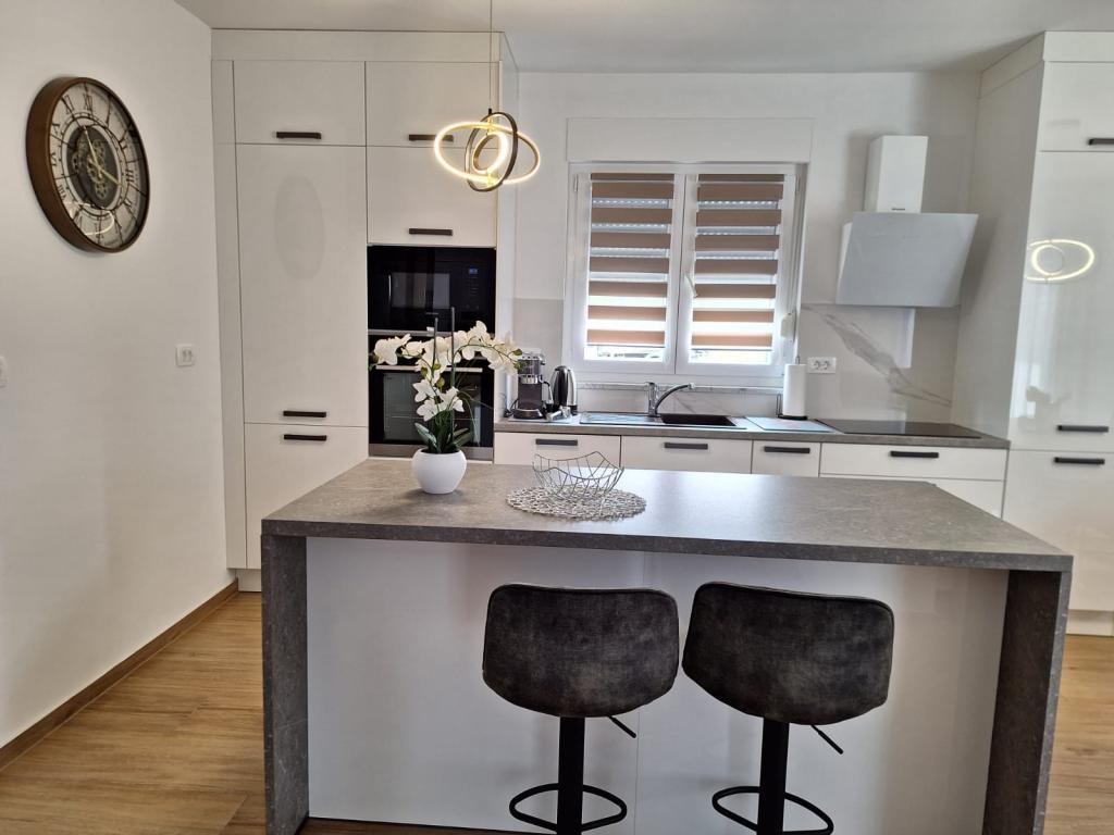 Fully and modernly equipped two-room apartment with swimming pool in a quiet area, located in Sv. Anton not far from Malinska. Size 110m2. Superior accommodation for family or guests who want a pleasant and peaceful vacation. Two bedrooms with private bathroom. Possible accommodation for up to 6 people. Closed parking space. Air-conditioned. The pool is used only by guests of the apartment.