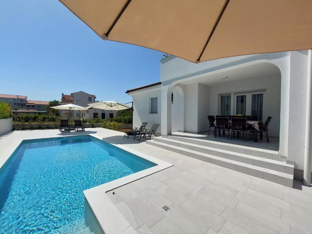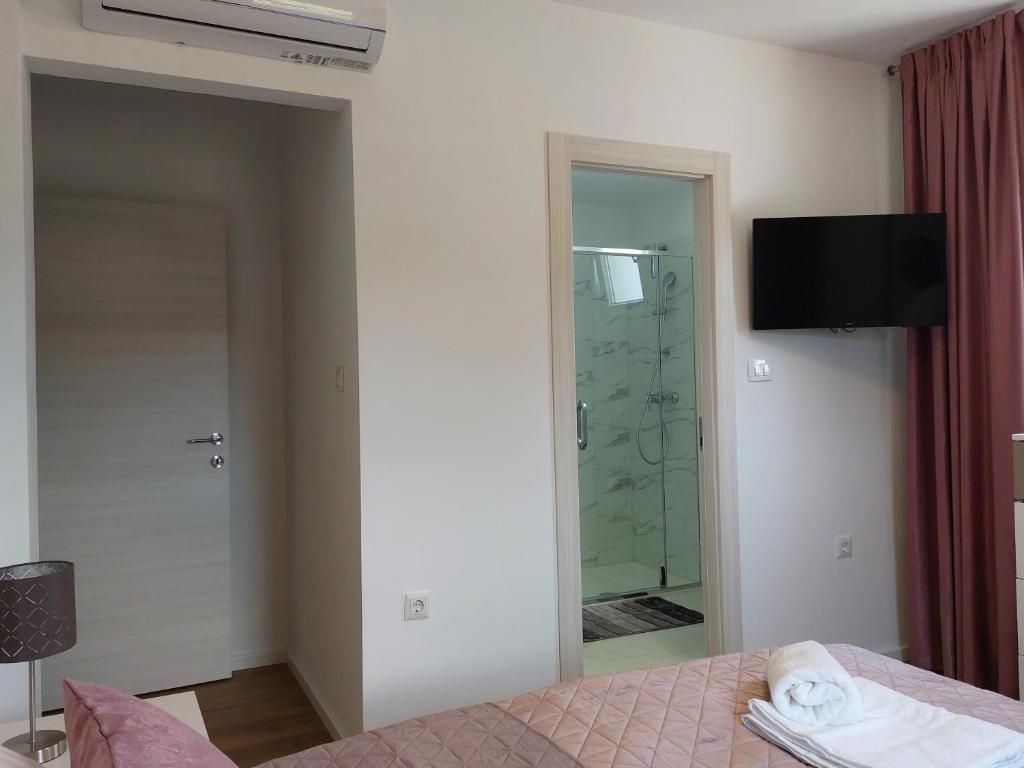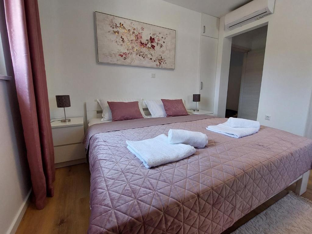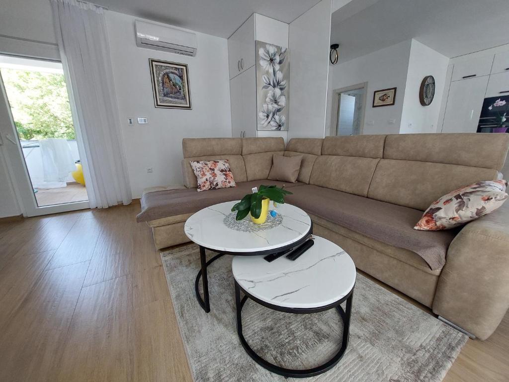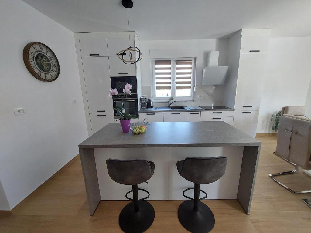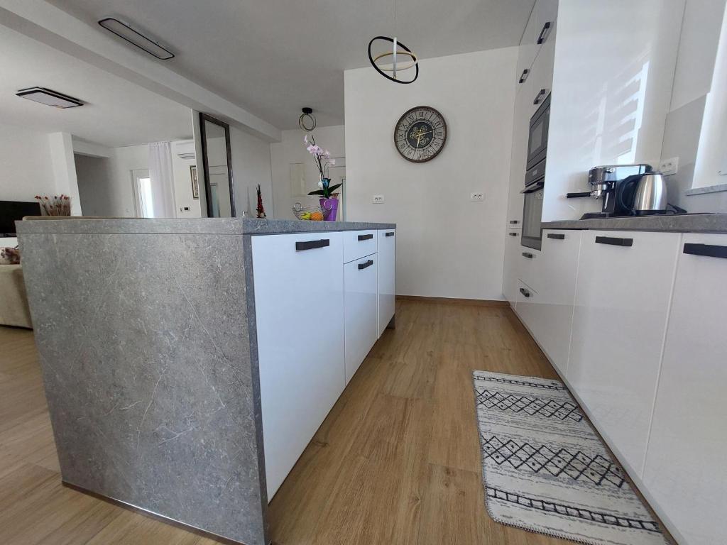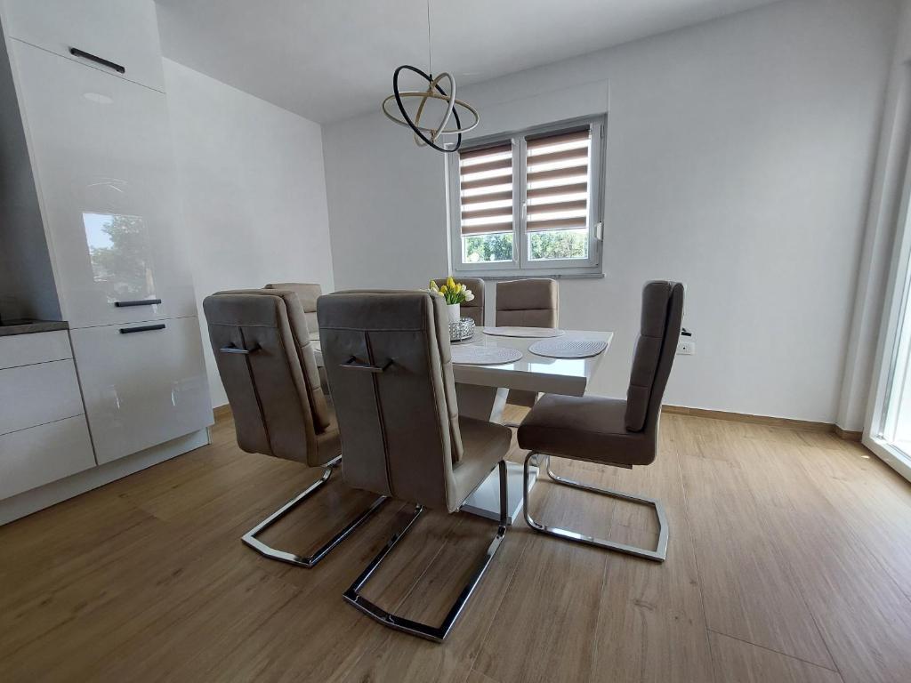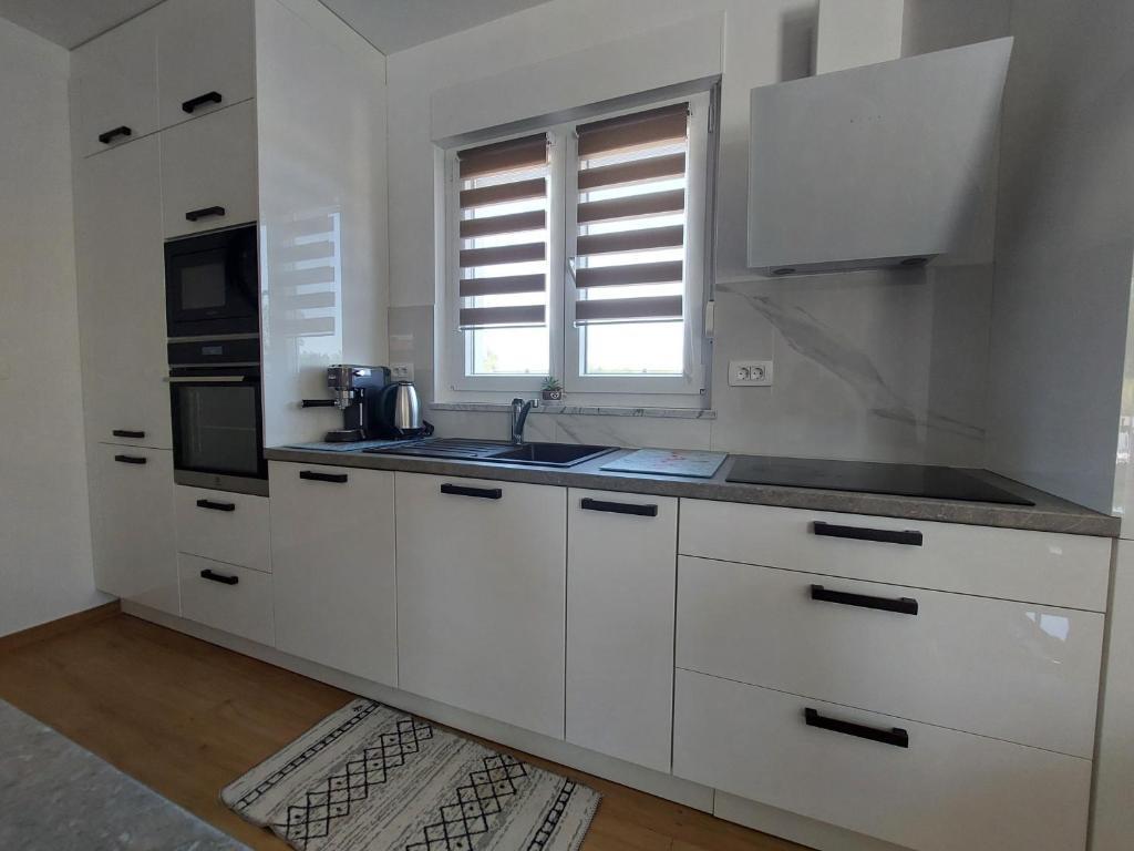 Fully and modernly equipped two-room apartment with swimming pool in a quiet area, located in Sv. Anton not far from Malinska. Size 110m2. Superior accommodation for family or guests who want a pleasant and peaceful vacation. Two bedrooms with private bathroom. Possible accommodation for up to 6 people. Closed parking space. Air-conditioned. The pool is used only by guests of the apartment.