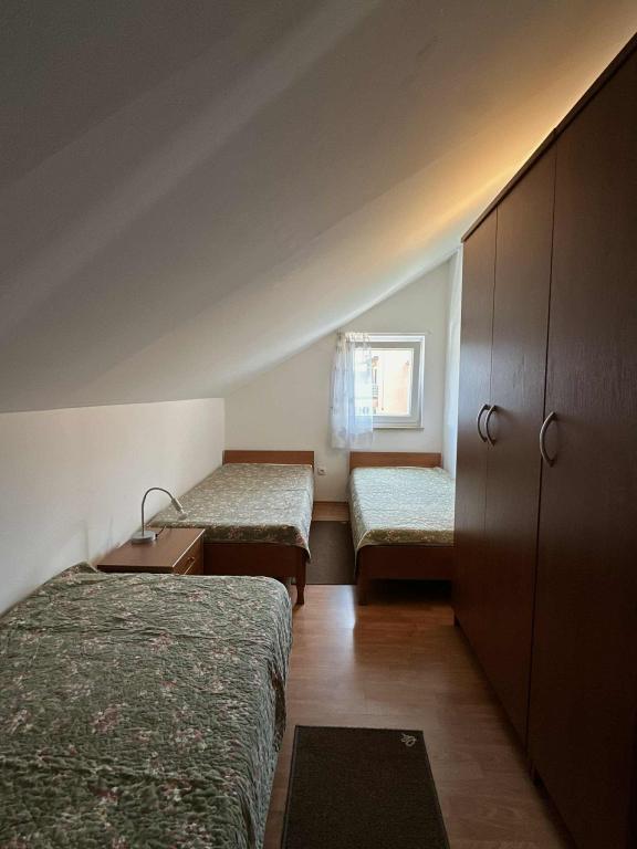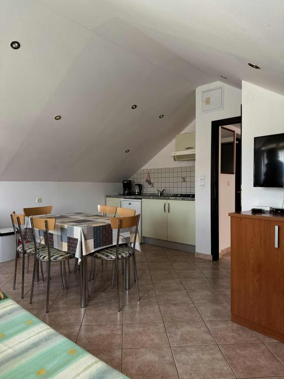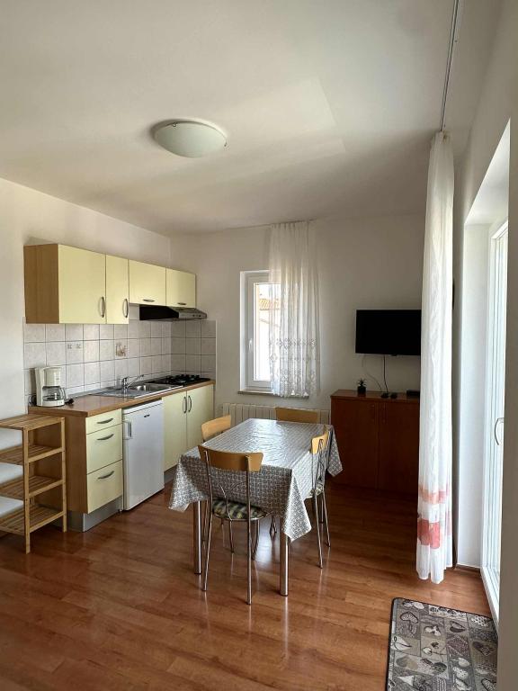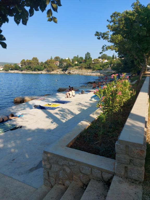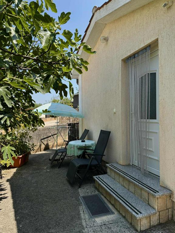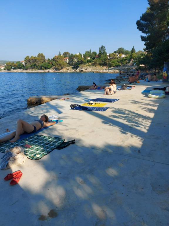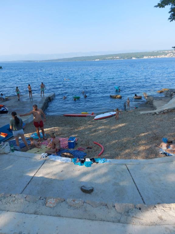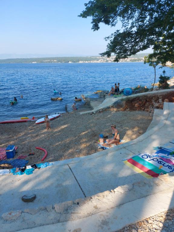 The house is situated in Vantacici, 3 km away from the town. Vantacici is a small tourist resort located on the northwest coast of the island in a large wooded bay. The house is away from the sea and 120m to the beach can be reached in a bathing suit. The beach has very much and may be selected from gravel and concrete beach. Near the house there is a grocery shop (100 m), pizzeria (50m), a café (100m). In the neighboring village Porat (around 500m) is few very good and well known restaurants with rich offer of fish and other specialties. About 3 km from the house there are several large shopping centers with a rich offer. Vantačić also has a marina (300m), as well as Porat and Malinska. All other offer interesting for the visitors is situated in Malinska: banks, exchange offices, post offices, market, many shops and restaurants, entertainment for children (amusement park and trampoline).