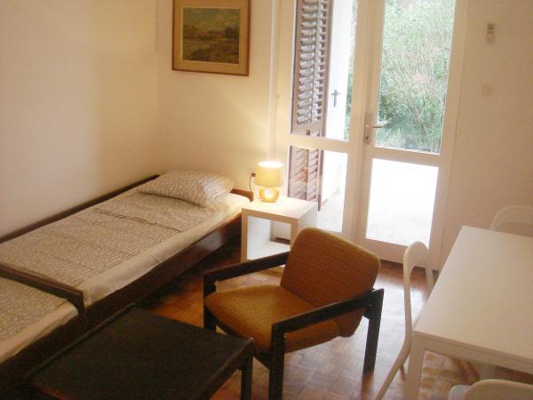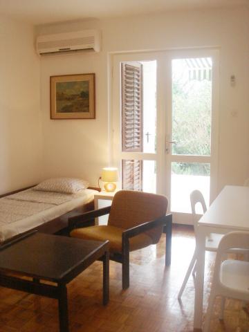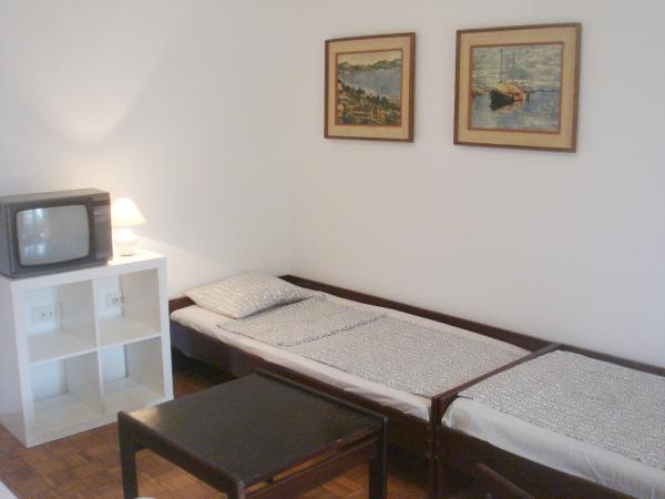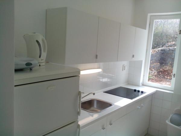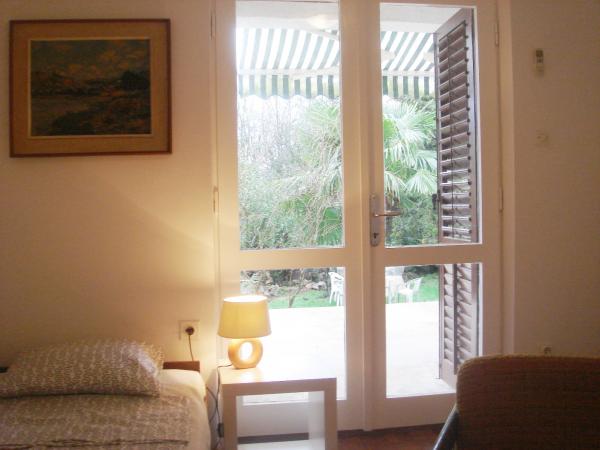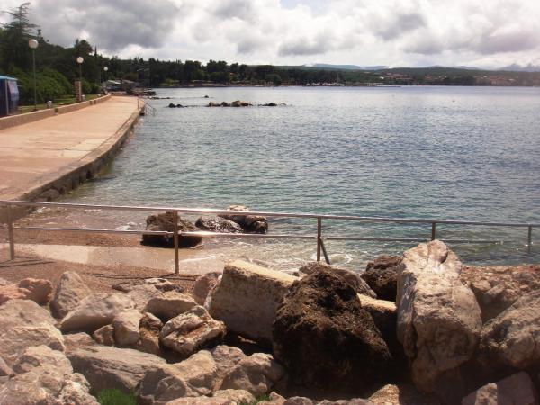 Simple and cheap place with the view on the sea on the beautiful island KRK in northern CROATIA seaside. The property is in Malinska, small place with nice and clean sea, warm all the time because it is situated on the north of island , facing mainland and island Cres, so it is not on the open sea and it is always protected of the bad weather. Malinska has good service, lot of groceries, restaurants, konoba s - typical Croatian places for eating local food, pizzerias, bakeries, shops with cakes and ice creams, old church, banks, post office, tourist offices, exchange offices, so you can feel comfortable. There are lot of organized tours by boat for getting around for one day trips. There are different types of beaches: from crowded one with all service and water playing you can imagine to the distant and wild beaches with virgin nature, cleanest sea and bluest sky that you can enjoy to be alone in the piece in the beautiful nature. They are out of the place but still you can reach them by walking or by bike. The apartment is situated very close to the center, 15 min walking. To the nearest public beach it is also only 15 min walking. It is in the small street without traffic. Across the street there is a forest and.you can enjoy silence once you are inside the apartment