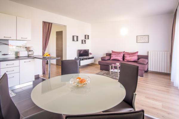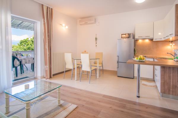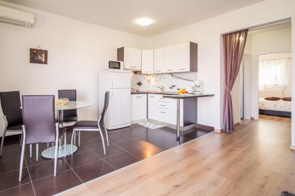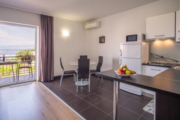 The apartments are situated in a quiet part of town. They are located just a hundred meters from the sea and about 250 meters from the beach. We offer accommodation in apartments for two to five people. All apartments have air conditioning, its own balcony or terrace, TV, satellite receiver and a private parking. If you visit us in the spring, you will be able to feel the freshness of asparagus, fresh mushrooms in the fall and throughout the year we offer our freshly caught fish. If you are arriving by plane to the airport Rijeka we offer free transportation to our home. Welcome!