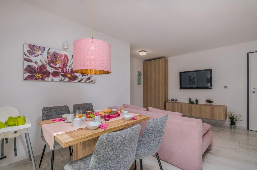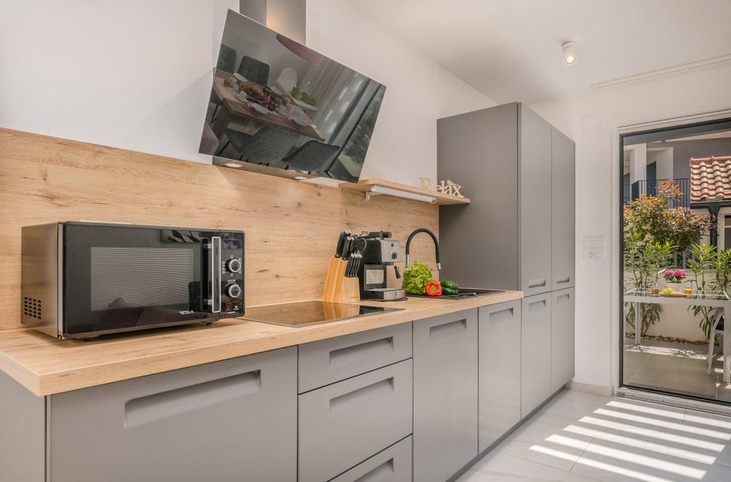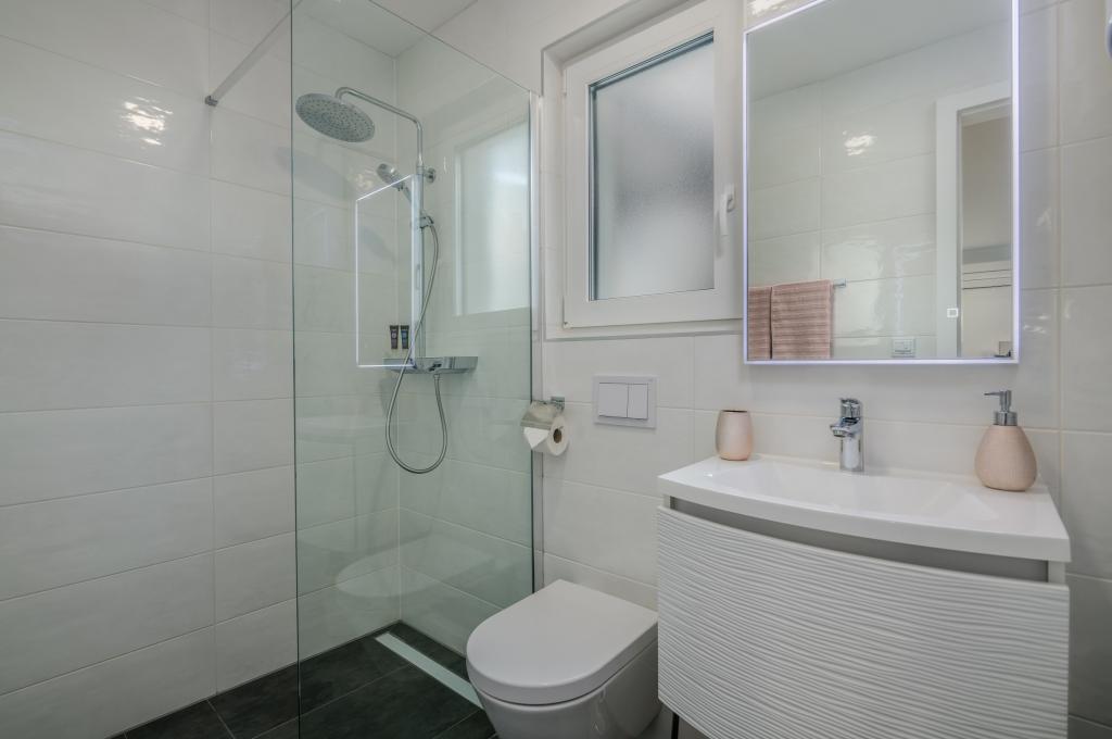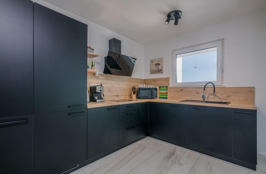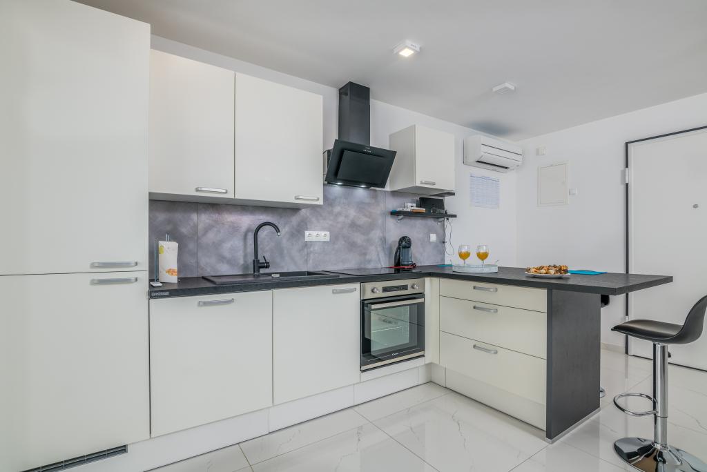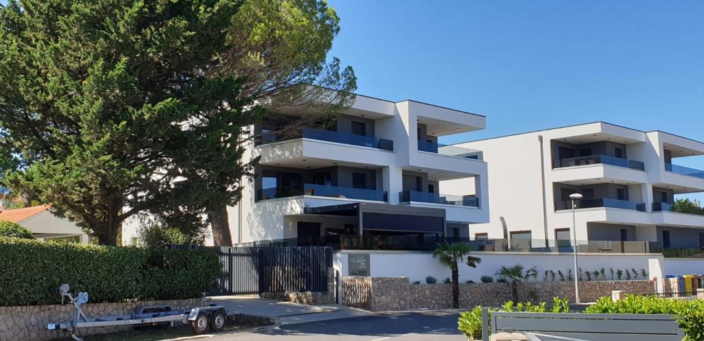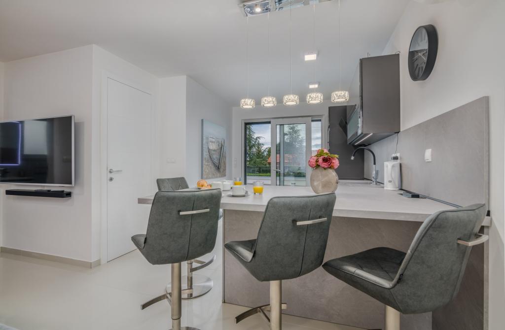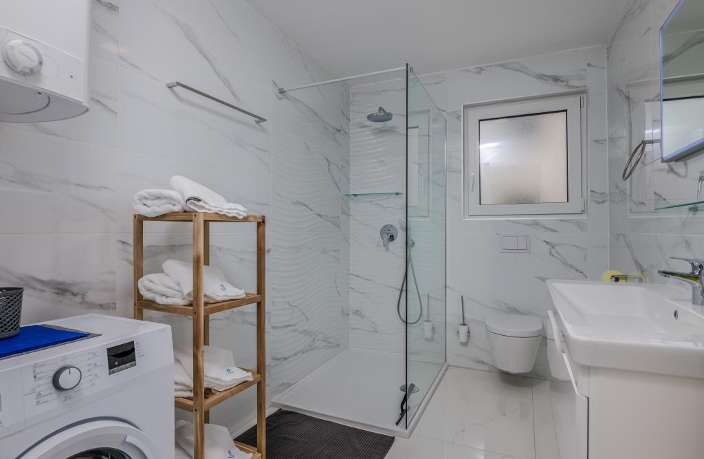 Apartments Elle Luxury are located in Vantačići, 120 meters from the beach with natural shade. They are modernly furnished and fully equipped to make your vacation relaxed and pleasant. Thus, all apartments have washing machines and dishwashers, air conditioners, underfloor heating, wireless Internet, and satellite TVs. The apartments on the upper floors have covered balconies with a view of the sea, and those on the ground floor have their own terrace. Each apartment has one parking space in the fenced yard.