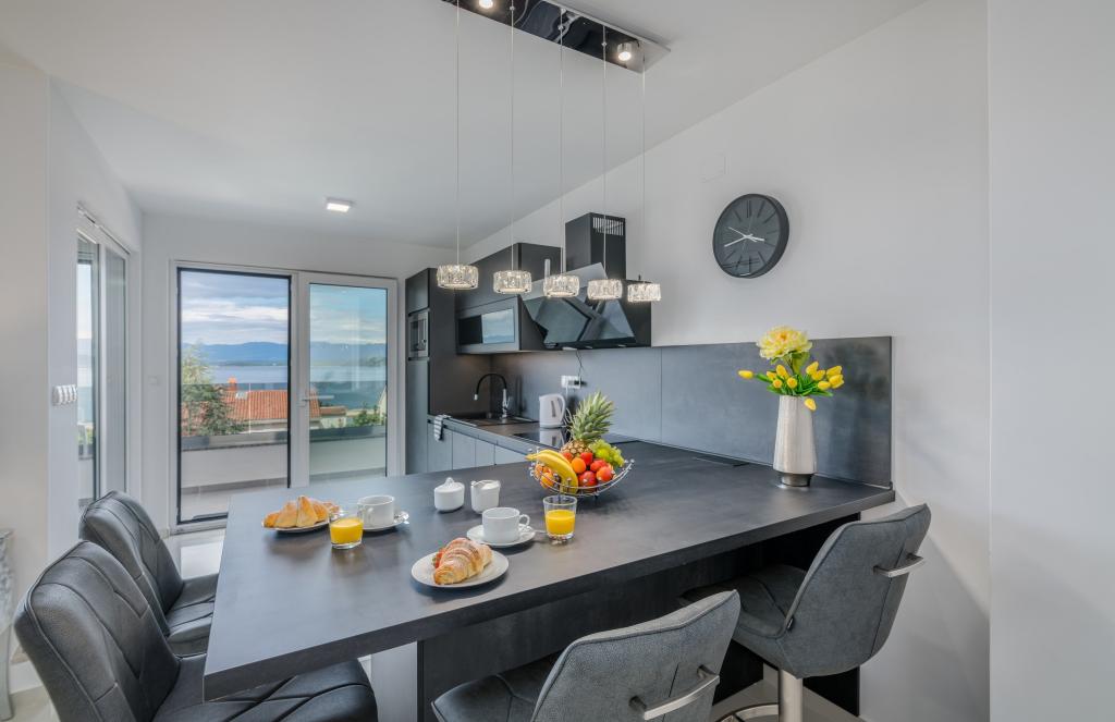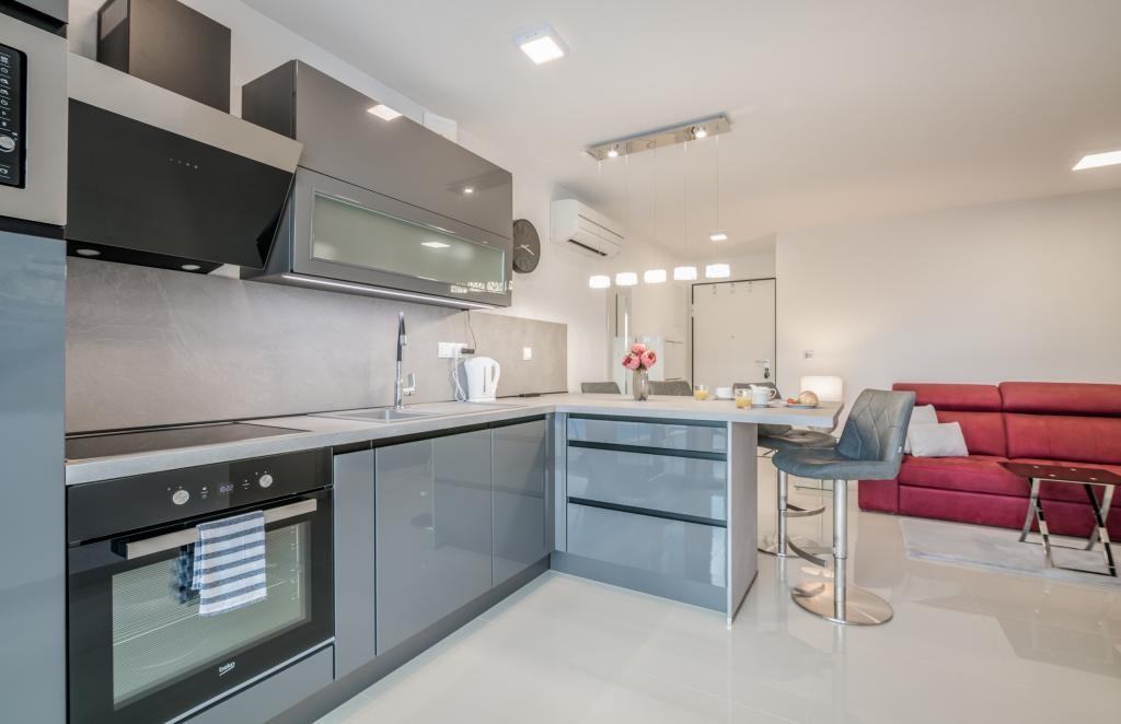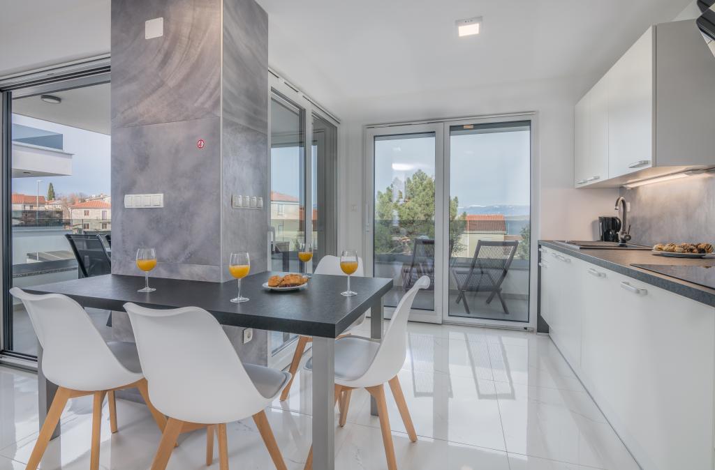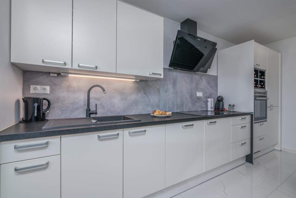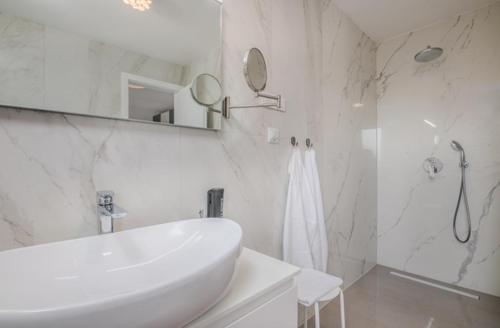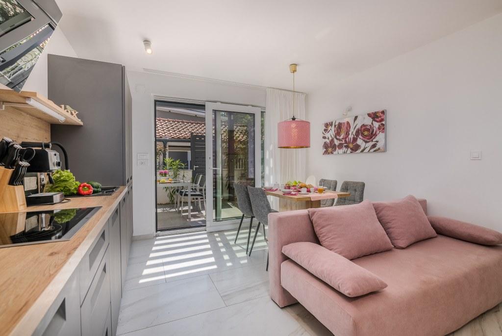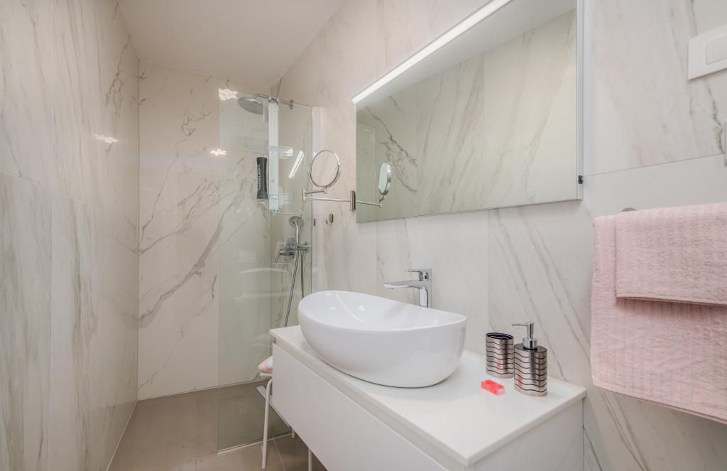 Apartments Elle Luxury are located in Vantačići, 120 meters from the beach with natural shade. They are modernly furnished and fully equipped to make your vacation relaxed and pleasant. Thus, all apartments have washing machines and dishwashers, air conditioners, underfloor heating, wireless Internet, and satellite TVs. The apartments on the upper floors have covered balconies with a view of the sea, and those on the ground floor have their own terrace. Each apartment has one parking space in the fenced yard.