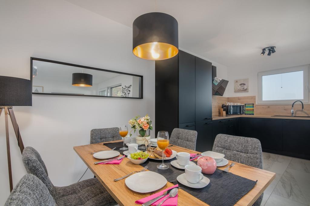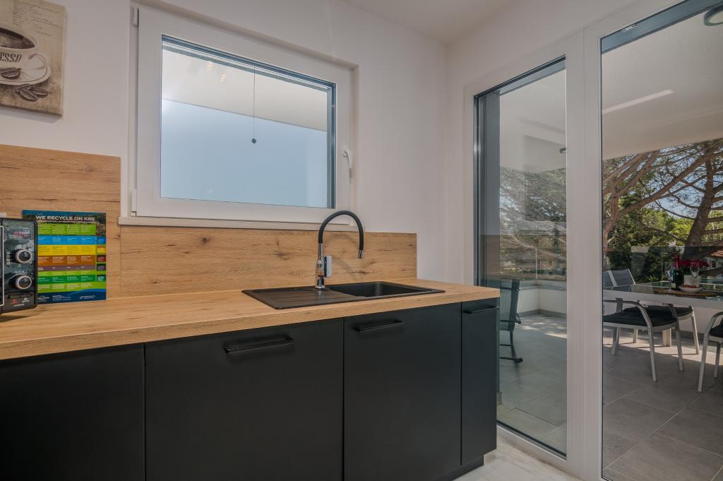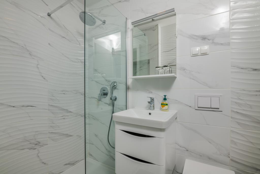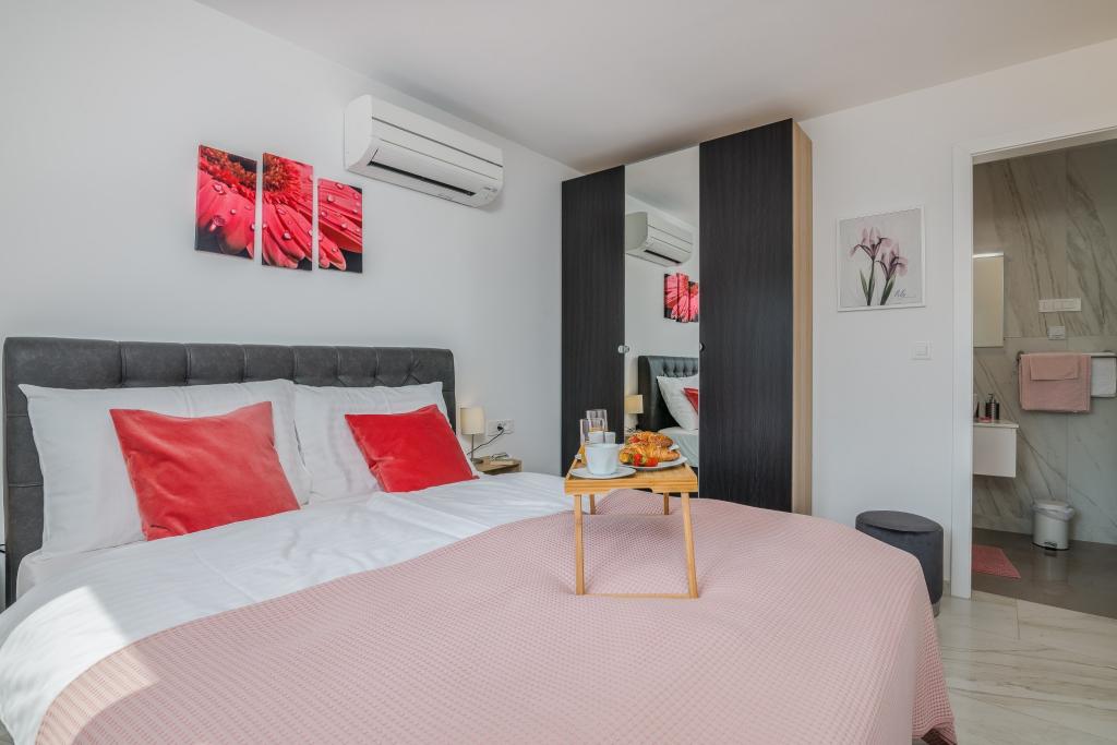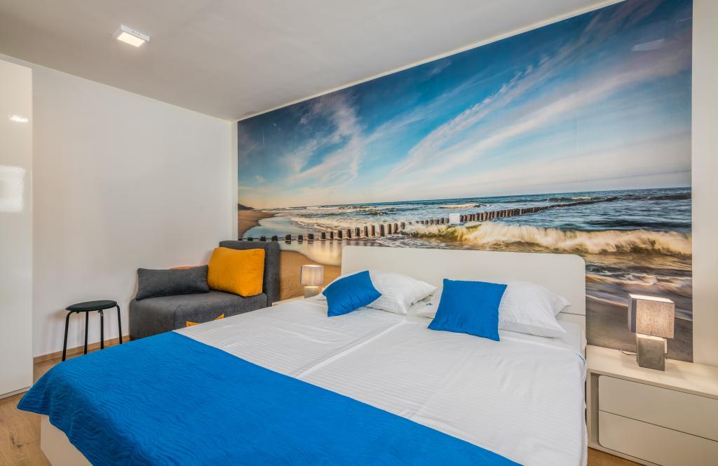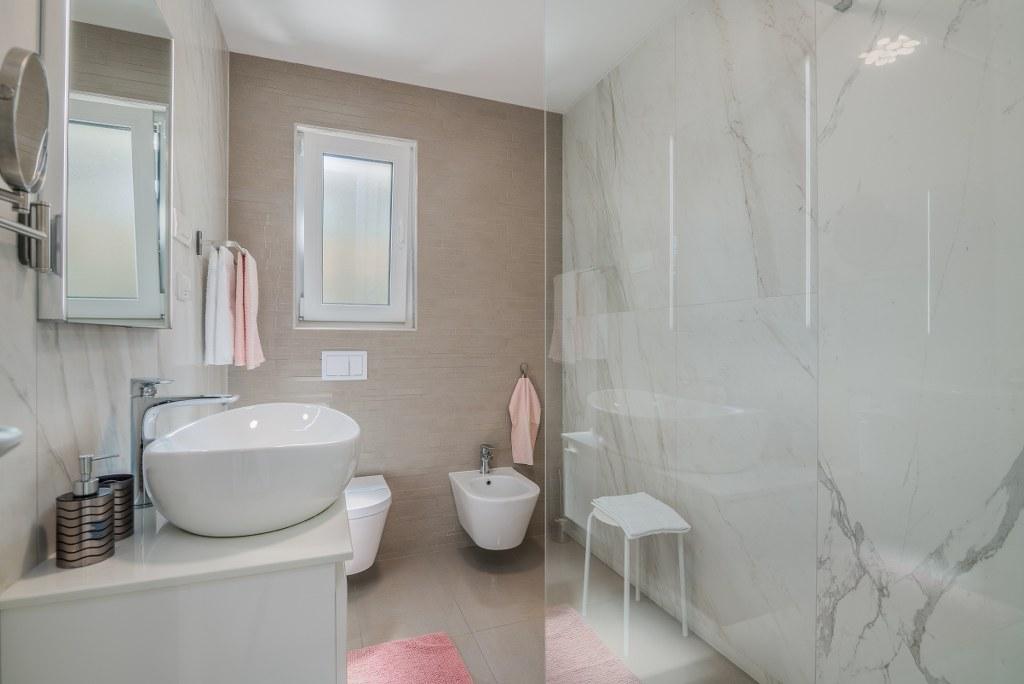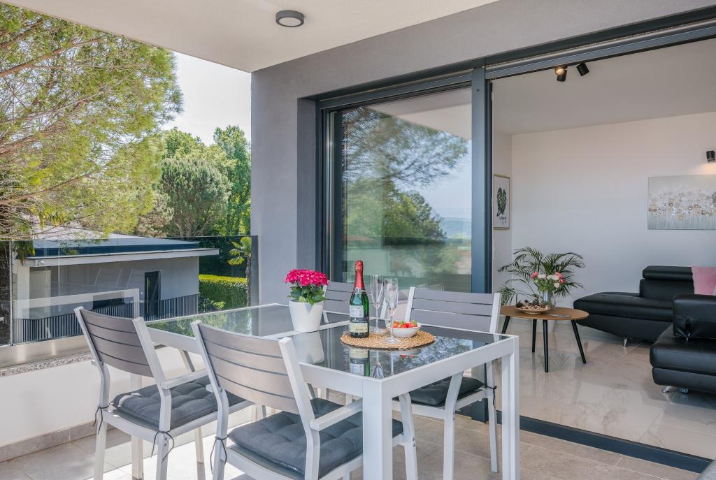 Apartments Elle Luxury are located in Vantačići, 120 meters from the beach with natural shade. They are modernly furnished and fully equipped to make your vacation relaxed and pleasant. Thus, all apartments have washing machines and dishwashers, air conditioners, underfloor heating, wireless Internet, and satellite TVs. The apartments on the upper floors have covered balconies with a view of the sea, and those on the ground floor have their own terrace. Each apartment has one parking space in the fenced yard.