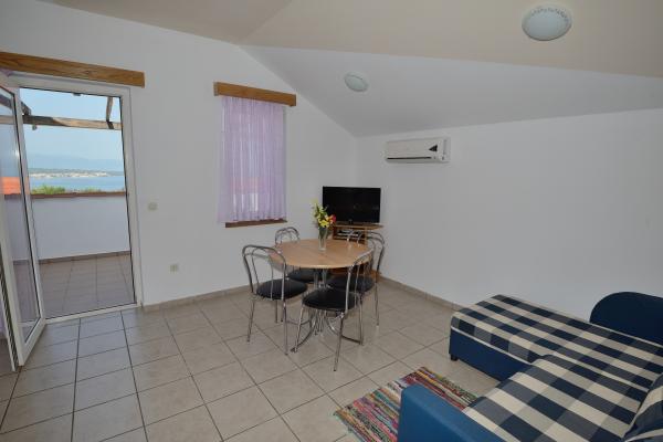 We choose this apartment beacuse of the stunning terrace it was shown in the pictures, but the pictures don\'t show the real apartment. The real apartment is WAY BETTER! We've been strucked by the beauty of our first sunset on the terrace and we felt like we wouldn't want to leave nevermore. The two weeks we spent there we felt at home, thanks to the owners who are the most kind landlords I have ever met! I would totally reccomend this place to literally anyone. The apartment is situated close to the biggest supermarket and biggest gas station of the island, which is pretty convenient, and close to one of the main roads, making it really easy going to all the beautiful beaches around Krk. We will definetely go back there, thanks again Željko and Lidija!