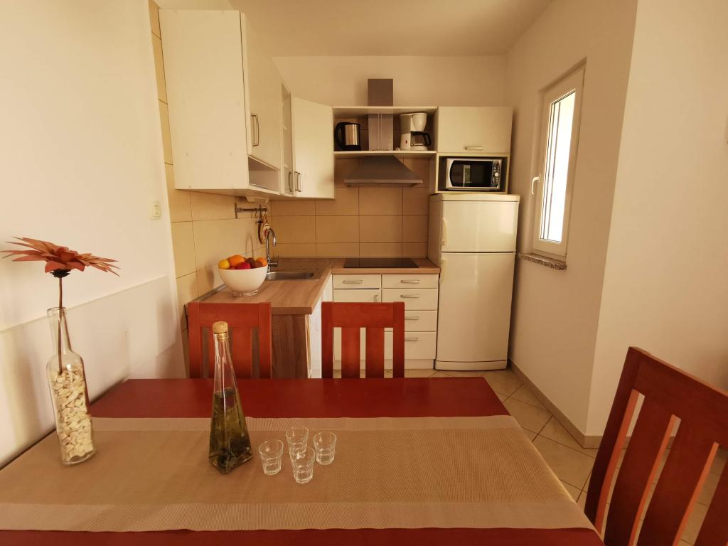 Two fully furnished apartments with separate entrances and secured parking spaces in their own closed yard and natural shade. Each apartment is air-conditioned and has a terrace. Both have WiFi, satellite programs, microwave oven, refrigerator with freezer, toaster, filter coffee machine, water heater, hair dryer, with bed linen and towels. All bedrooms have mosquito screens on the windows. It is a 10-minute walk to the nearest beach and a 40-minute walk to the center of Malinska. The apartments are part of a family house in a quiet part of Malinska and are surrounded by greenery.