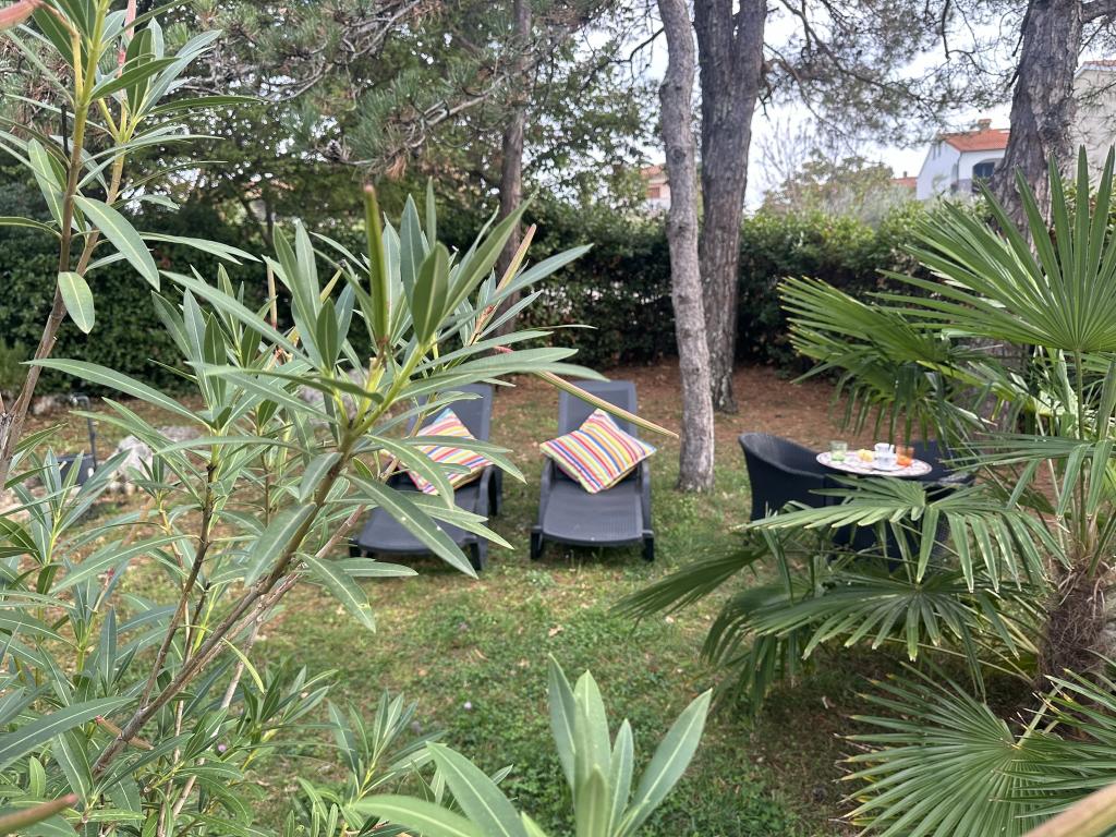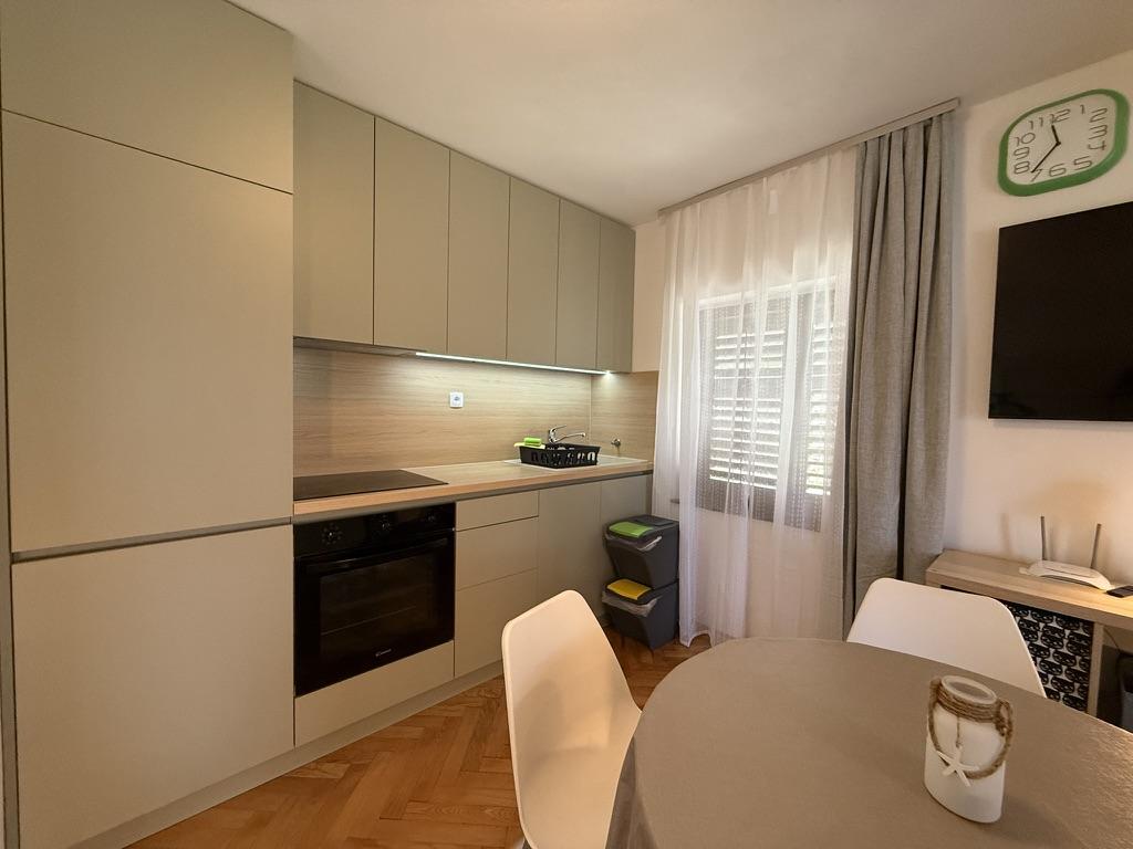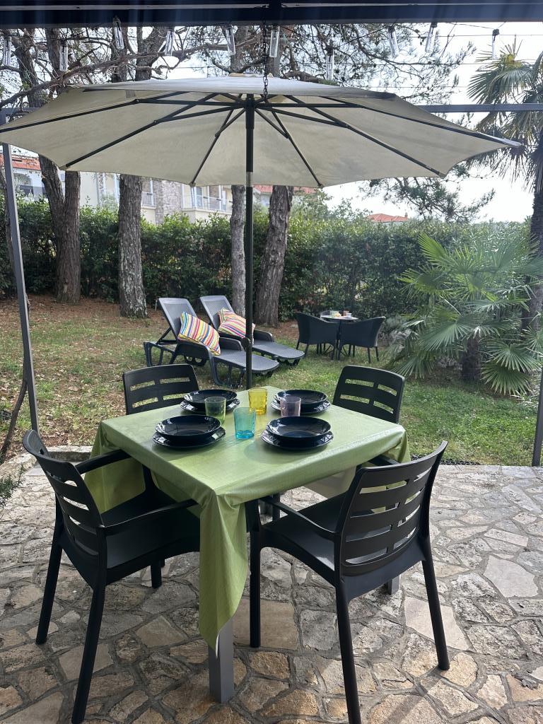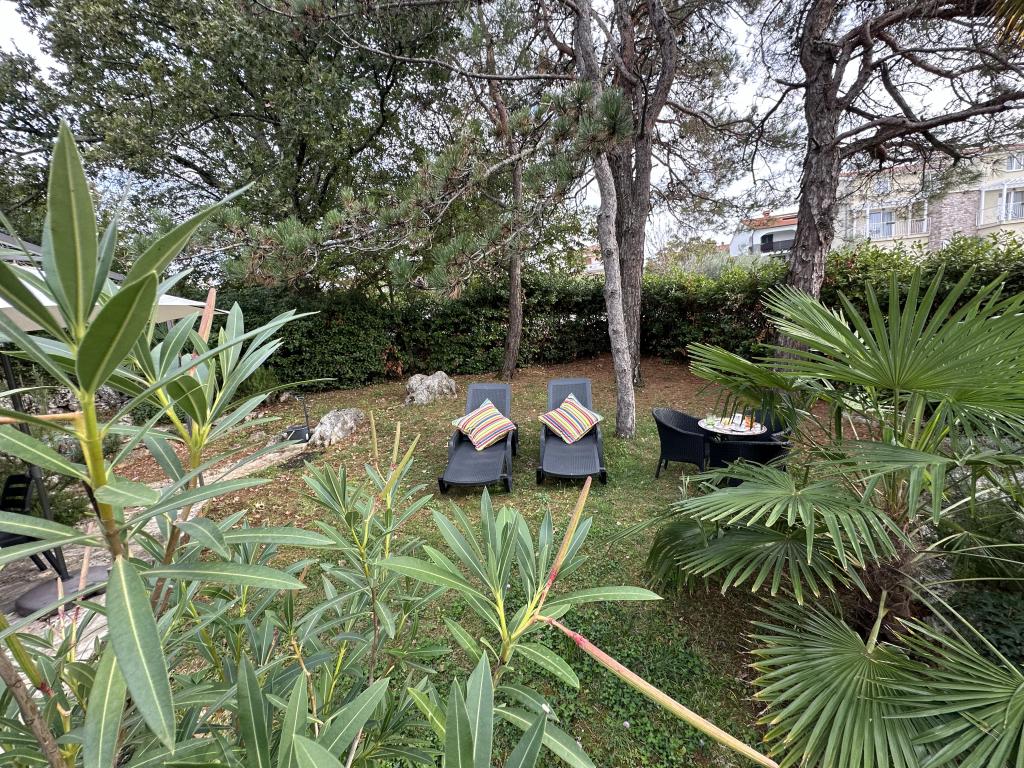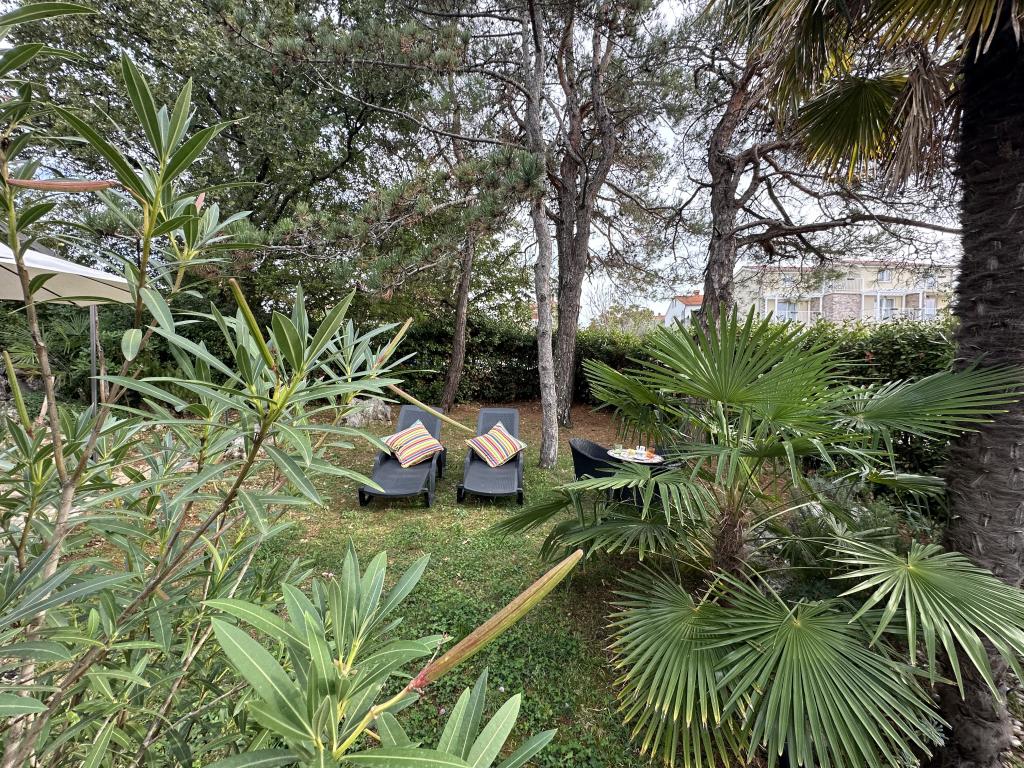Apartments 50m2 with terraces and garden 200m2, are located in a quiet area 100m from the sea and the beach of Rova bay. There is a separate private and safe parking lot in the shade. In the immediate vicinity, there is a children's park, water sports, outdoor gym and many restaurants and beach bars, promenades along the sea and bike paths. In the spacious garden full of Mediterranean greenery, it is pleasant to spend the whole day in the shade.