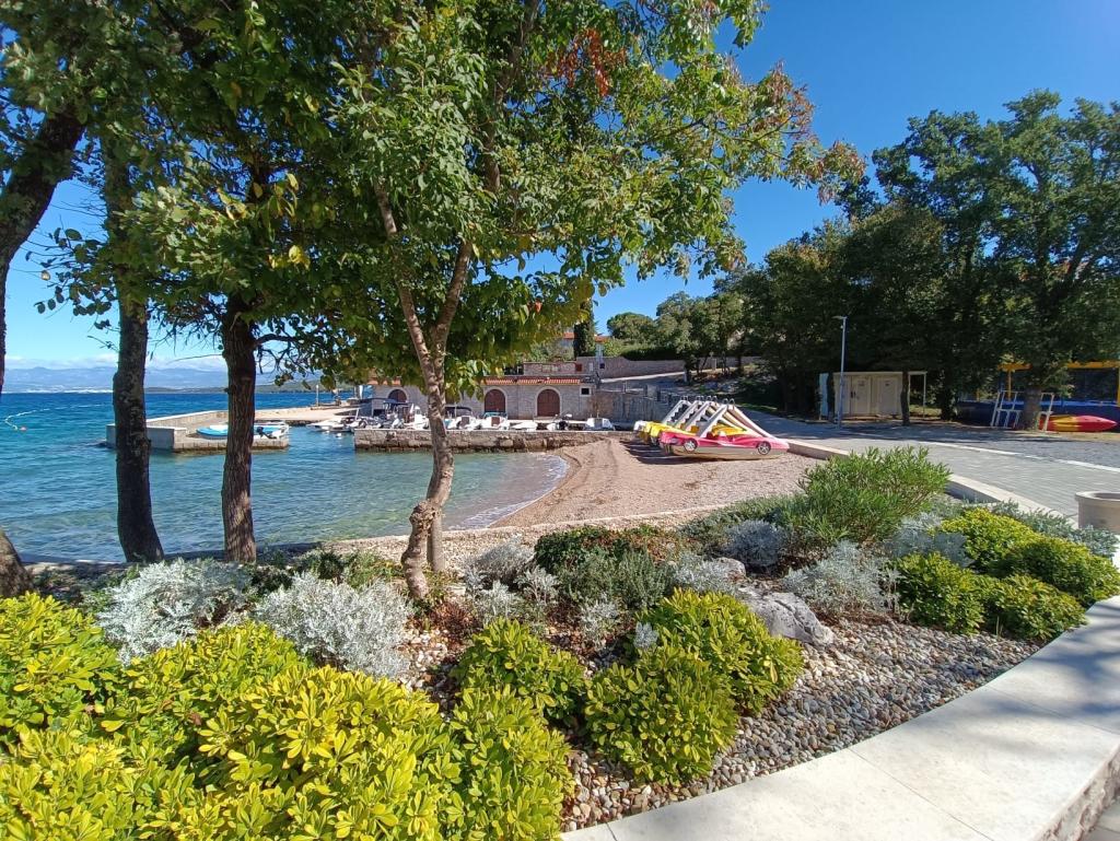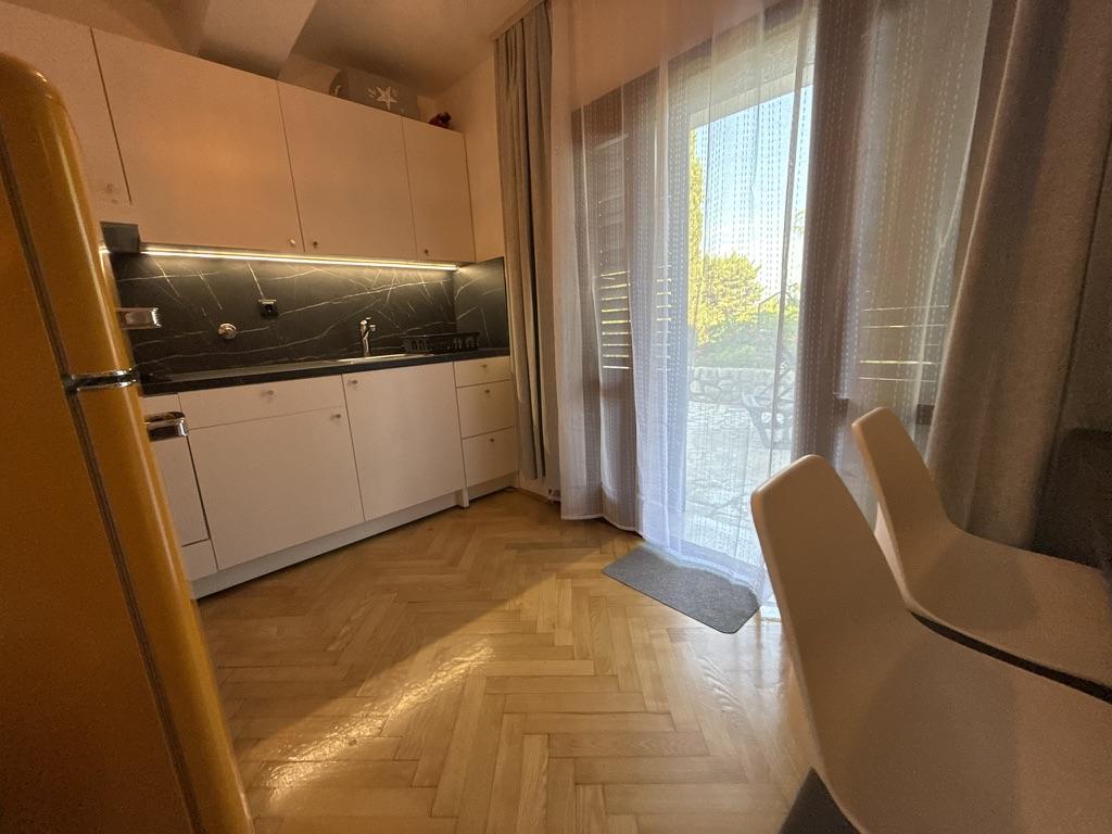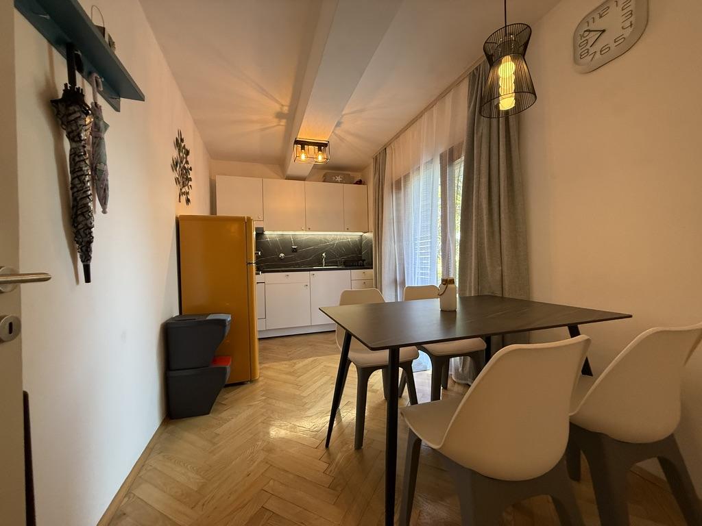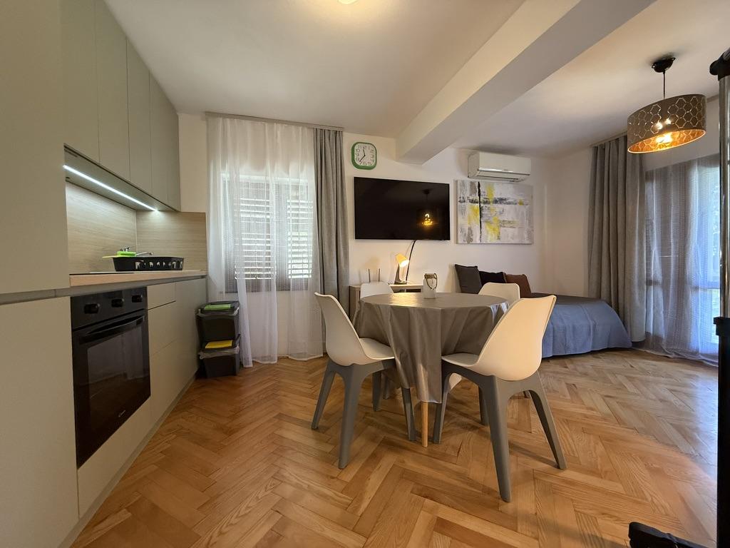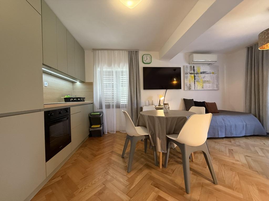 Apartments 50m2 with terraces and garden 200m2, are located in a quiet area 100m from the sea and the beach of Rova bay. There is a separate private and safe parking lot in the shade. In the immediate vicinity, there is a children's park, water sports, outdoor gym and many restaurants and beach bars, promenades along the sea and bike paths. In the spacious garden full of Mediterranean greenery, it is pleasant to spend the whole day in the shade.