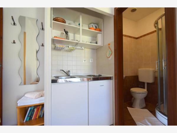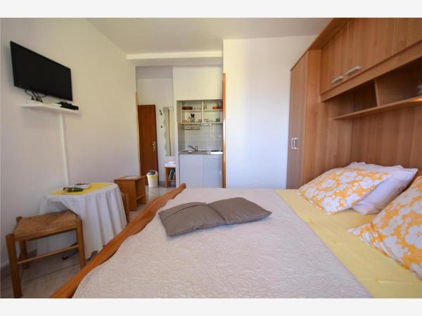 Completely furnished apartments Josipa are located in the famous tourist destination Malinska. The facility is located at Kapela 10. It consists of 2 one-bedroom apartments and 3 studio apartments. It is located at 700m from the first beach, ie 1 300m from the center, which means that you will be spending a really good vacation here as we guarantee to live in a quiet part of Malinska where there is no noise. It takes 10 minutes to get to the first beach and to the center for 20 minutes. Parking is provided in the natural shade. The property has a large back yard with a barbecue and a small children's park. In the front yard there is a garden where you can pick fresh fruits and vegetables depending on the season (cucumbers, pomellos, plums, melons, watermelons, grapes, kiwi, etc.). We also offer homemade goat's products, honey, olive oil and brandy.