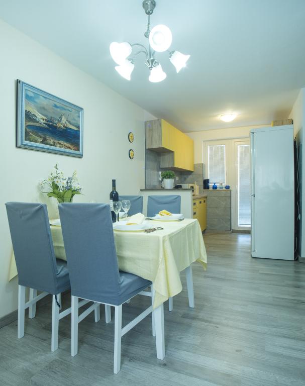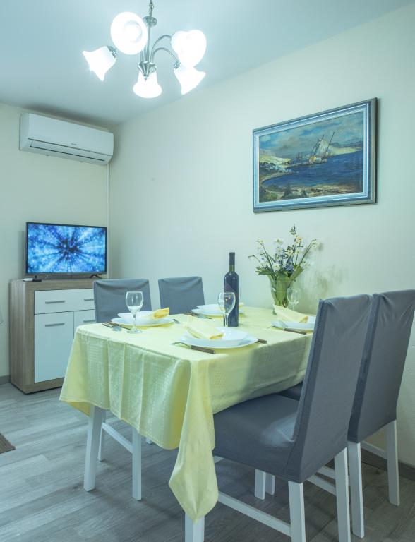 Apartments Karmelić are located in a quiet part of Malinska, close to the sea and a beautifully landscaped beach, and only a 10-minute pleasant walk to the center. The facility has one studio apartment for 2 people and one apartment for 4-6 people, categorized as 4 *, fully equipped apartments with everything you need for rest and enjoyment. The hosts live in the neighboring facility and are at your service with their kindness and hospitality whenever you wish. All guests of the apartment have parking within the facility, free WI-FI, use of the shared laundry room free of charge, and unlimited use of the shared grill in the garden. The beach of the Malin hotel is only a 3-minute walk from the apartment, and offers countless facilities for relaxation and enjoyment - from umbrellas and deck chairs, bars, restaurants to water sports, and children especially enjoy it, for which there are designated places for playing and carefree swimming. A multitude of organized excursions to places on Krk and the surrounding islands, a wealth of cultural and entertainment events will make your vacation unforgettable