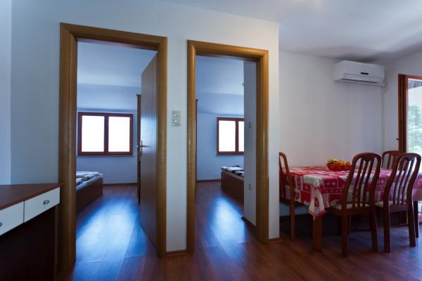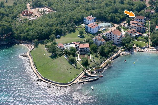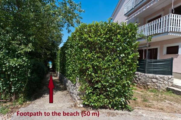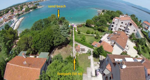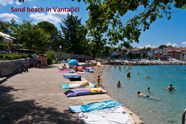 Fully equipped and modern apartments in a quiet place (the impasse) in a small town Vantacici (2.5 km from Malinska) on the island. The house is in a prime position for holidays because of the beach is only 50 m and is surrounded by greenery, so it was a pleasant climate zone. We offer a total of 4 suites, each provided at one parking space in our garden in the shade. Our house is directly linked with the walking path along the beach, so even small children can go to the beach and back without parents. On the coast there are beautiful promenade (sea promenade) connecting Porat, Vantacici and Malinska.