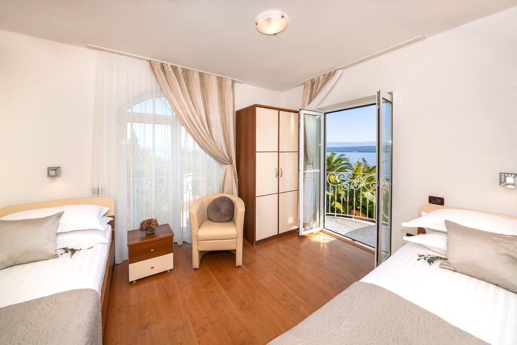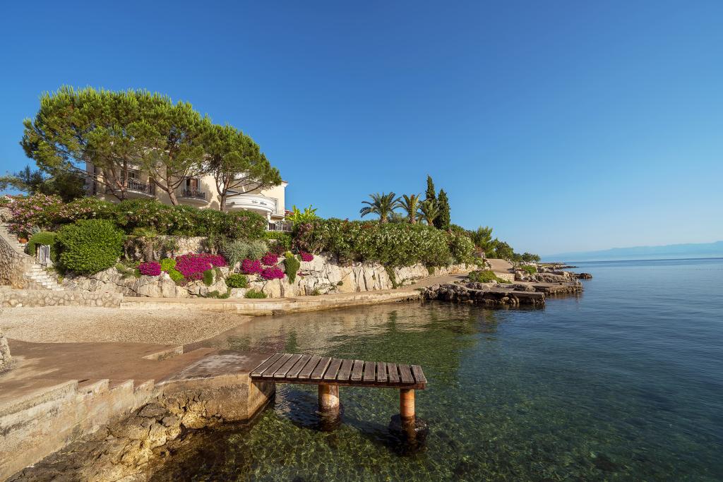 Villa Klara is located in a quiet part of Malinska, first row to the sea, right next to the beach. It has 6 apartments, surrounded by a beautiful Mediterranean garden. The building is located a 5-minute walk from the harbor and restaurants in Porto. Reviews and the return of old guests confirm the quality. Peace, quiet and beauty are the characteristics of Villa Klara