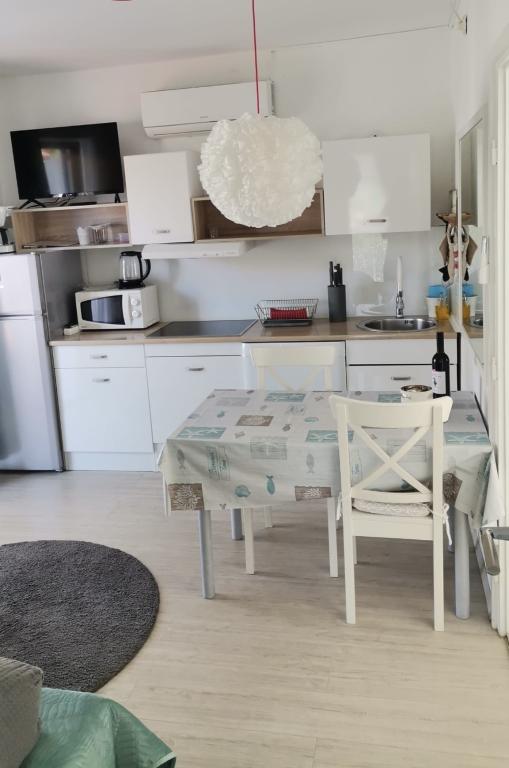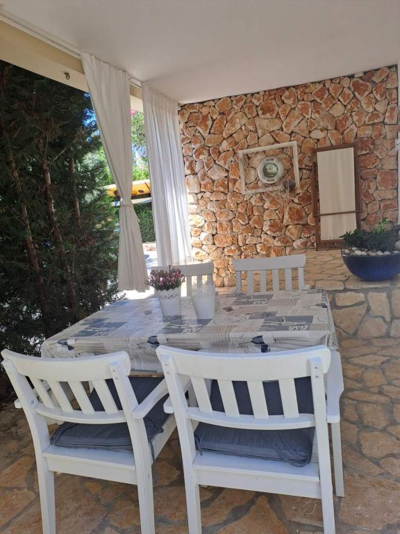 My family and I we were lucky that we chose this apartment in a quiet part of the town. Ideal for stays with children because of the large garden, terrace and proximity to the sea with a sandy beach. The apartment is very neat, clean, functional, and can use the washing machine which is very important to me. Modernly furnished with a lot of style. For the other side there is also a real Mediterranean feel ... stone barbecue on the terrace where the shade doing the old fig tree in the yard the olives and Mediterranean plants ... On the deck chairs under the fig everyone can relax. The hosts were too kind, simple, friendly. Oh, everything is perfect! Certainly we come back next year in this small romantic Mediterranean paradise. We can not wait!