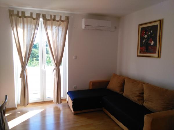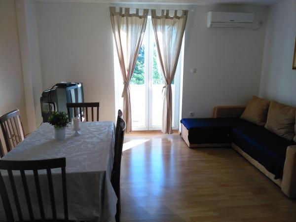 Nikolina apartments are situated in a quiet part of Malinska, in a quiet and dead-end street surrounded by nature. Nearby is a restaurant offering traditional food (350m); store is 400 m, beach 850 m. All apartments include a kitchen equipped with dishes and utensils for cooking and refrigerator, living room with satellite TV, air conditioning and a free wifi network. Nearby are the old traditional villages, walkways, bike paths, museums and many other natural and cultural attractions. Rijeka airport is 15 km (Krk), bus stop 350 m (Bogovići), a railway station 45 km (Rijeka).