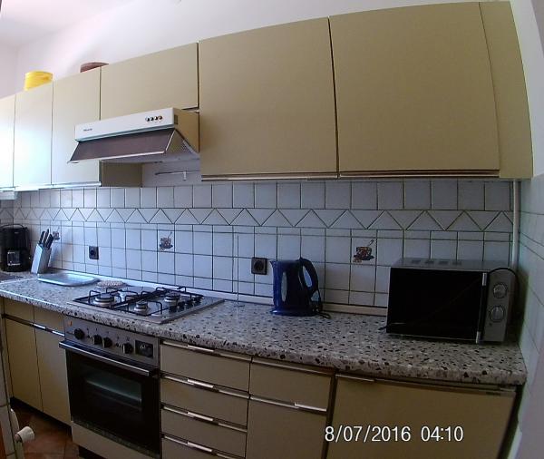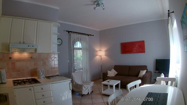 We stayed a week in August at this apartment. House really very nice and quiet. All the amenities available (Veranda, WiFi, satellite TV, parking, etc. ..). Rooms very clean and spacious. There was everything you need for cooking (except for the coffee which fortunately we had brought from home), bed linen and towels for the bathroom. Area convenient to everything if equipped car. Hosts very friendly and helpful, some really lovely people. Value for money definitely recommended.