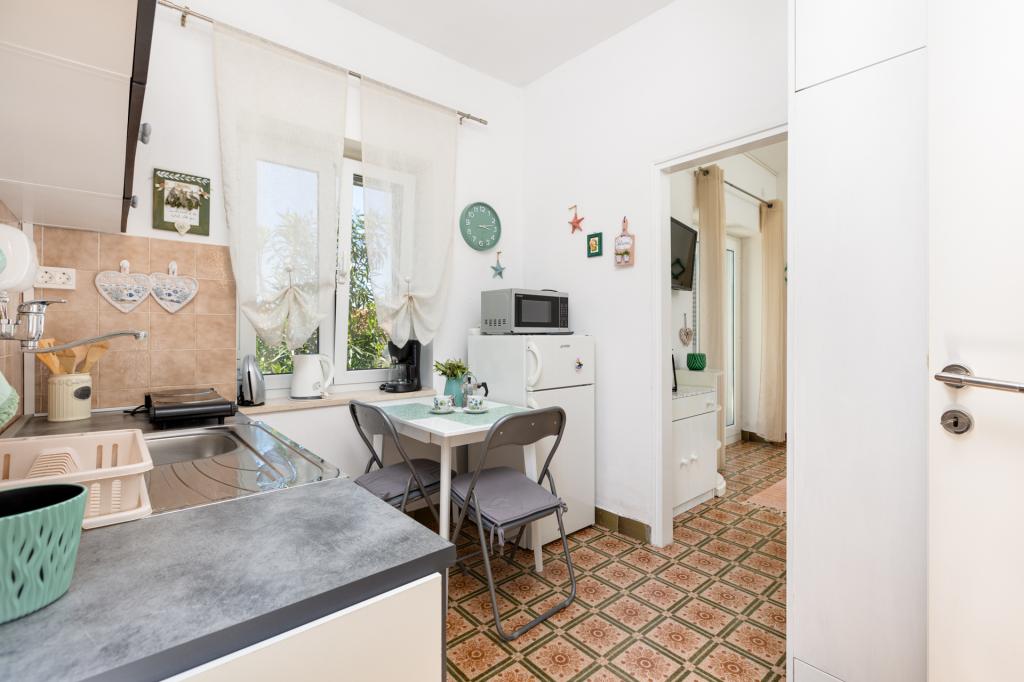 We were there for the second time and we will definitely come again. The accommodation is perfectly clean, very well equipped and decorated, the hosts are amazing. View of the sea from the veranda, ideal for sitting in the evening. Hassle-free parking. Especially recommended if you like animals, dogs and cats It takes a few minutes to get to the water, partly up the stairs and/or up the hill. There is also a bakery, a shop and a bar by the beach not far from the accommodation. Nearest restaurant approx. 10 minutes on foot, to the edge of the town (with an absolutely fantastic restaurant "Primorska koliba") about 15 minutes.