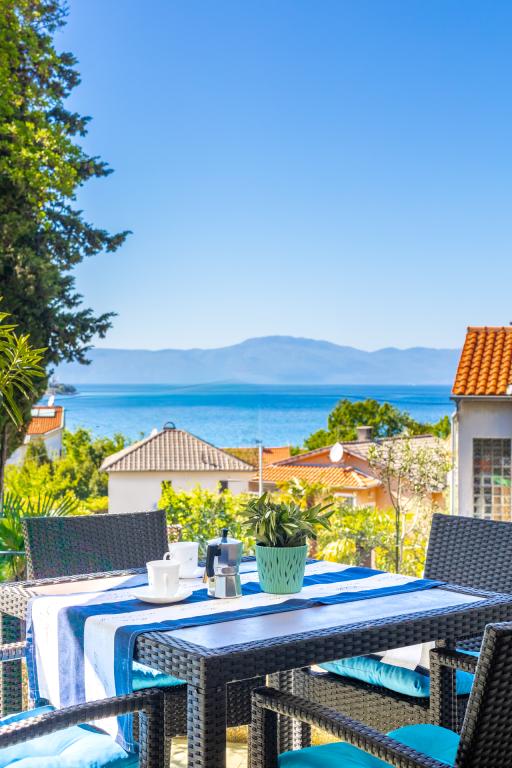 Thank you dear Vlatka and Damir for wonderful hospitality at your lovely place. We enjoyed our stay in the apartment (A2+1) a lot! The apartment is big enough for up to 3 persons. It is fresh renovated and super clean. We liked the room arrangement and the decoration with all the beautiful details. At the terrace we enjoyed our coffee at the mornings with the beautiful see view and stunning sunsets at night. The atmosphere there is absolutely peaceful to calm down from the routine. All the bedding and towels were super clean and fragrant. The kitchen is very well equipped including the big fridge, the oven and dishwasher. The location of the apartment is very convenient: one is in two minutes walking by the sea. You can take a walk to the left to reach Porat and to the right to Malinska along the coast. All in one we had wonderful time!