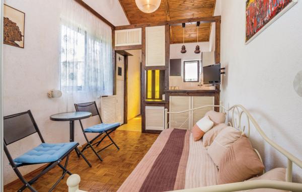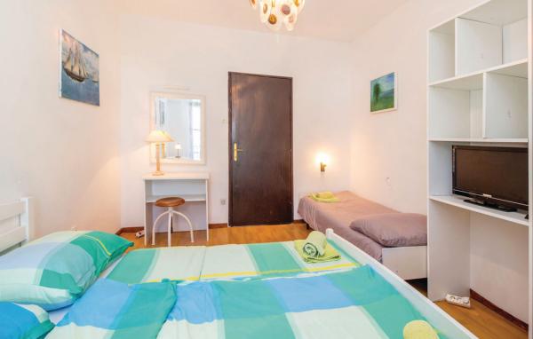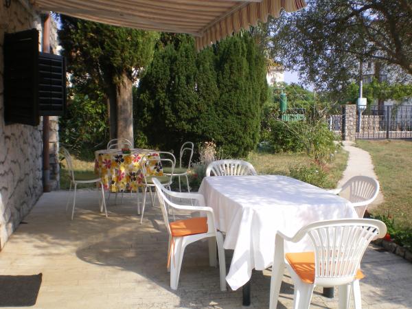 Holiday house in Malinska (island of Krk), built in Mediterranean style, with a large garden, parking, outdoor shower and barbecue. It is located about 5min from the city center. The beach is 250m as the crow flies. Near the restaurant, supermarket, ATM. Capacity of the house is 6-8 persons. The terrain is no ascent, the house is located in a quiet street with only family houses. Ideal for families with children or for elderly people who love peace and zeleniloj. The house has 2 terraces on the ground floor and balcony on the first floor. There are 2 living rooms, 2 bedrooms, 2 kitchens, 2 bathrooms.